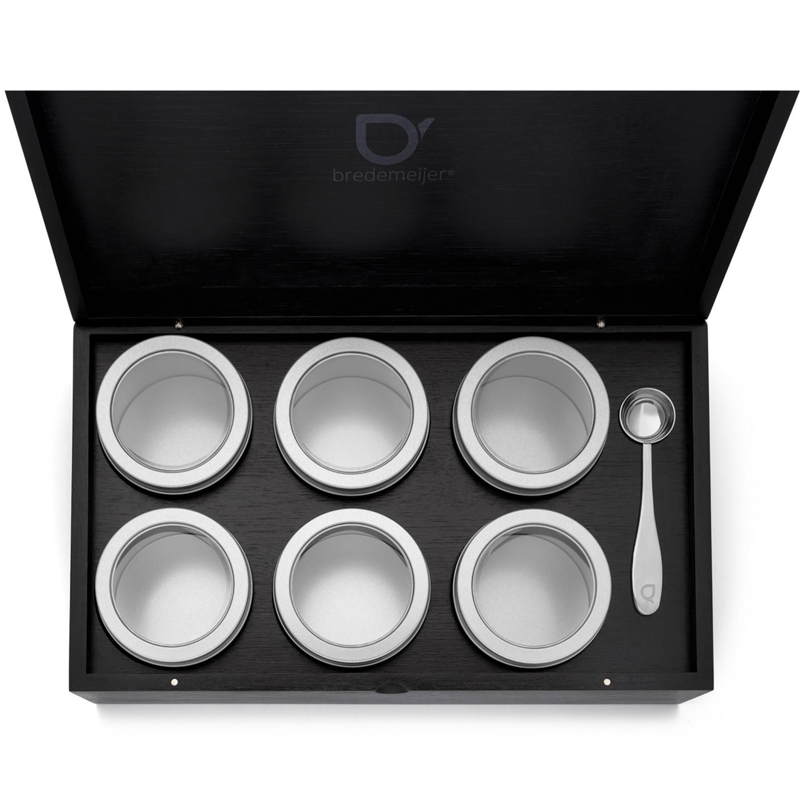 Bredemeijer Bredemeijer schwarze Holz-Teebox 35 x 21 cm & 6 Dosen für losen Tee & Messlöffel