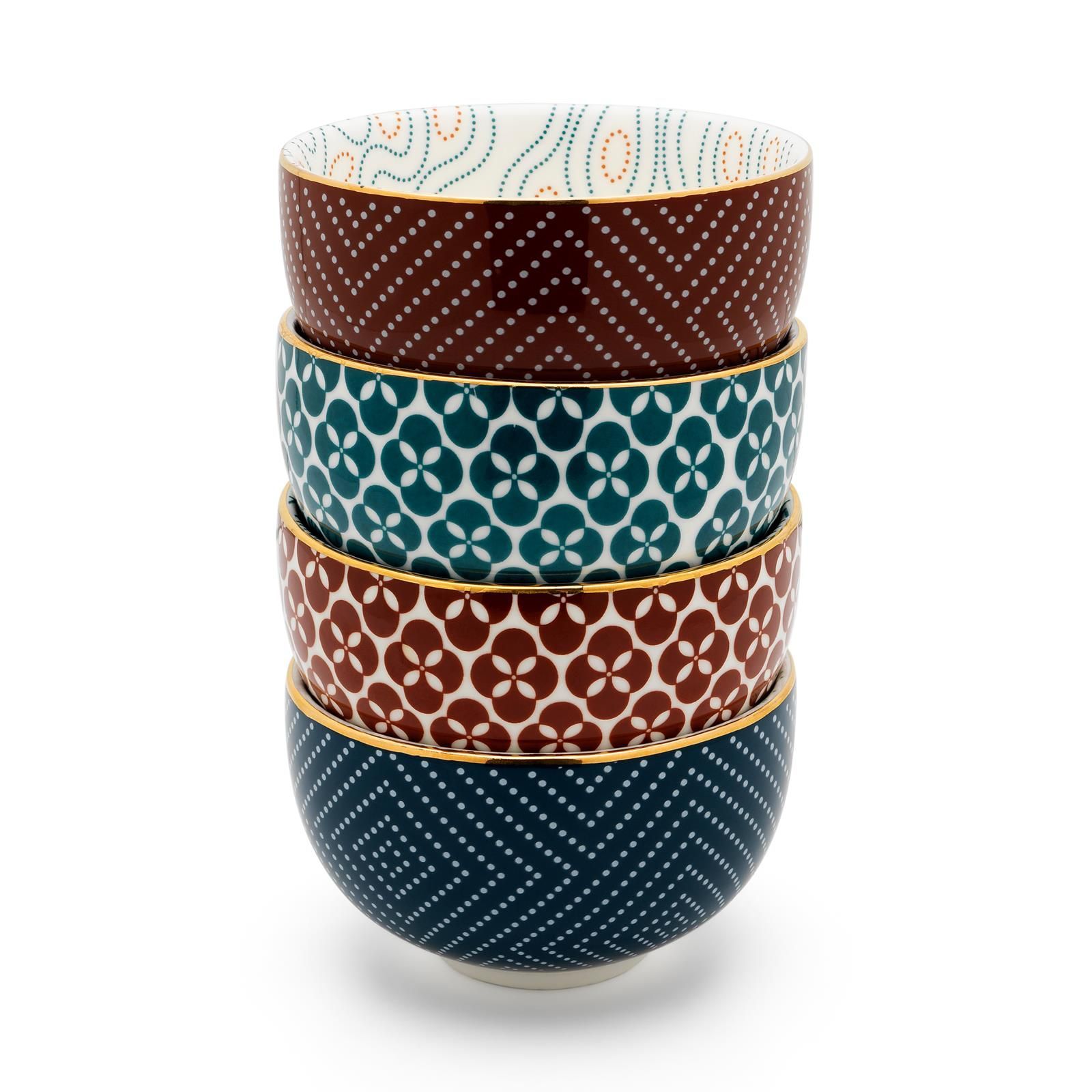 Bredemeijer Bredemeijer Teebecher Set 4 teilig Porzellan Becher petrol-rostrot-weiße Teetassen je
