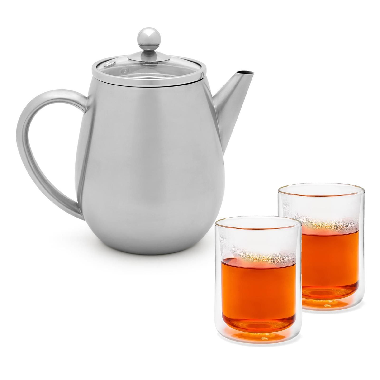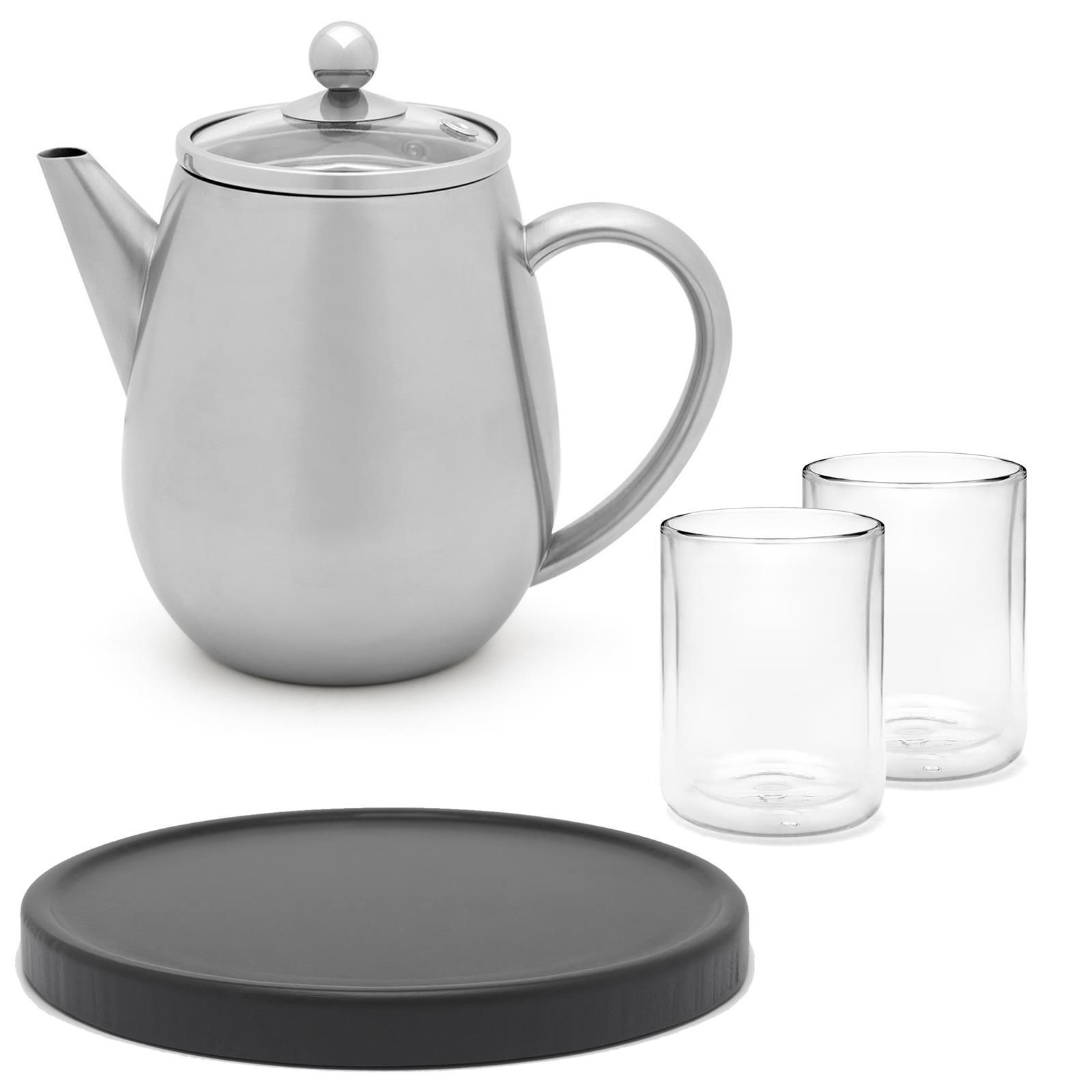 Bredemeijer Bredemeijer Teekanne 0,5 L silber doppelwandig Edelstahl 2 Teebecher Untersetzer schw