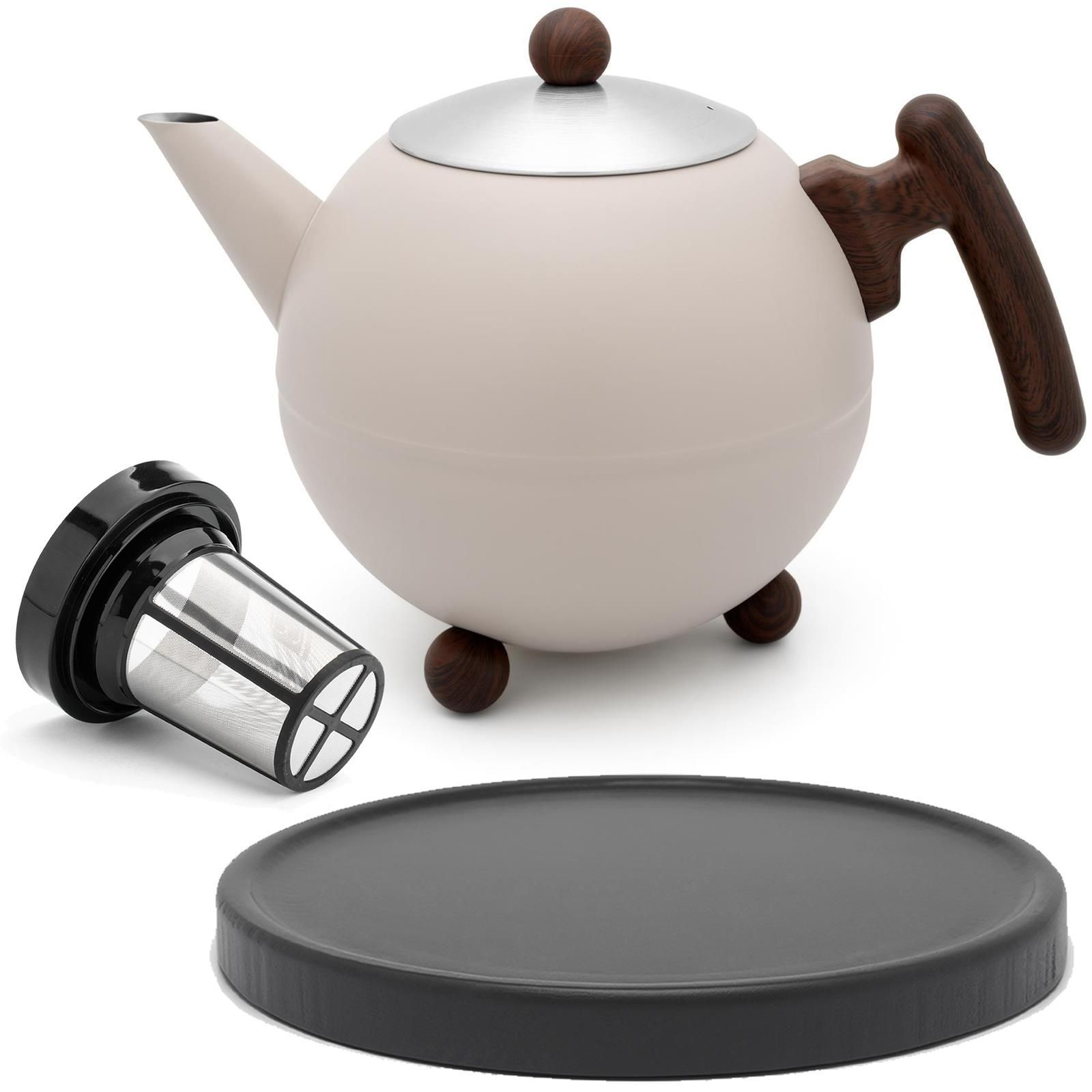 Bredemeijer Bredemeijer Teekanne 1,2 L doppelwandig Edelstahl beige Teesieb Untersetzer Teebereit