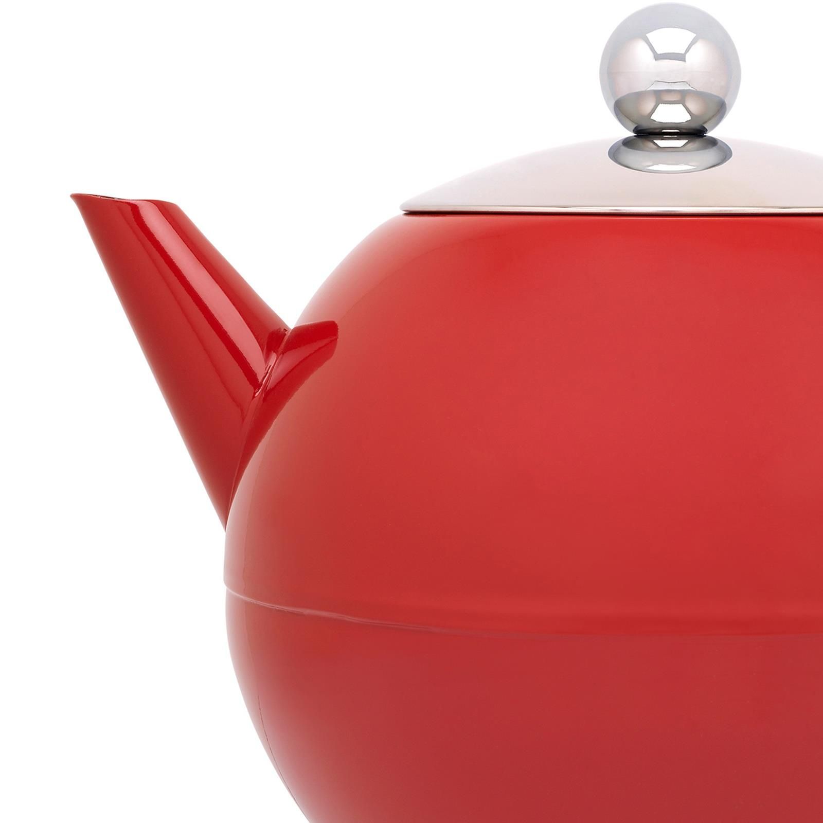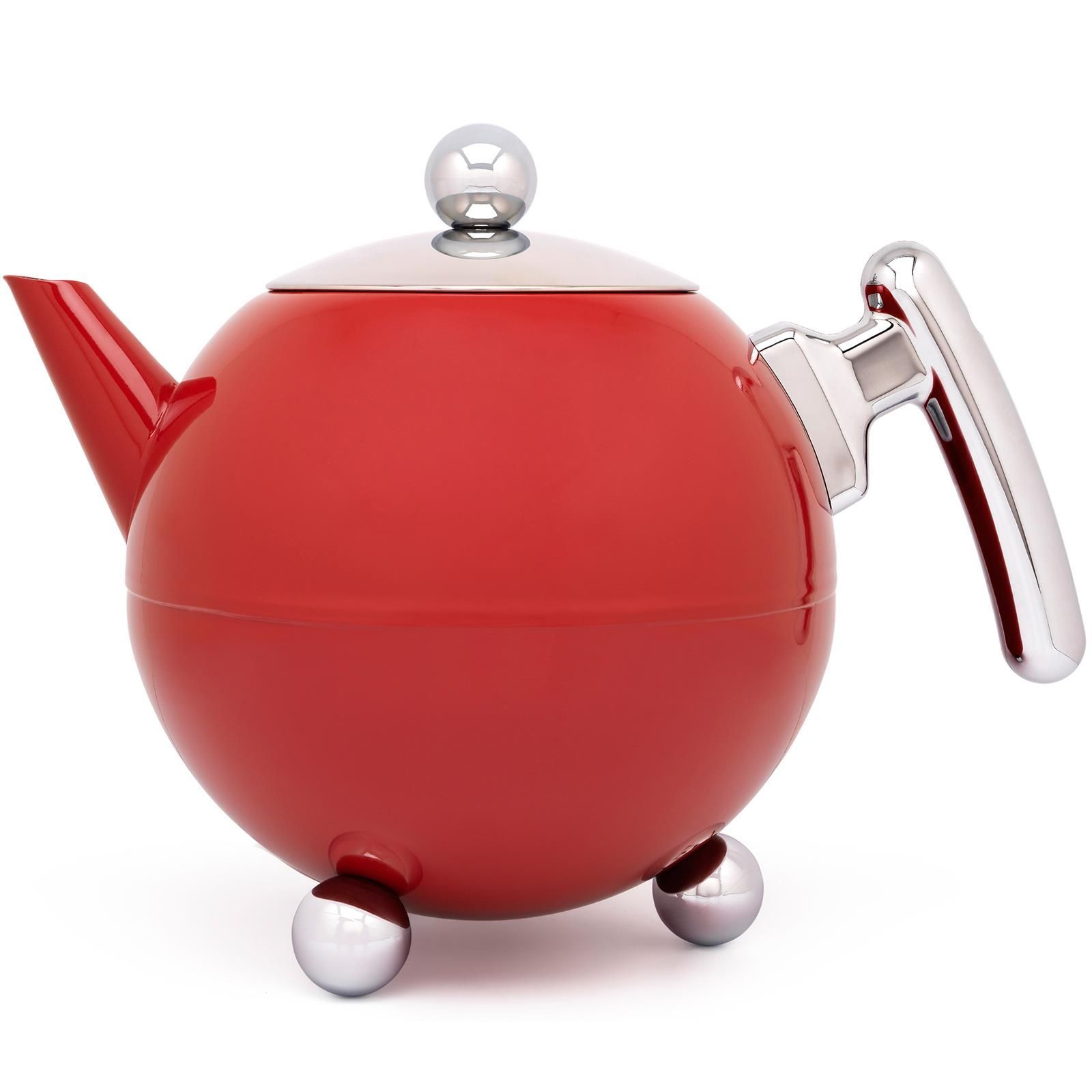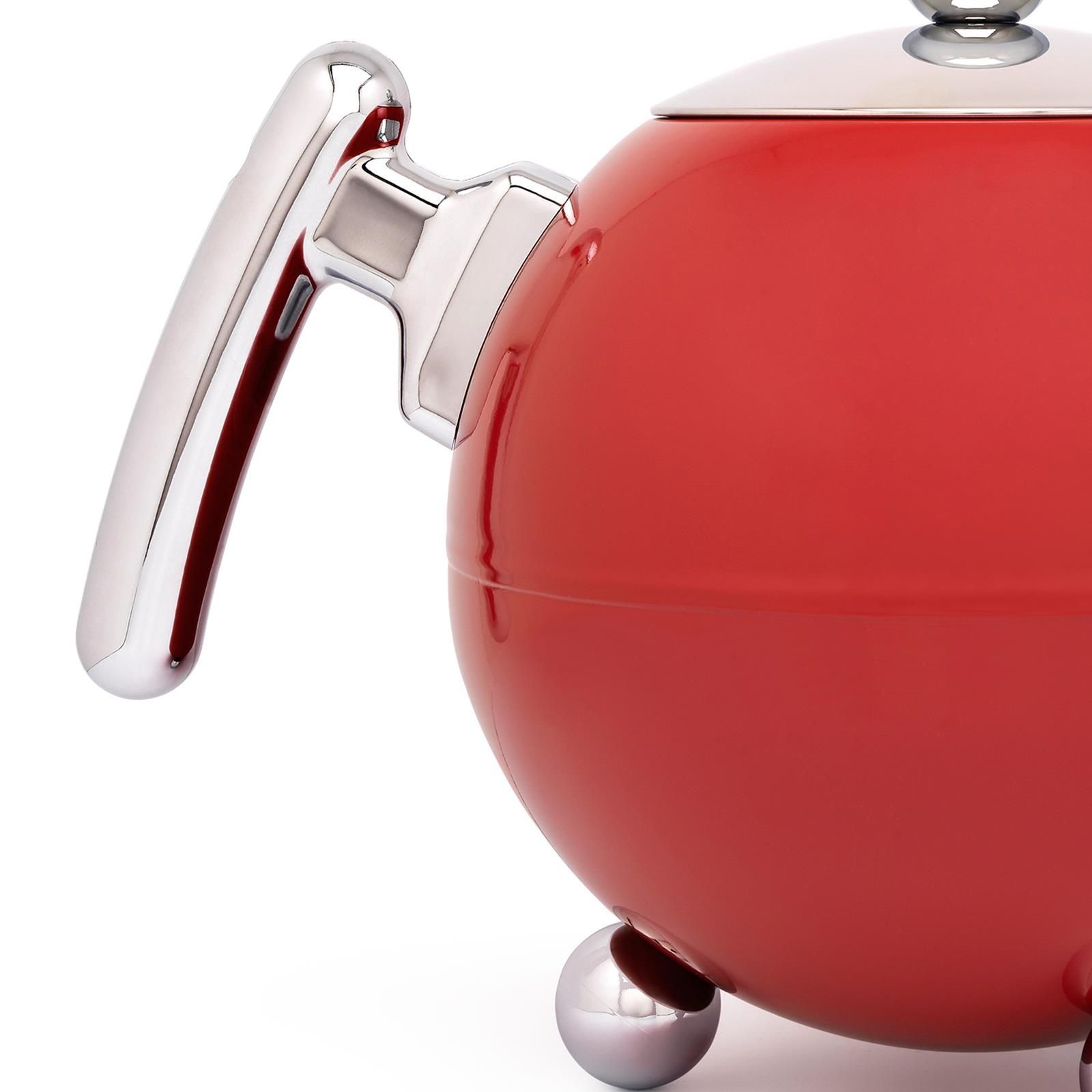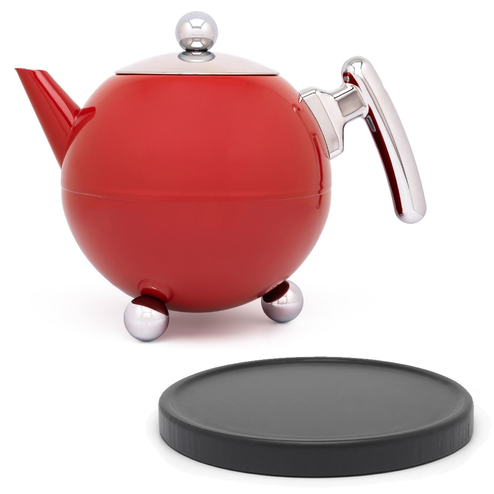Bredemeijer Bredemeijer Teekanne 1,2 L Edelstahl doppelwandig rote Kanne & Holz-Untersetzer schwa