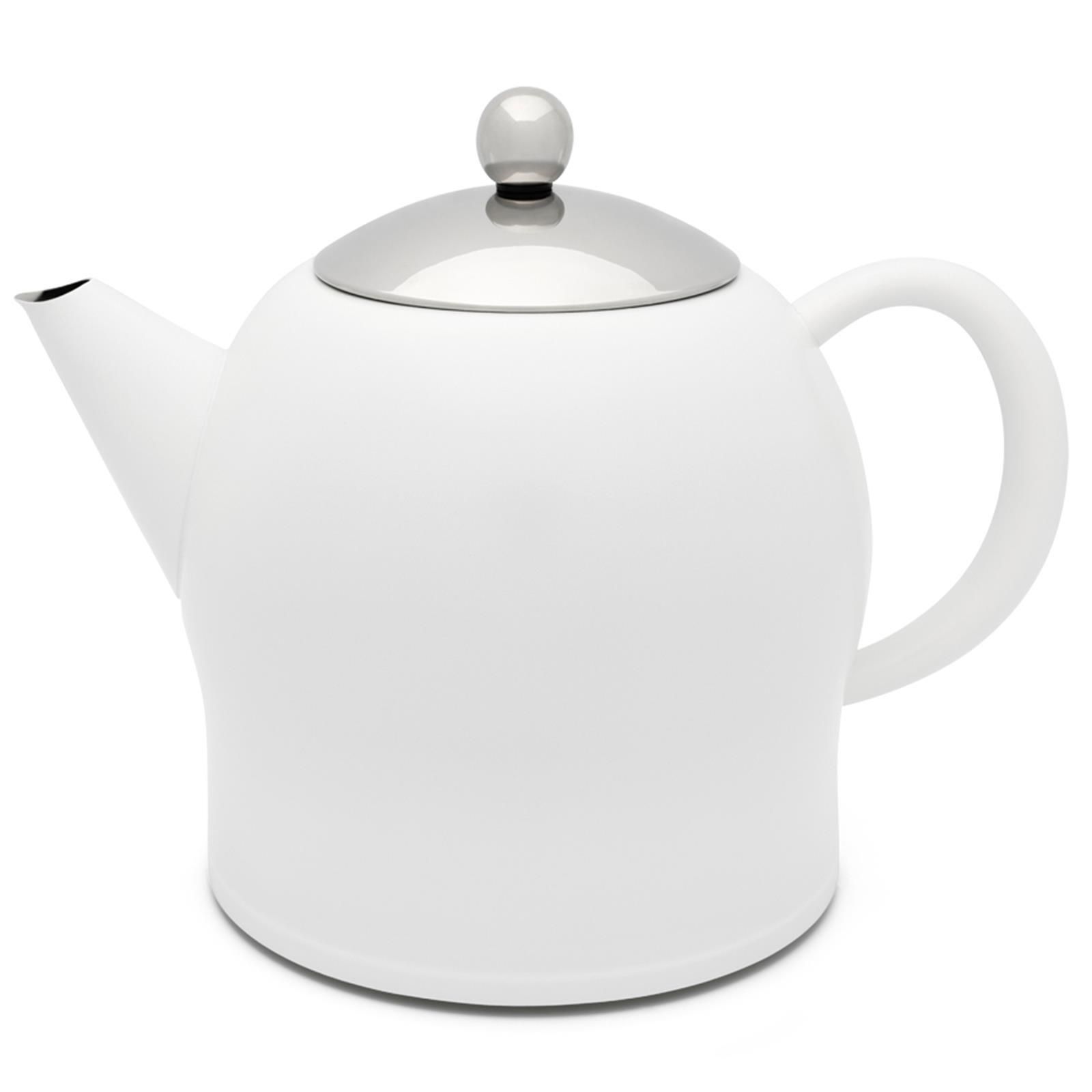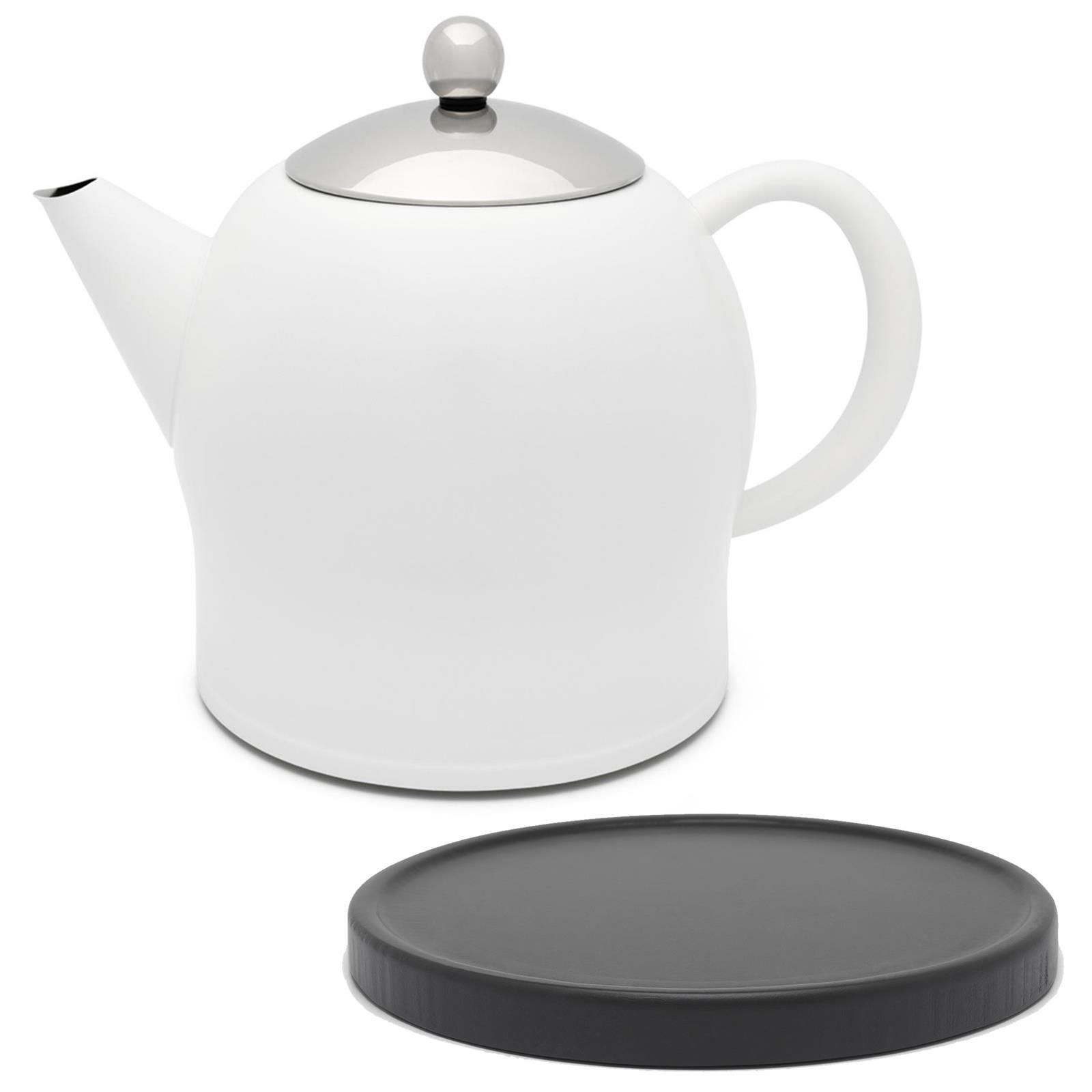 Bredemeijer Bredemeijer Teekanne doppelwandig Sieb 1,4 L weiß Edelstahl Teebereiter Untersetzer s