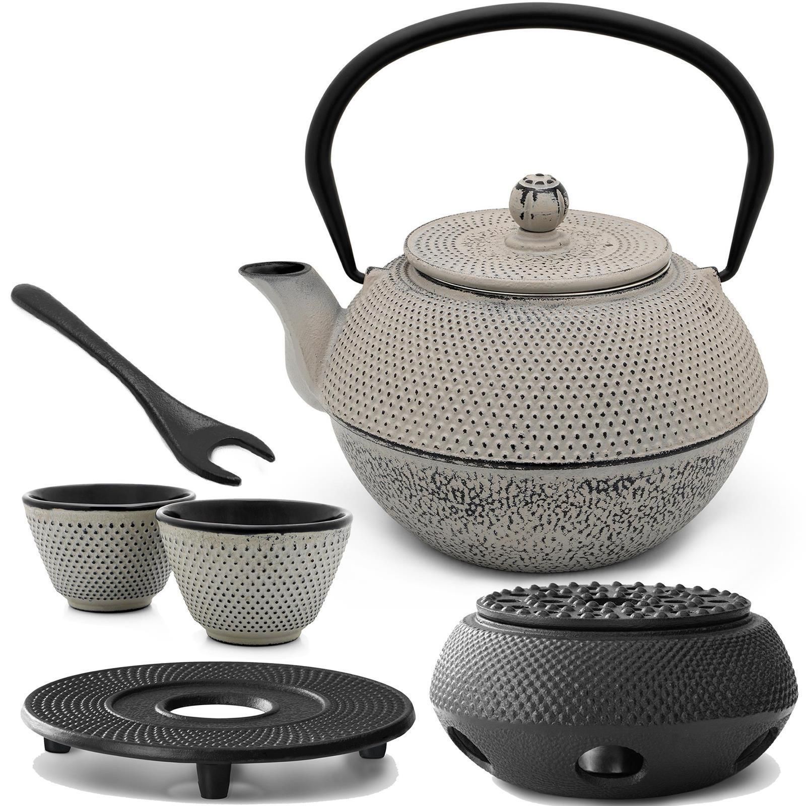Bredemeijer Bredemeijer Teekanne Guss 1,1 L grau Tee-Set 2 Becher Untersetzer Stövchen mit Deckel