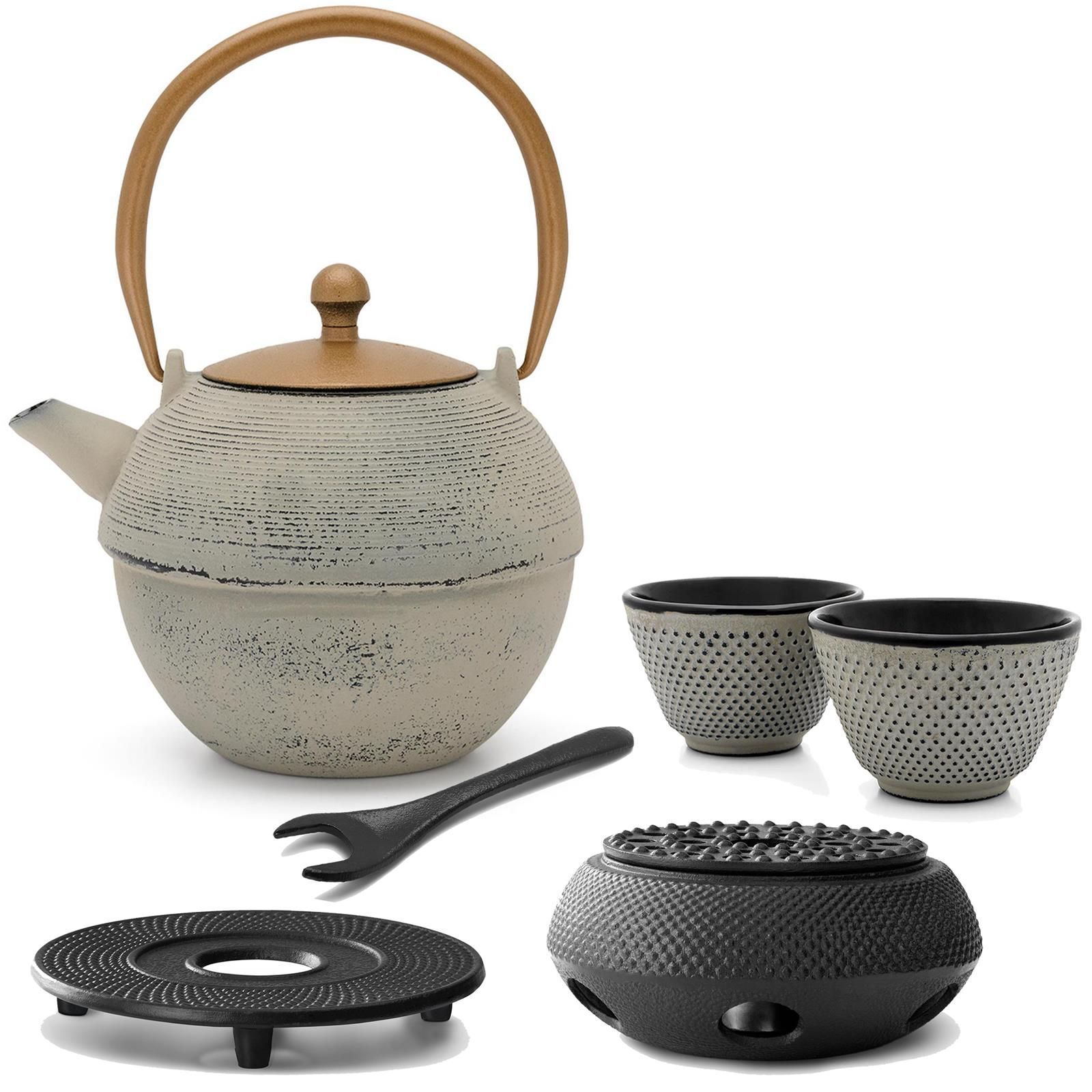 Bredemeijer Bredemeijer Teekanne Guss 1,2 L grau Tee-Set 2 Becher Untersetzer Stövchen mit Deckel