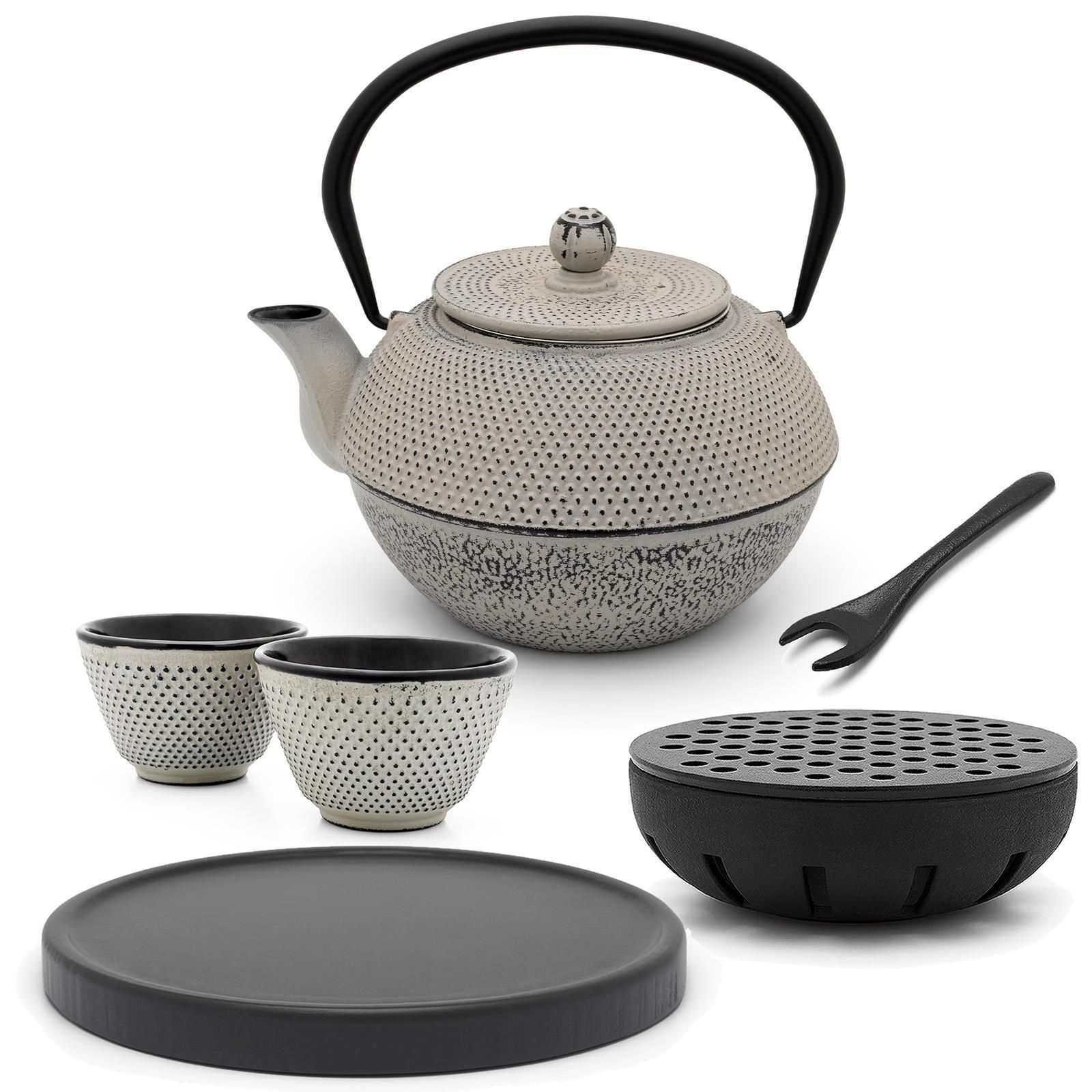 Bredemeijer Bredemeijer Teekanne Gusseisen 1,1L grau Set 2 Becher Holzuntersatz Teewärmer & Decke