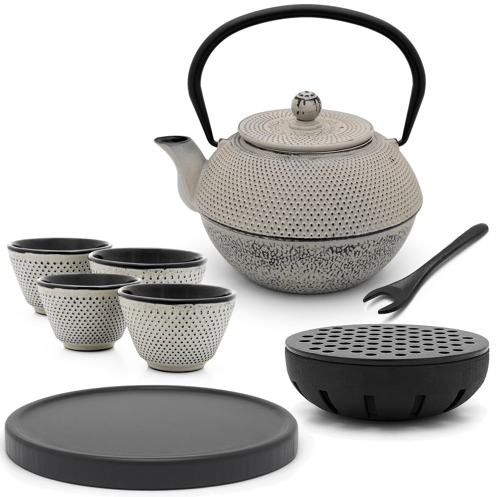 Bredemeijer Bredemeijer Teekanne Gusseisen 1,1L grau Set 4 Becher Holzuntersatz Teewärmer & Decke