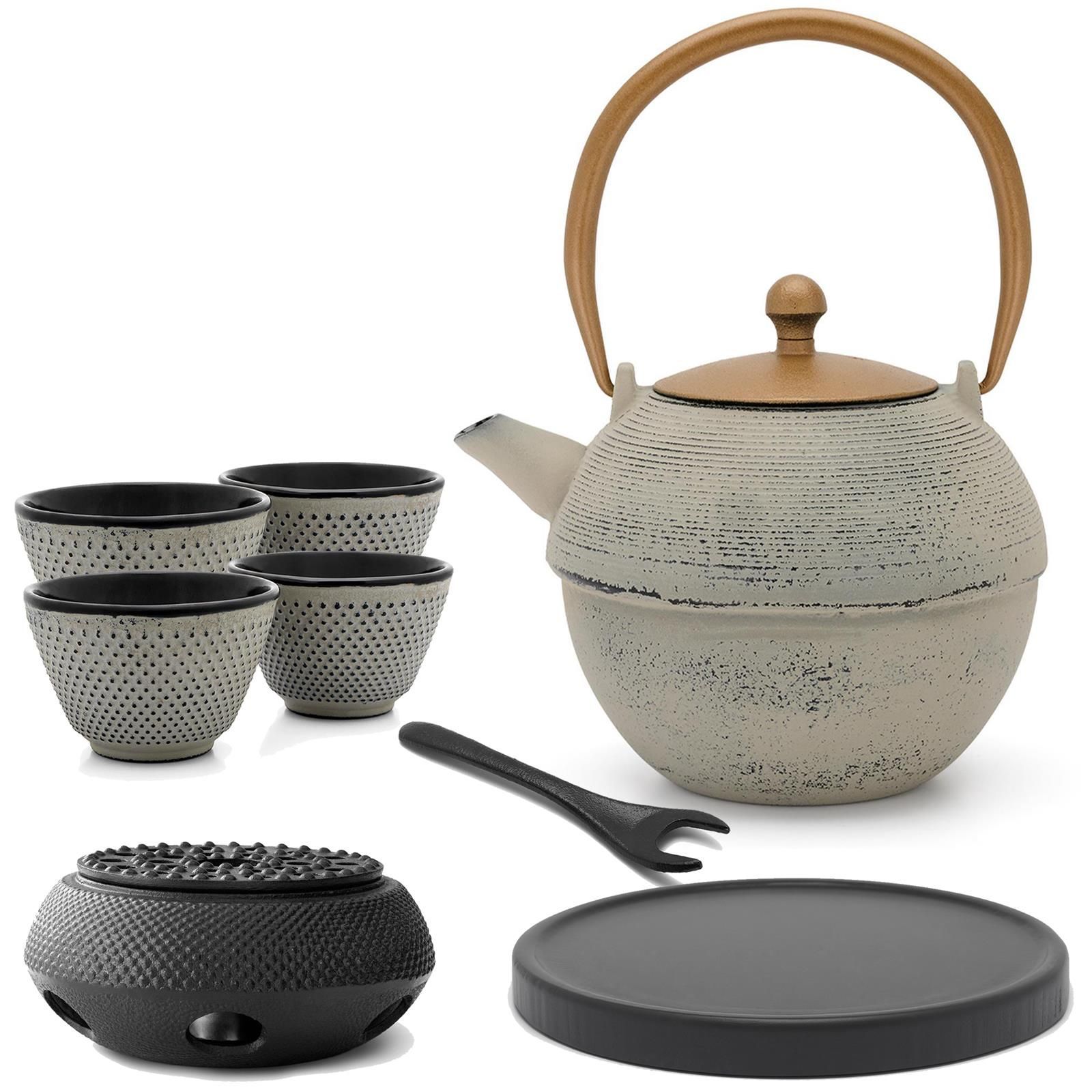 Bredemeijer Bredemeijer Teekanne Gusseisen 1,2 L grau Set 4 Becher Holzuntersatz Stövchen & Decke