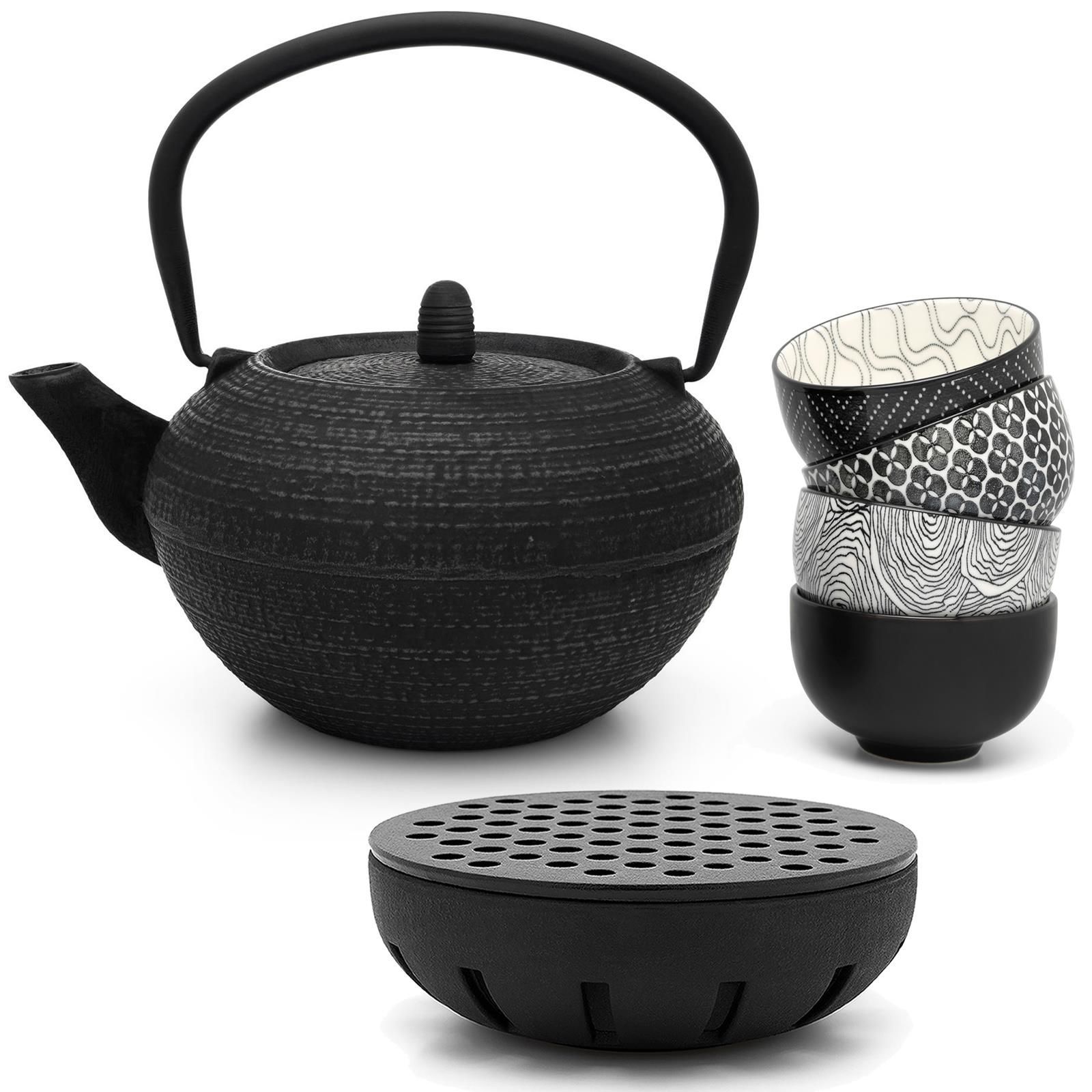 Bredemeijer Teekanne Set 0,8 L grau Asia Gusseisen Teewärmer & 4 Becher