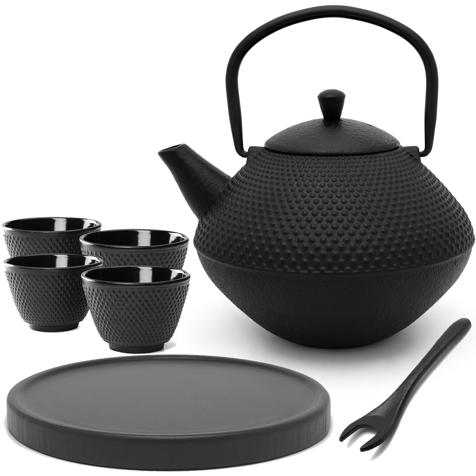 Bredemeijer Bredemeijer Teekanne Gusseisen Set 1 L Asia schwarz 4 Becher Holzuntersetzer Deckelhe