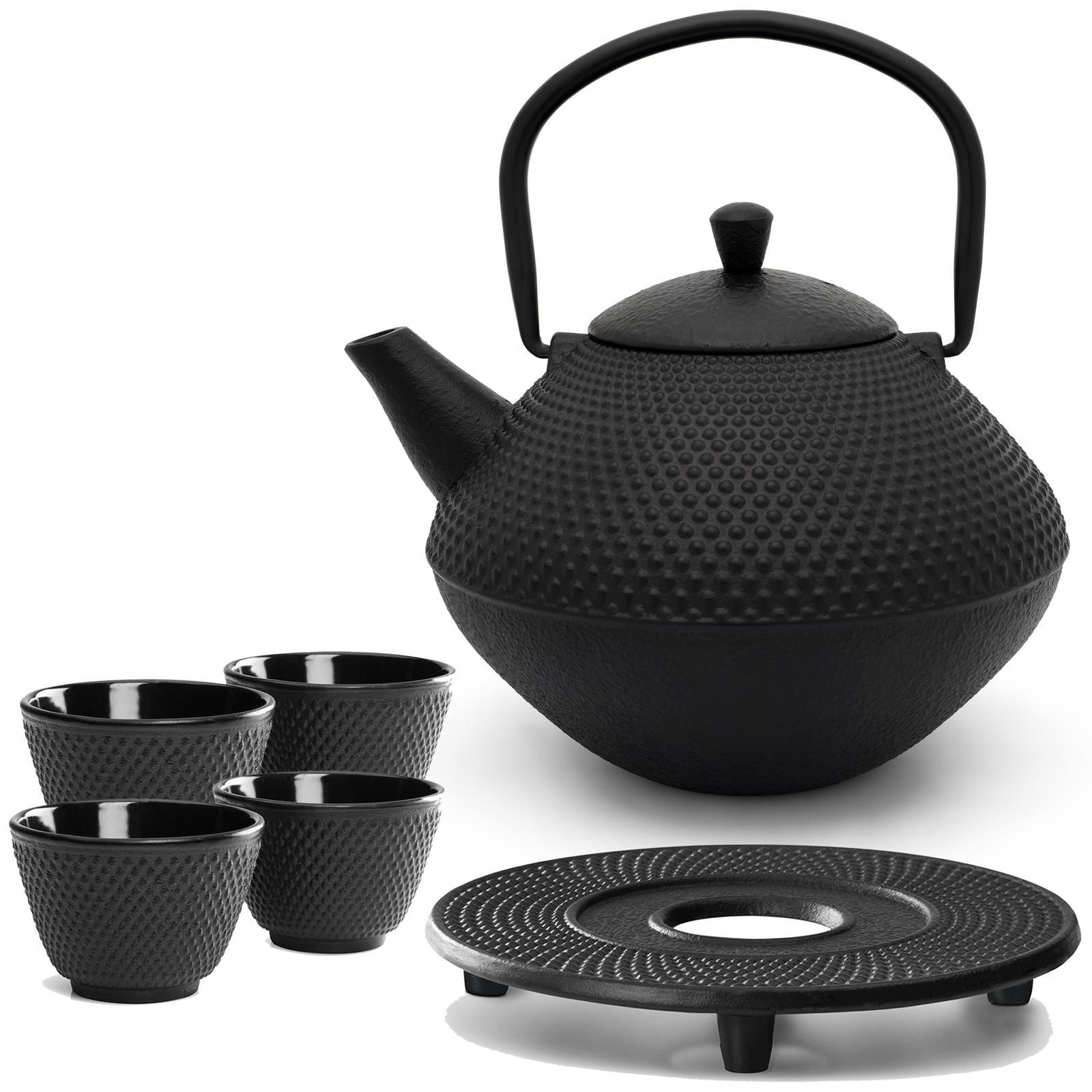 Bredemeijer Bredemeijer Teekanne Gusseisen Set 1 L schwarz Teekessel asiatisch 4 Becher Untersetz
