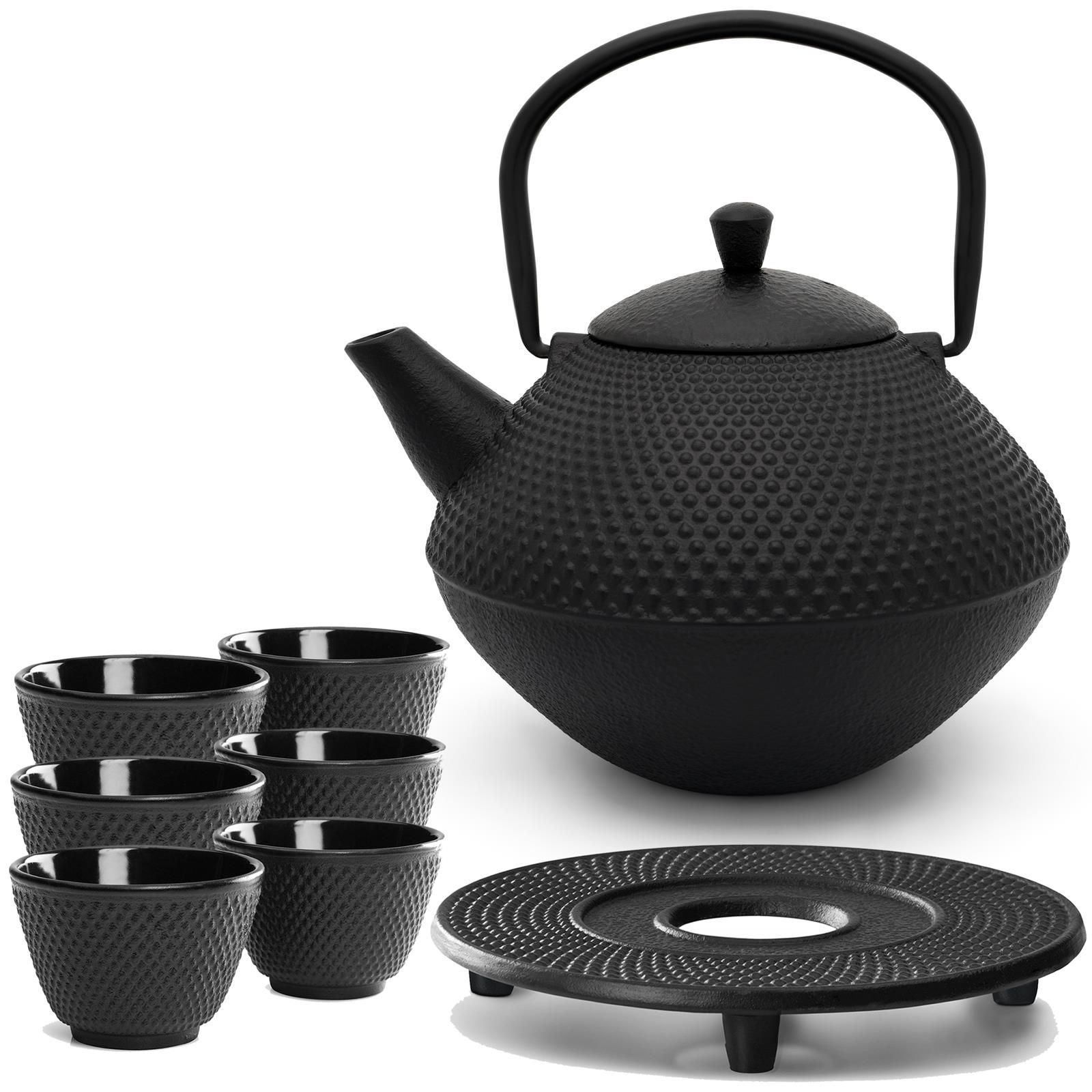 Bredemeijer Bredemeijer Teekanne Gusseisen Set 1 L schwarz Teekessel asiatisch 6 Becher Untersetz