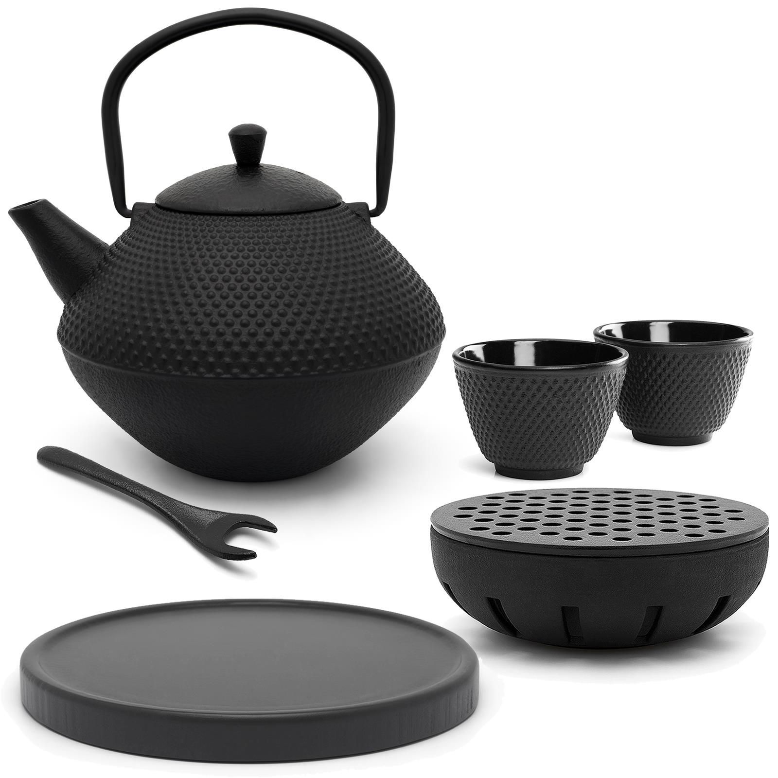 Bredemeijer Bredemeijer Teekanne Gusseisen Set 1L schwarz Holzuntersetzer Teewärmer 2 Becher Deck
