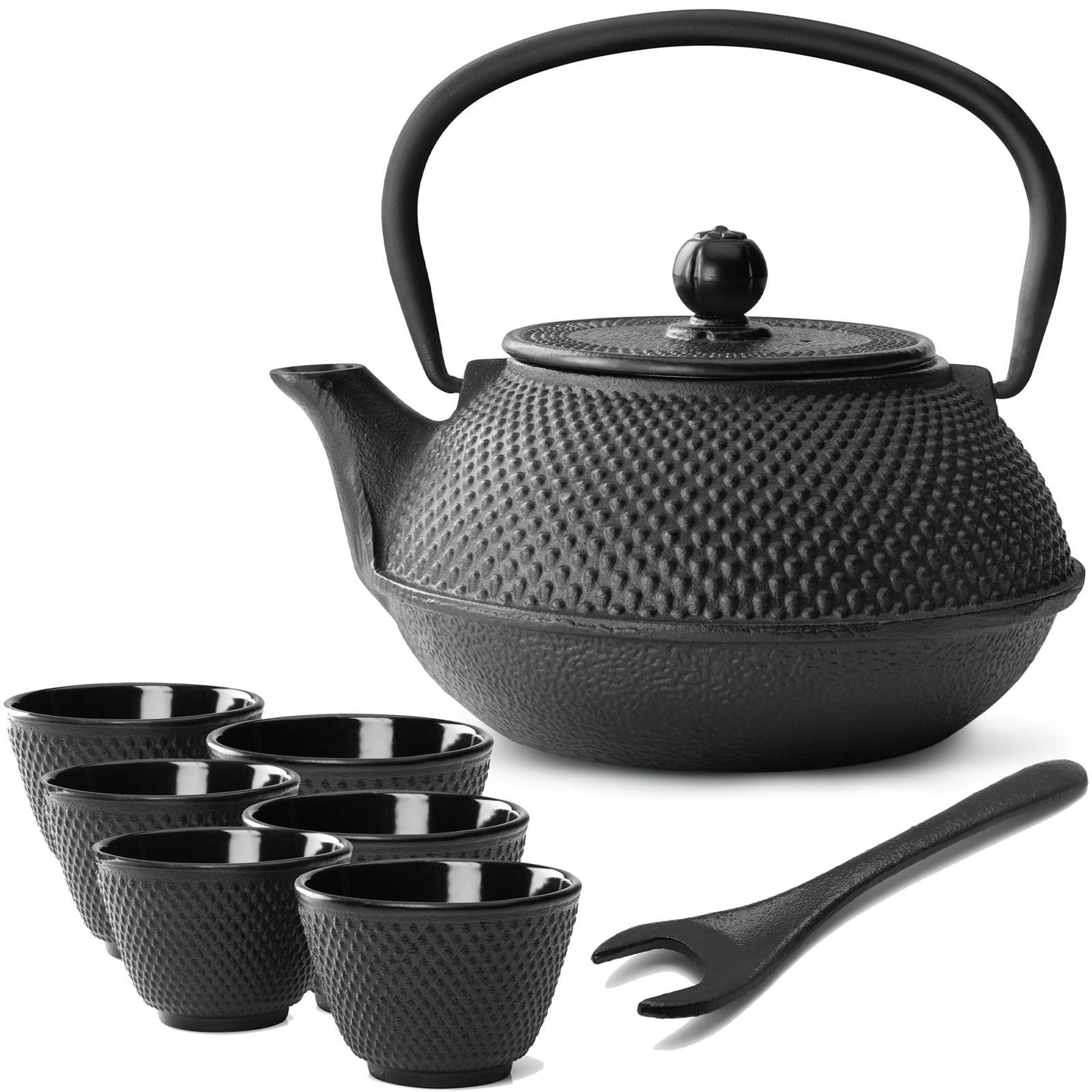 Bredemeijer Bredemeijer Teekanne Service 0,8 L Gusseisen Gusskanne Set mit Deckelheber & 6 Teetas