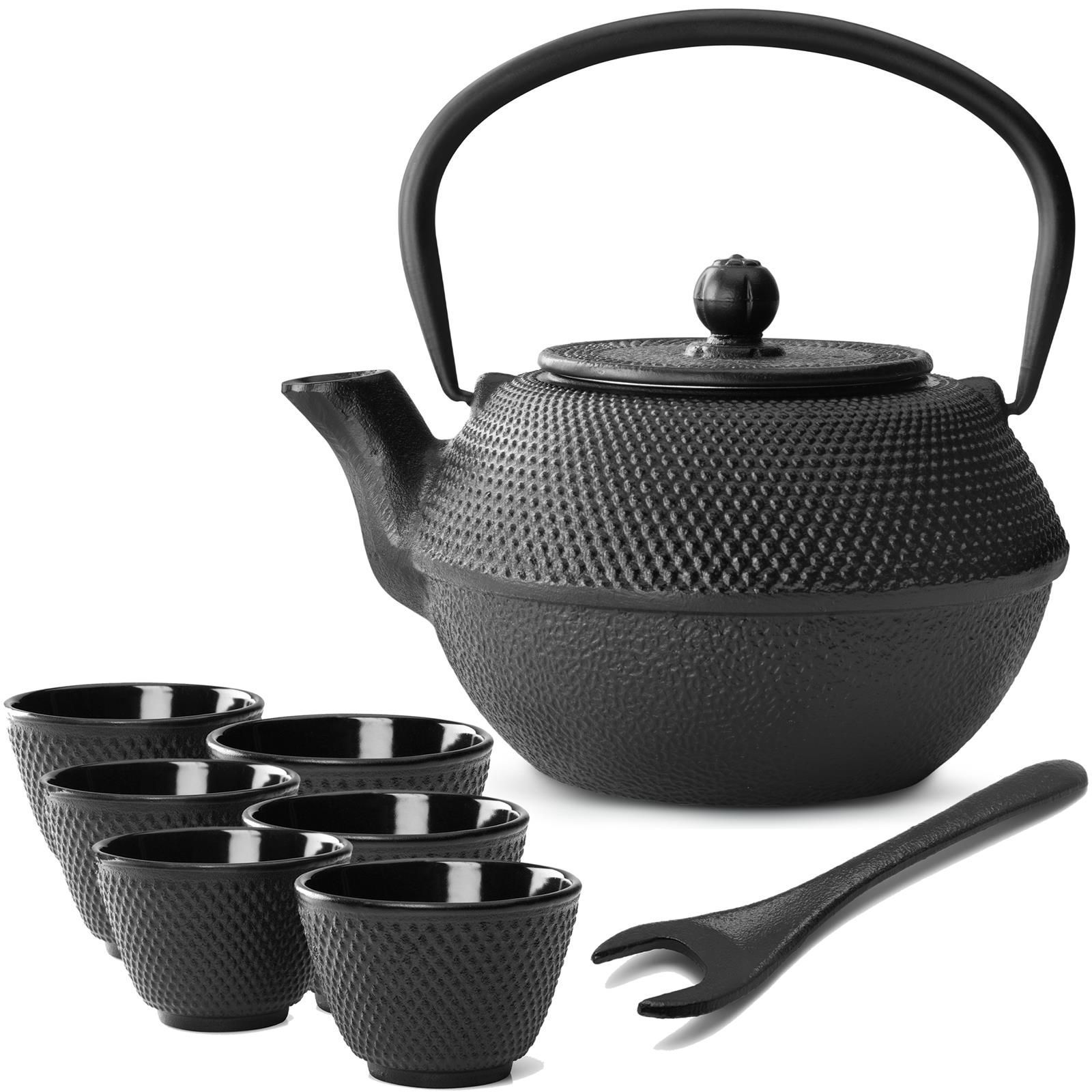 Bredemeijer Bredemeijer Teekanne Service 1,1 L Gusseisen Gusskanne Set mit Deckelheber & 6 Teetas