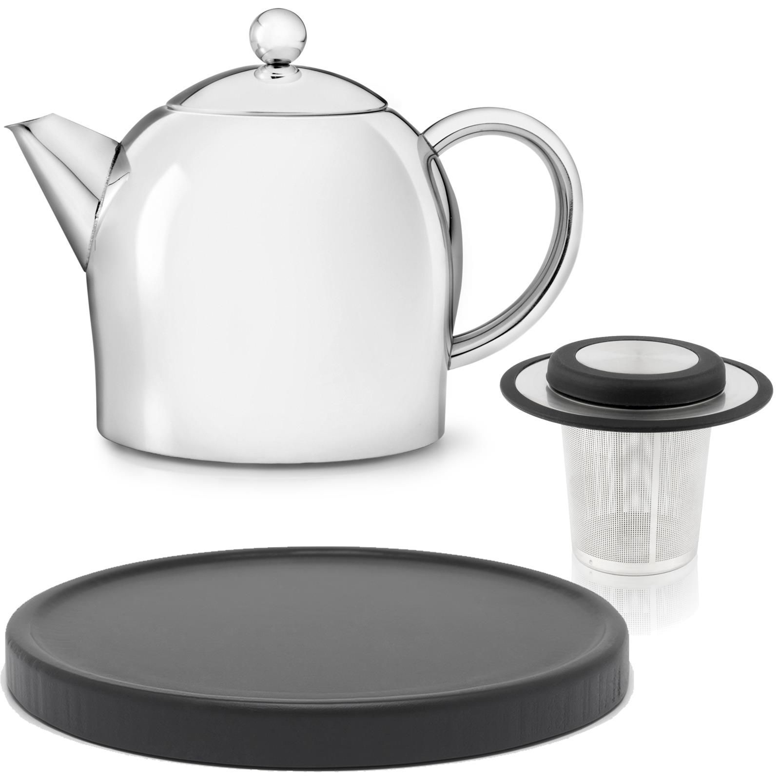 Bredemeijer Bredemeijer Teekanne Set 0,5L Edelstahl Glanz doppelwandig Holz Untersetzer schwarz