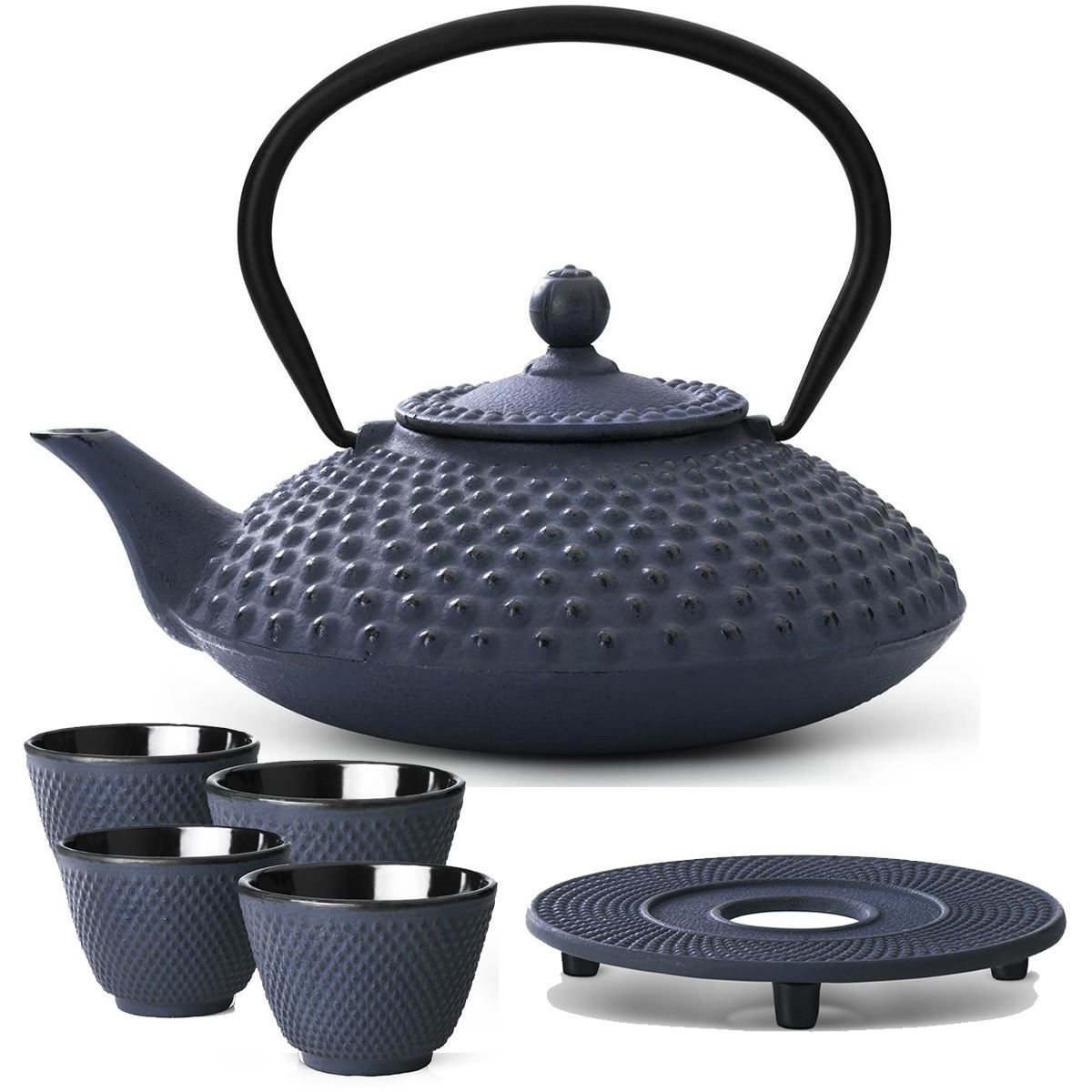 Bredemeijer Bredemeijer Teekanne Set 1,25L blau Asia Gusskanne 4 Becher Untersetzer Teeservice Gu