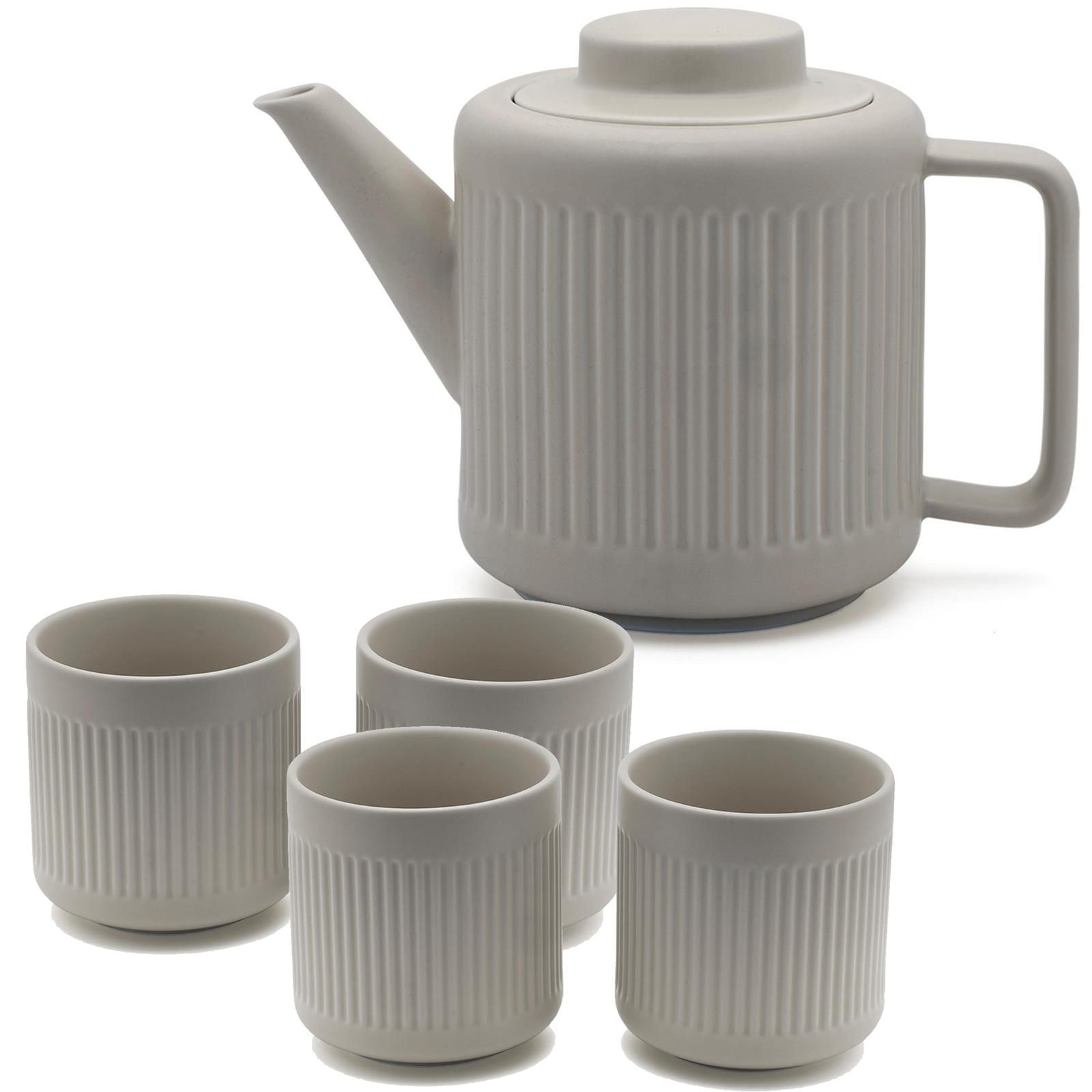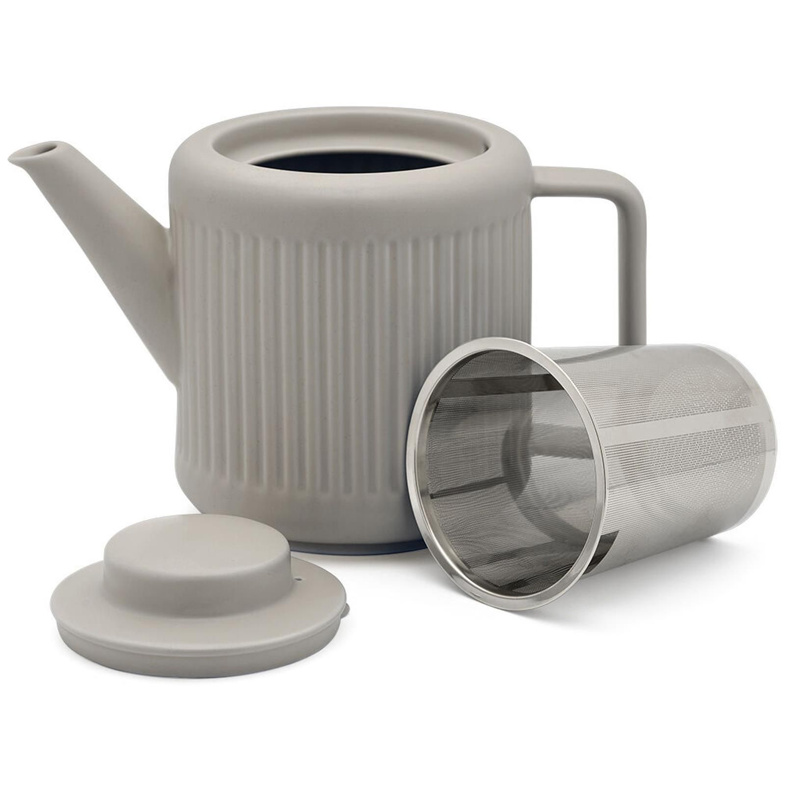 Bredemeijer Bredemeijer Teekannen Set 1,2 L graues Porzellan Edelstahl Teesieb Kanne mit 4 Teebec