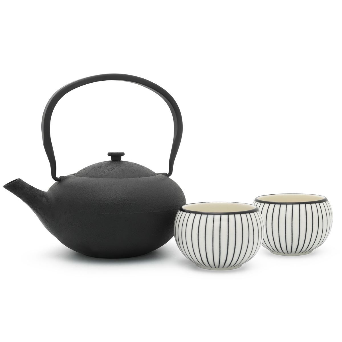 Bredemeijer Bredemeijer Teekannen Set 3-teilig Gusseisen mit 2 Porzellan Teebecher Gusskanne & Te