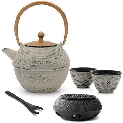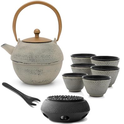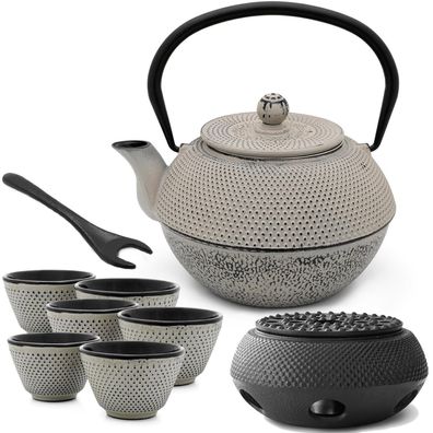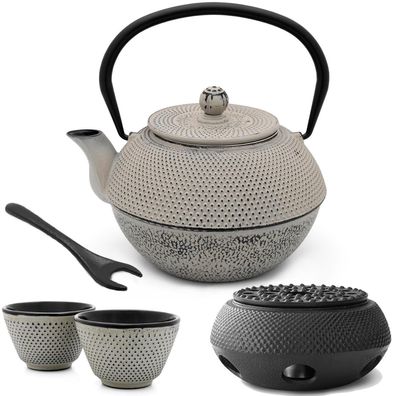 Bredemeijer Große Aisa Teekanne Gusseisen 1,2 L grau Teeset 6 Becher Stövchen & Decke