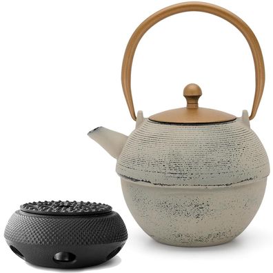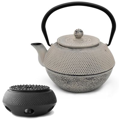 Bredemeijer Große asiatische Teekanne Set Gusseisen 1,2 L Teeset grau Guss-Stövchen s