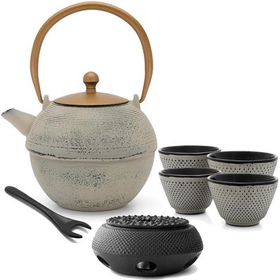 Bredemeijer Asia Teekanne Gusseisen 1,2 L grau Teeset 6 Teebecher Untersetzer mit Tee