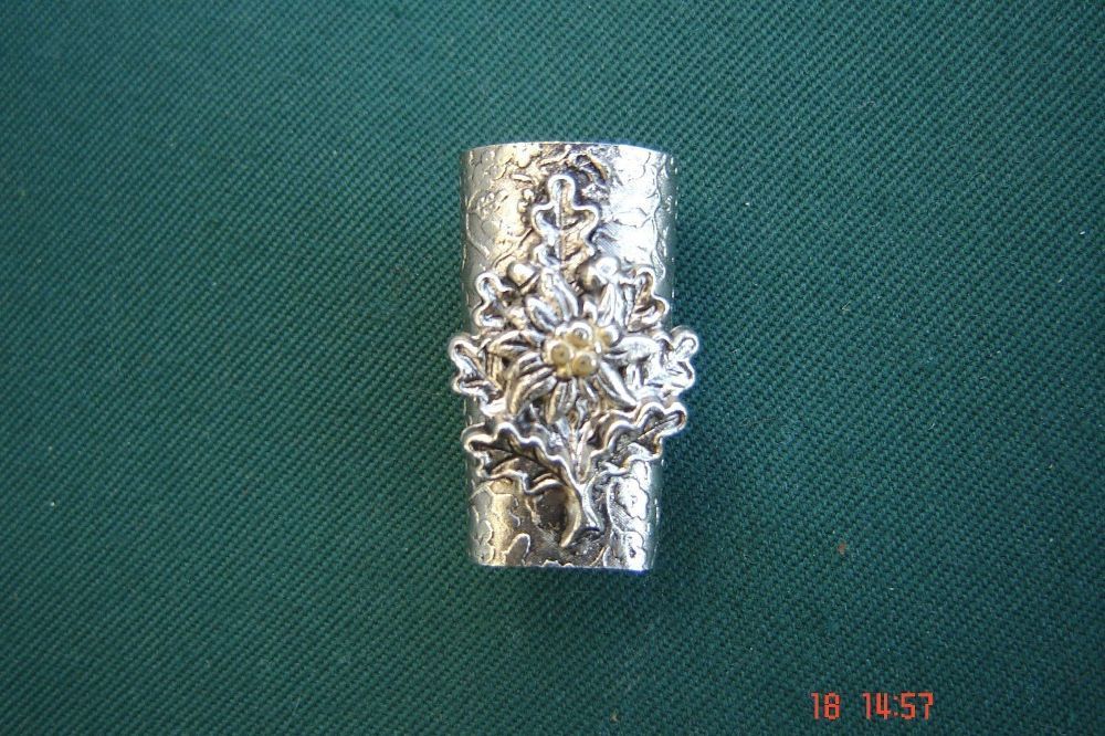 breite Federhülse Federhalter Halter f Feder Edelweiß silberfarben Trachtenhut s-p