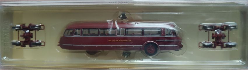 Topzustand, kein Anlagenbetrieb, in OVP mit allen Papieren; , Zurüstteile nicht montiert; ---------------------------------------------------------------------------- Brekina HO 63010 NWF BS 300 Schi-Stra-Bus Ep IIIa Epoche IIIa Modell in 1:87 - Feindetailliertes Modell mit Inneneinrichtung. alle Pa