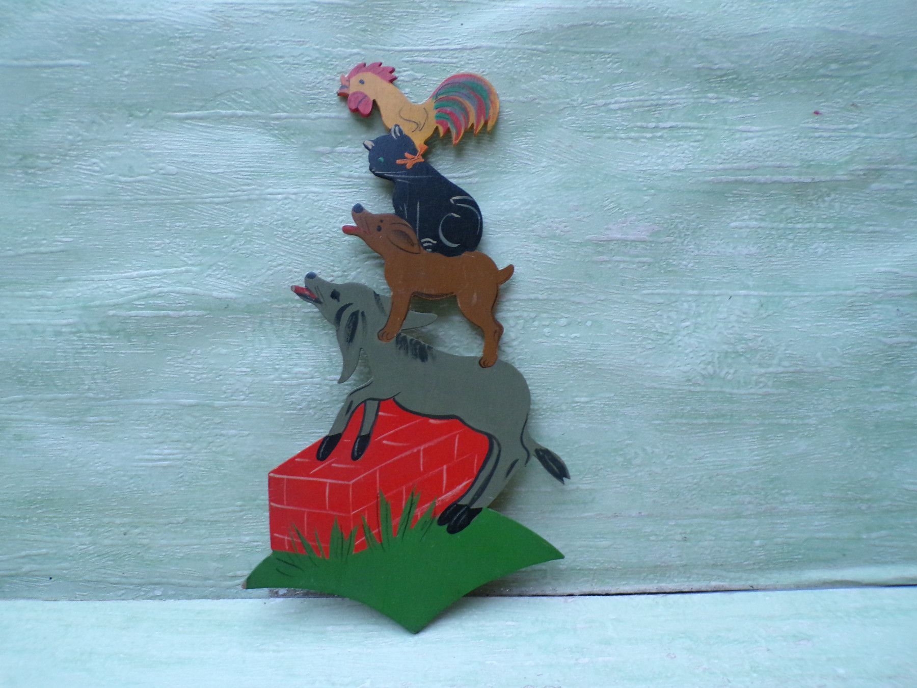 Bremer Stadtmusikanten Märchenbild handgemalt Ravi-Kunst 24cm Holzbild