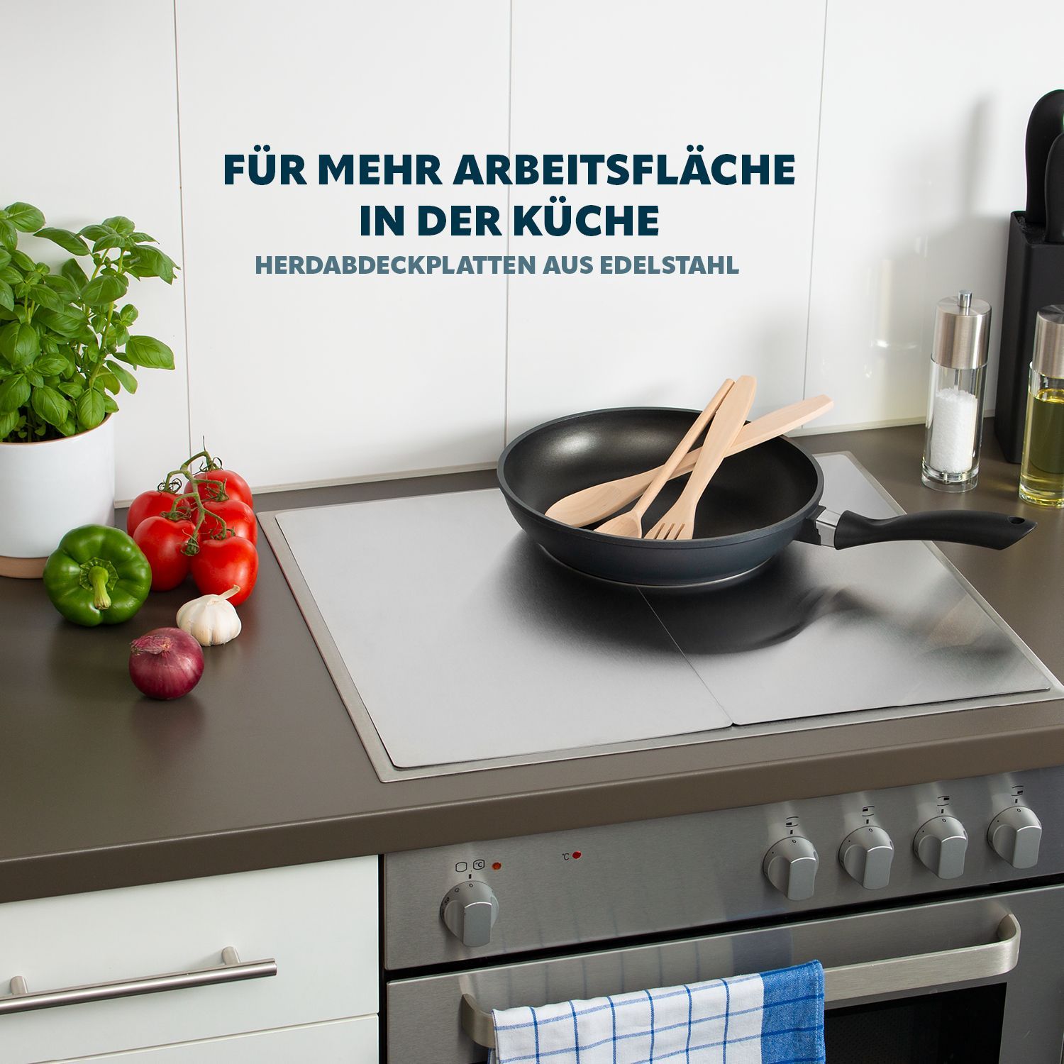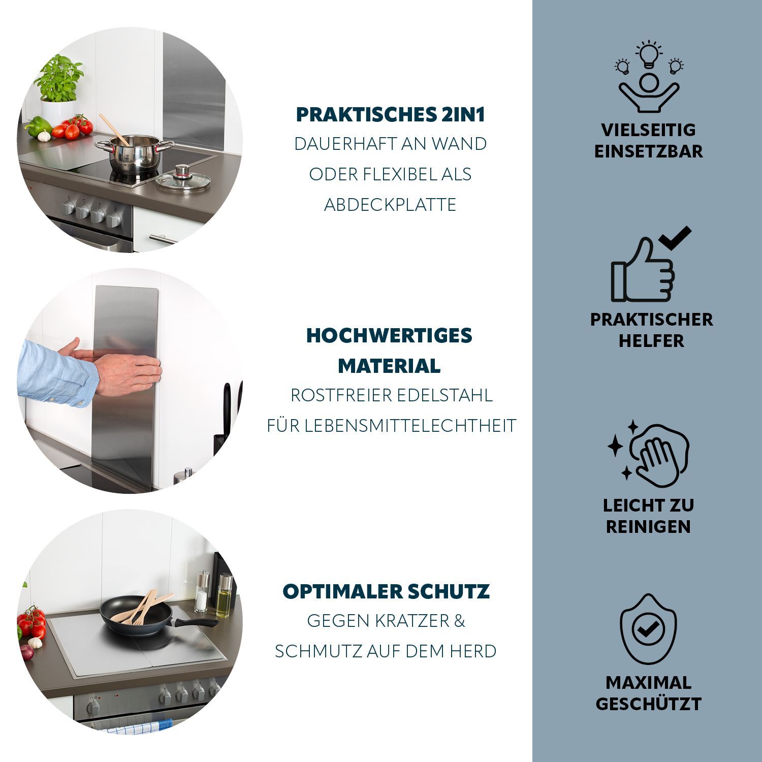 bremermann 2er Herdabdeckplatte 2in1 aus Edelstahl gleichzeitig Wandspritzschutz