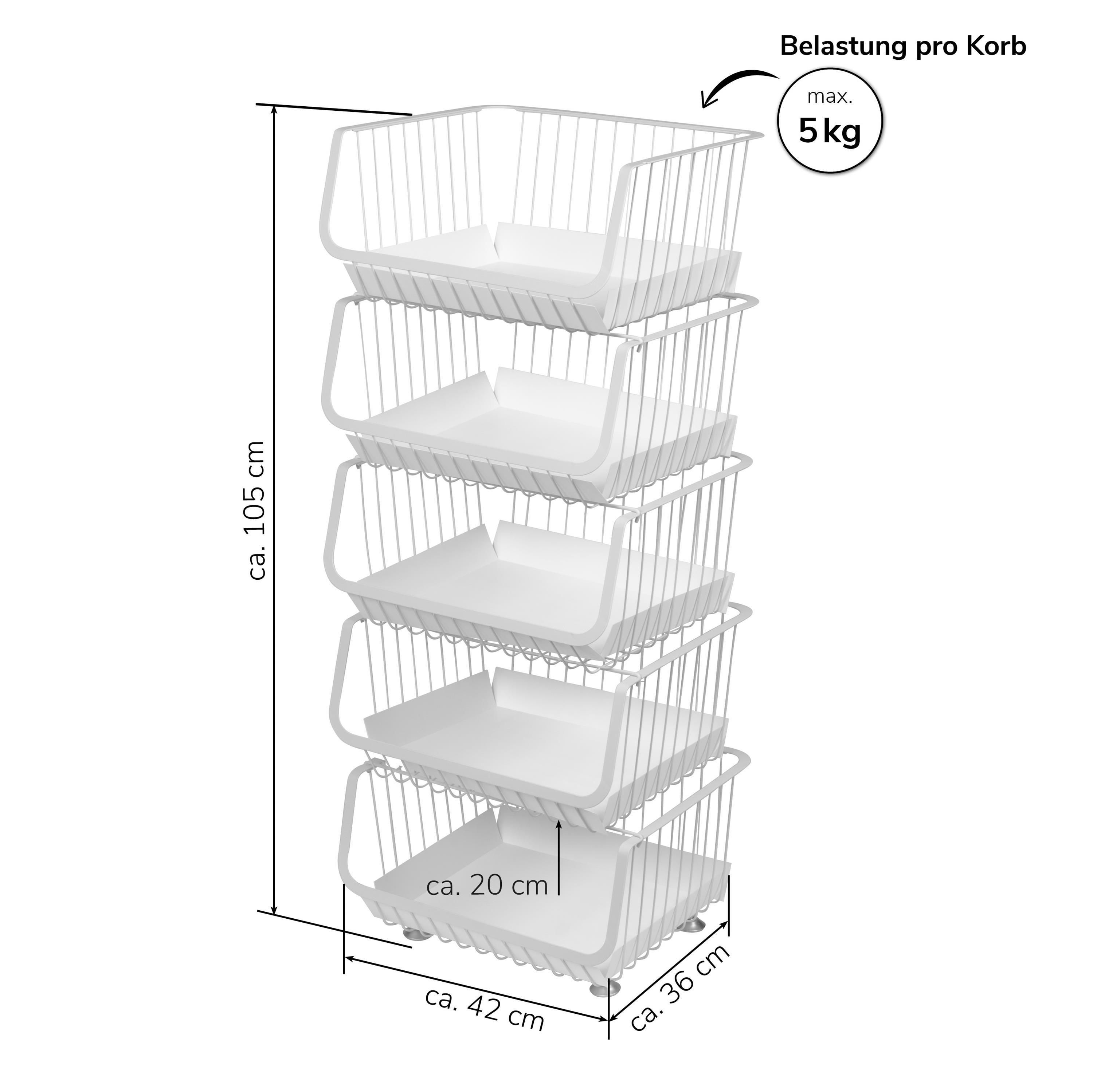 bremermann Aufbewahrungskörbe 5-stufig mit Einlegeböden, aus Metall in weiß