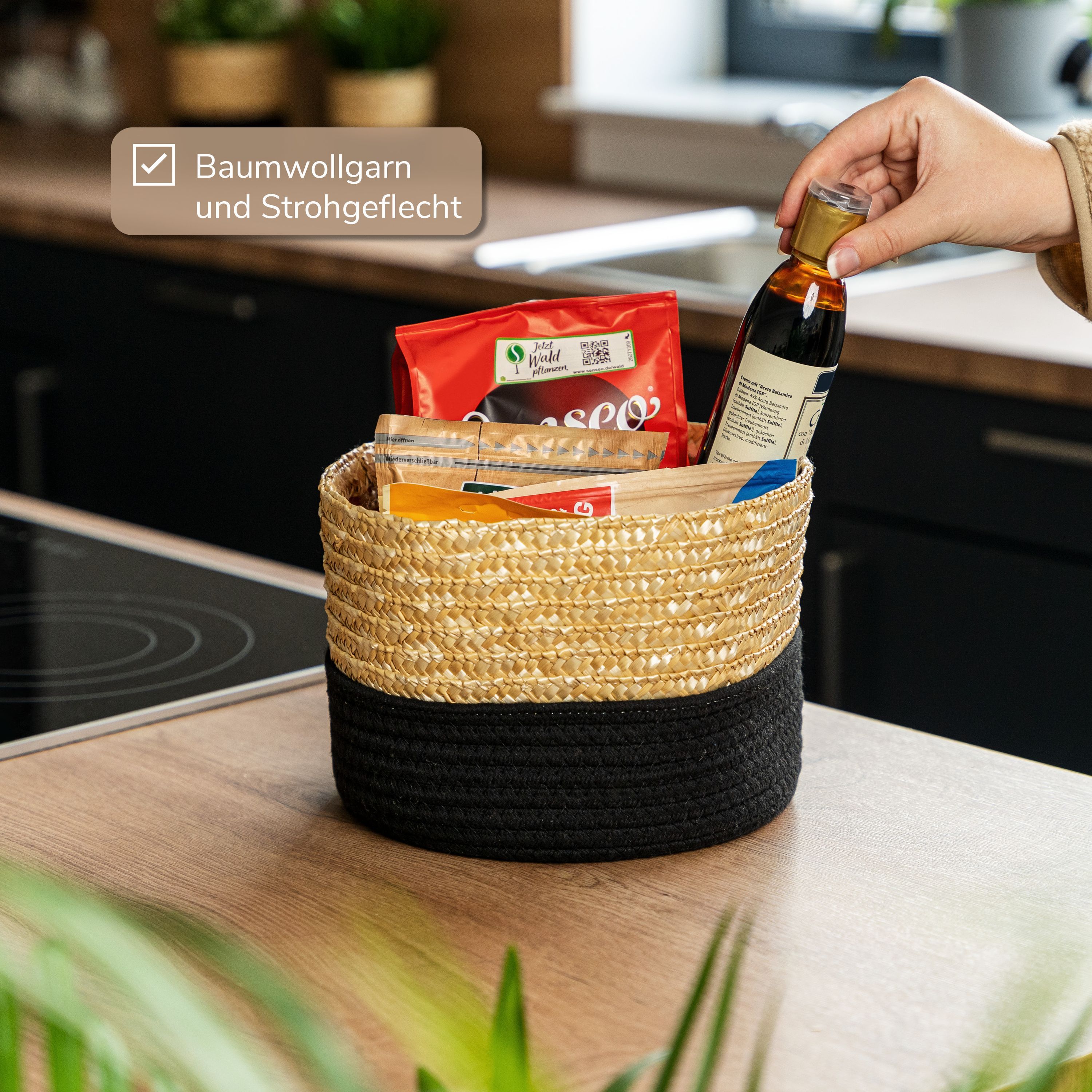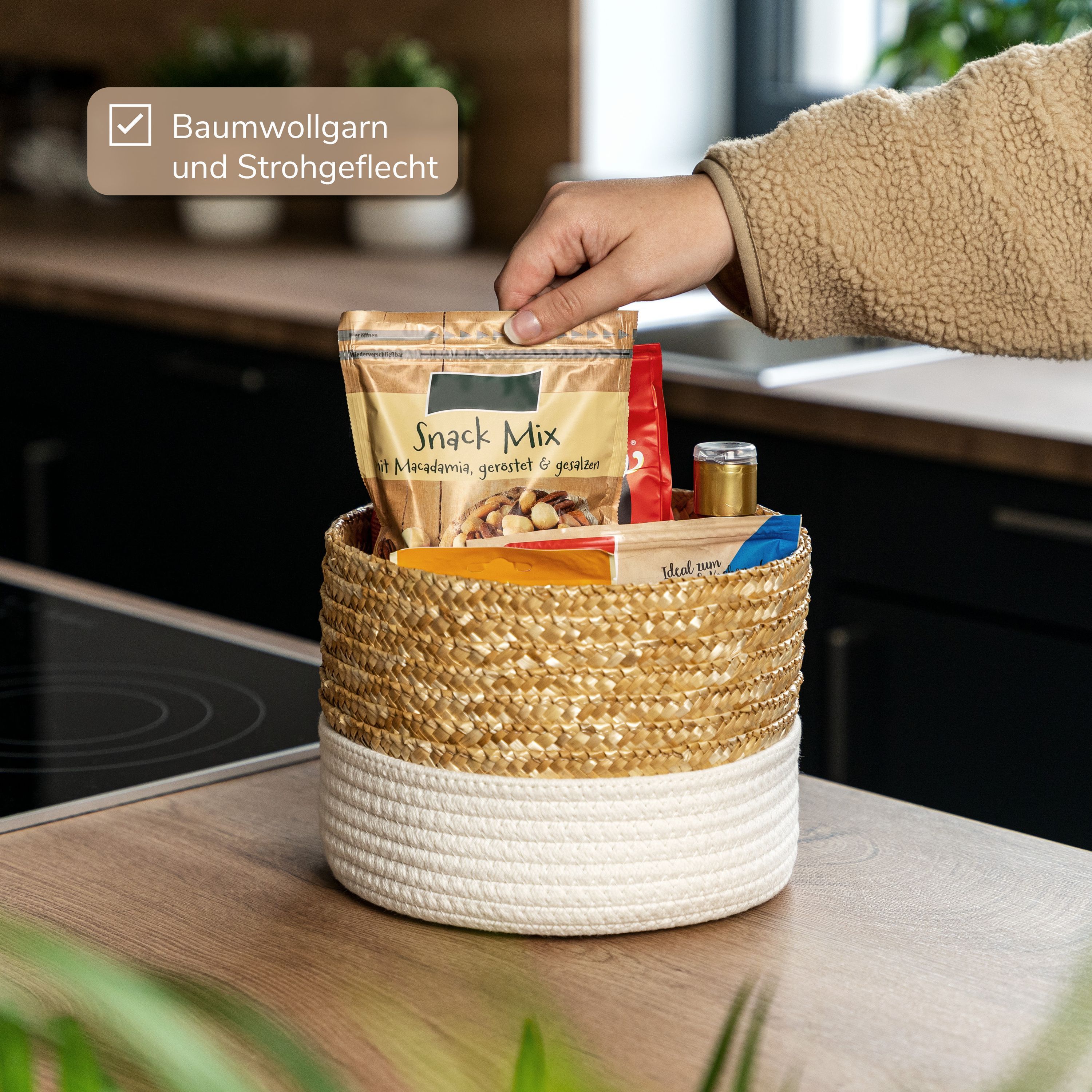 bremermann Aufbewahrungskorb aus Baumwolle/Strohgeflecht Ø 24 cm