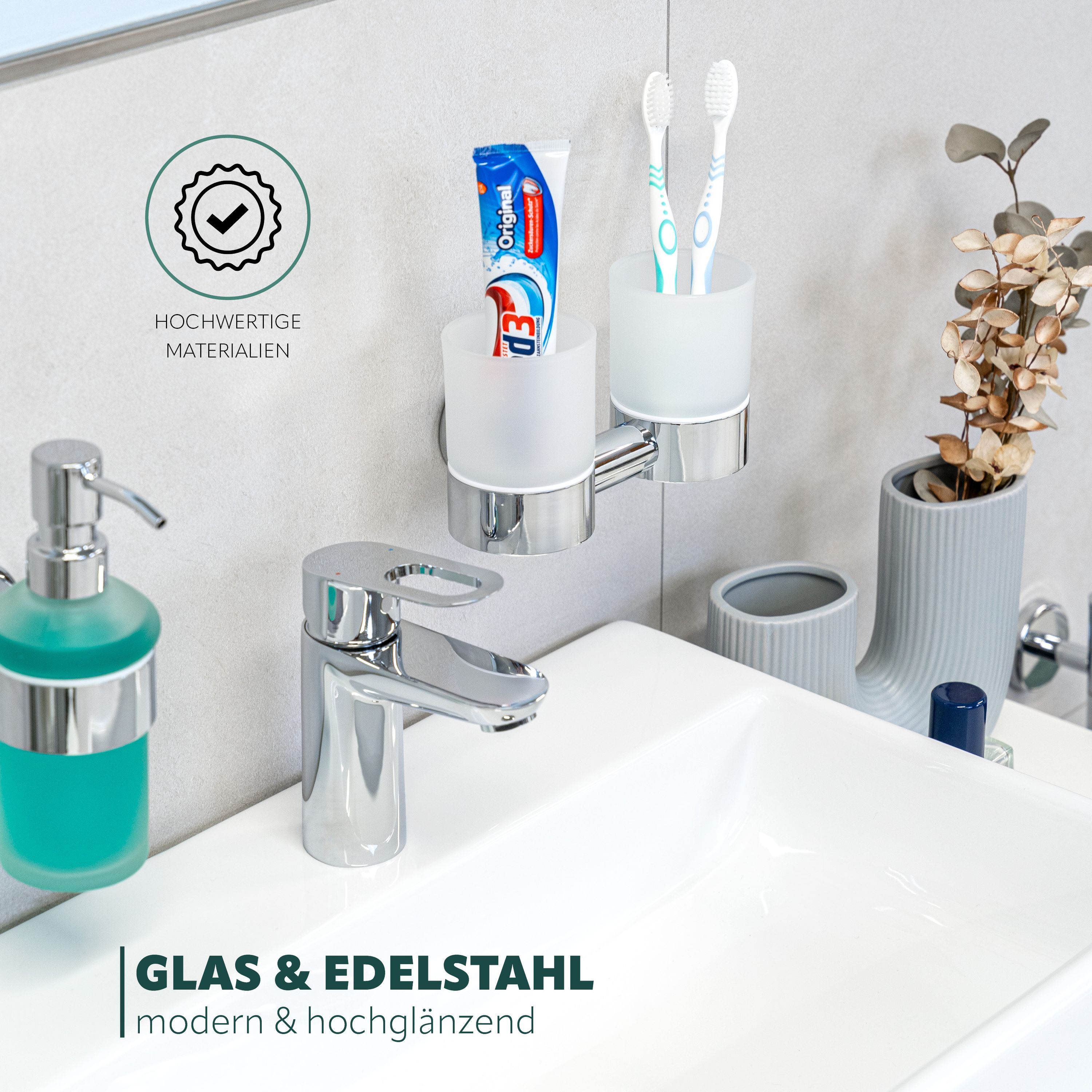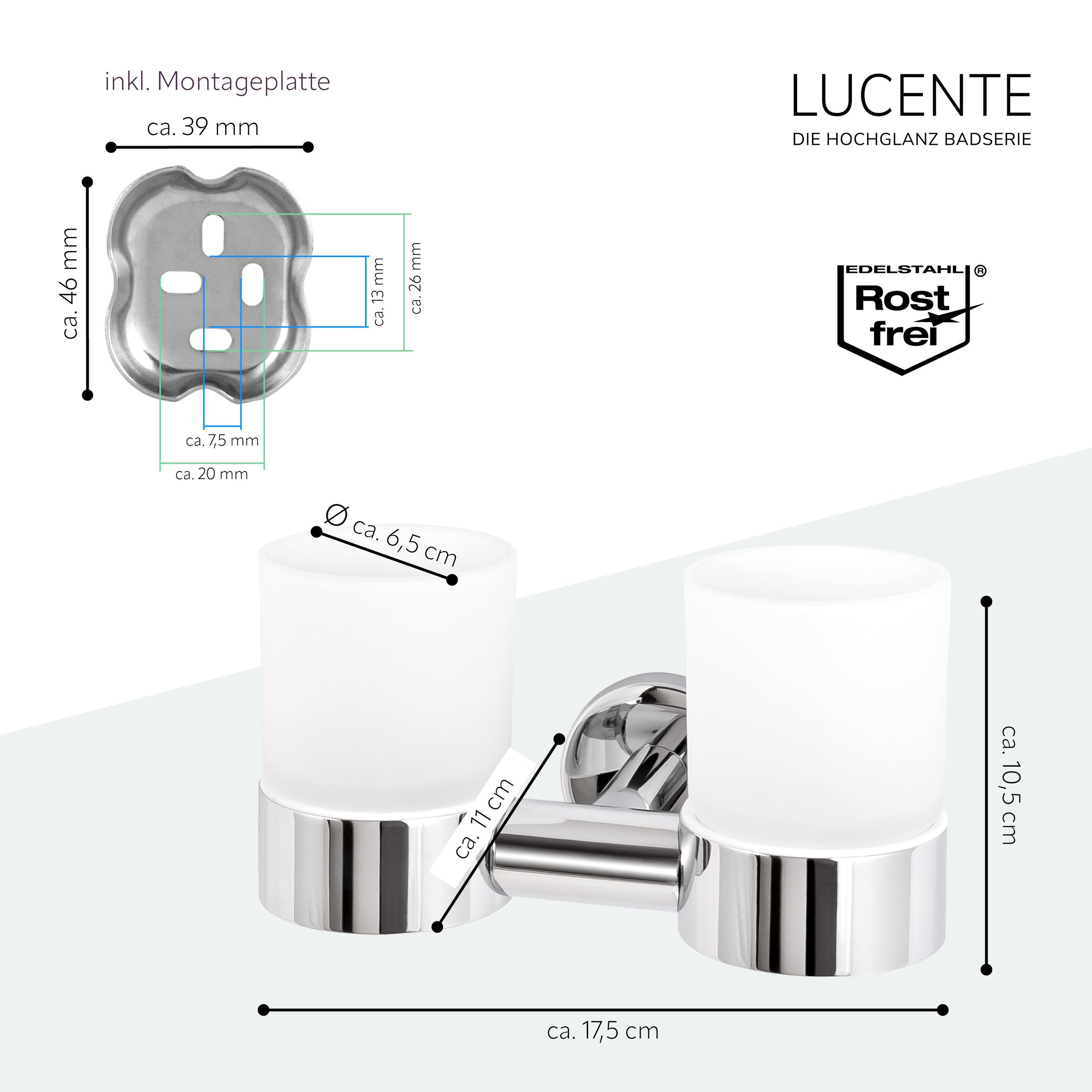 bremermann Bad-Serie Lucente - Doppel-Glasbecherhalter, aus Edelstahl verchromt