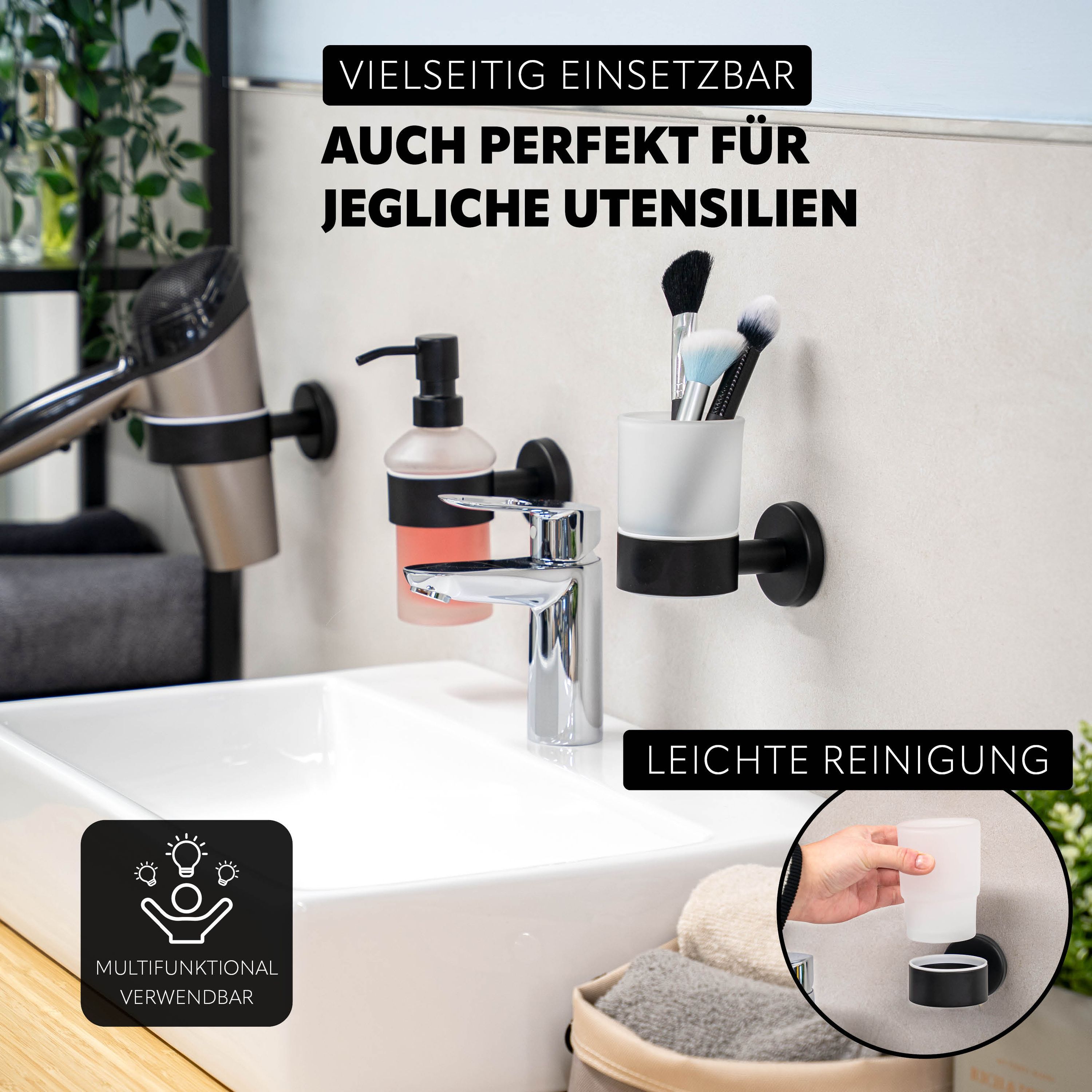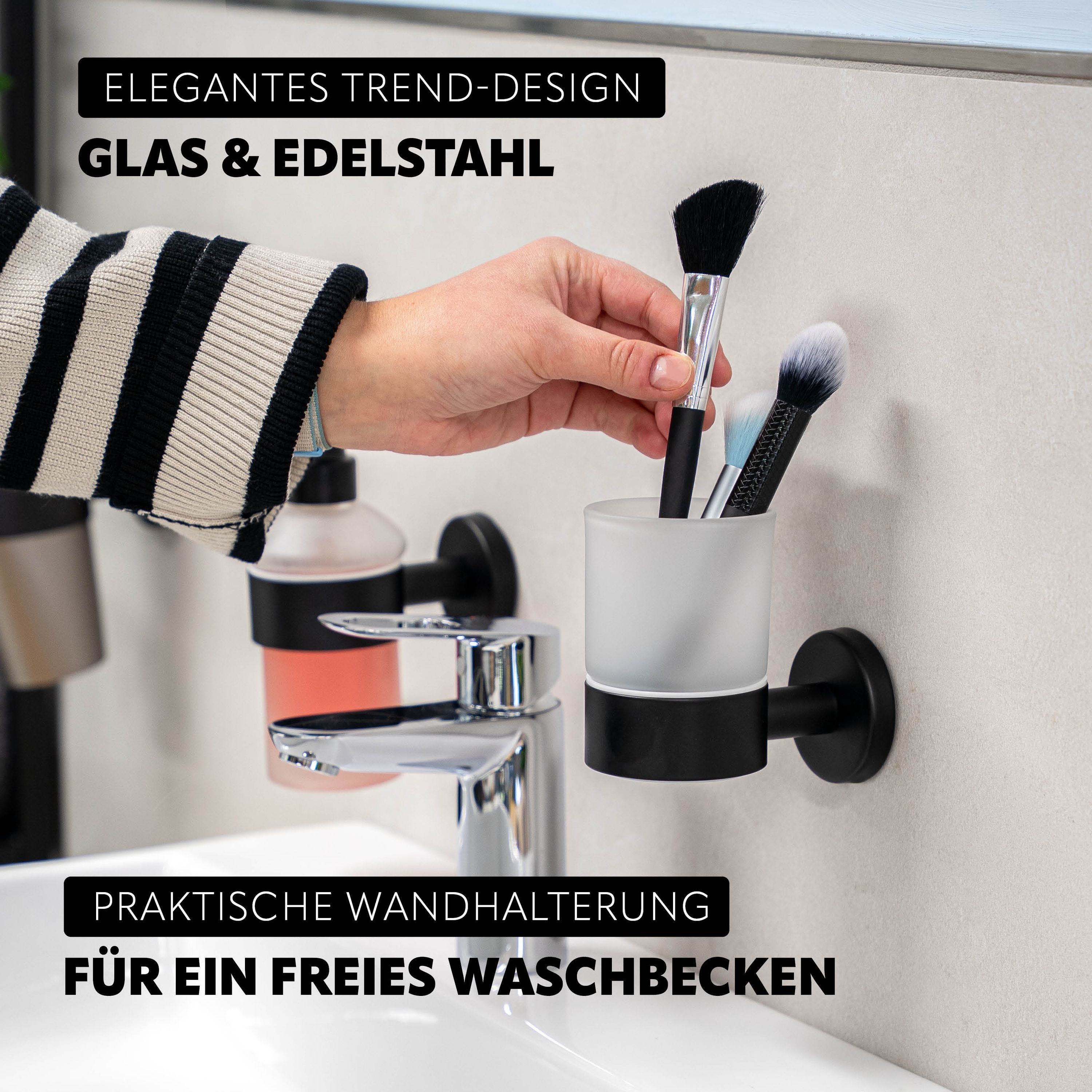 bremermann Bad-Serie PIAZZA BLACK - Glasbecherhalter, aus Edelstahl matt schwarz