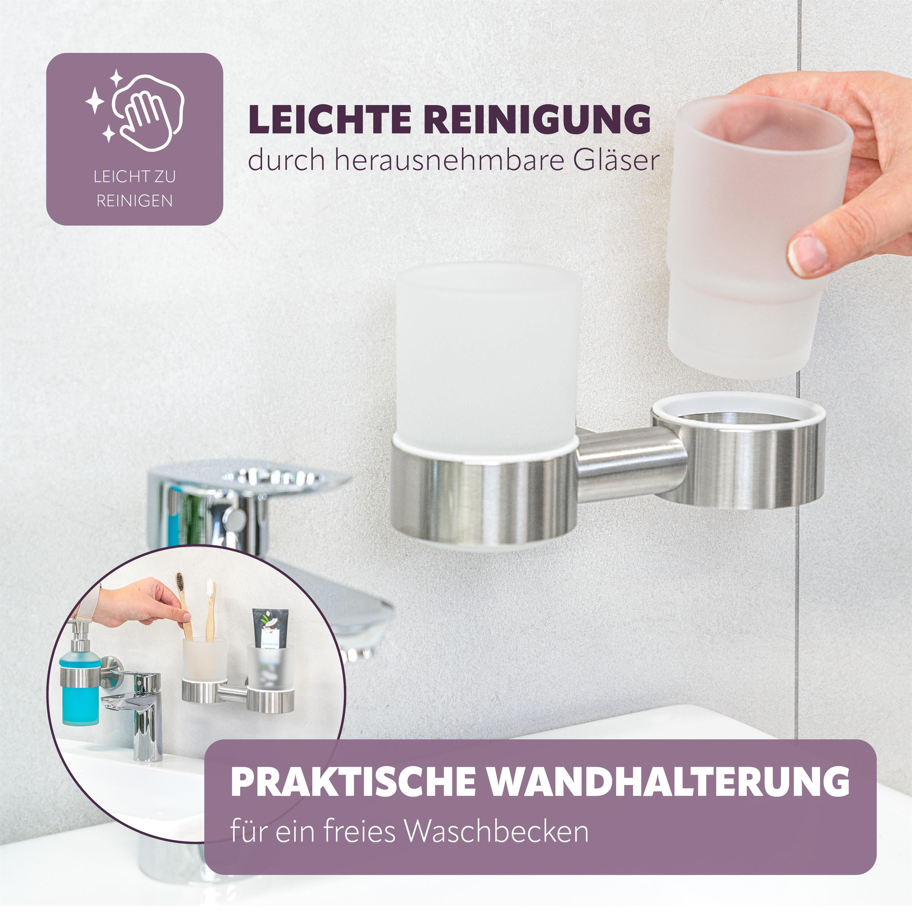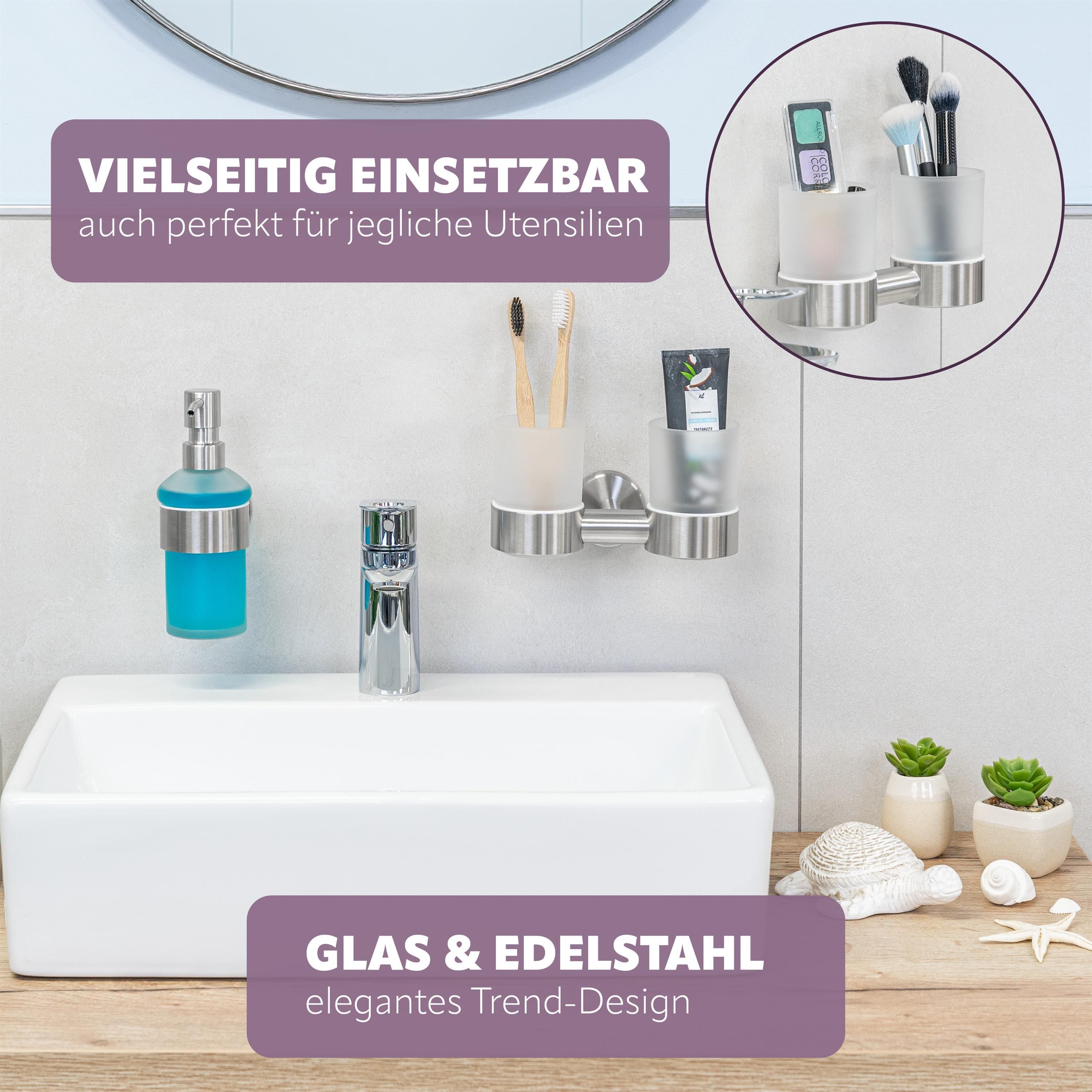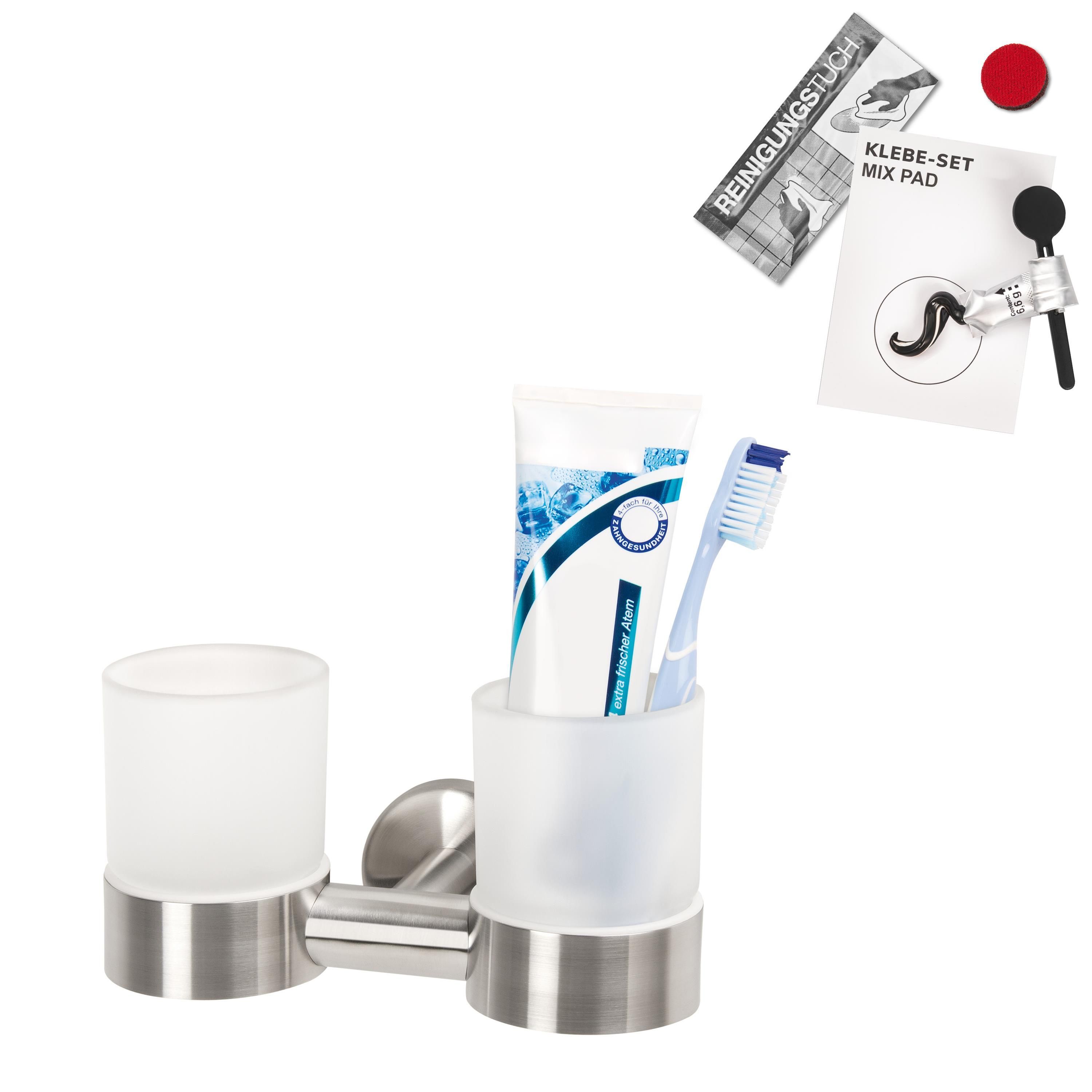 bremermann Bad-Serie PIAZZA - Doppel-Glasbecherhalter inkl. Klebeset, aus Edelstahl