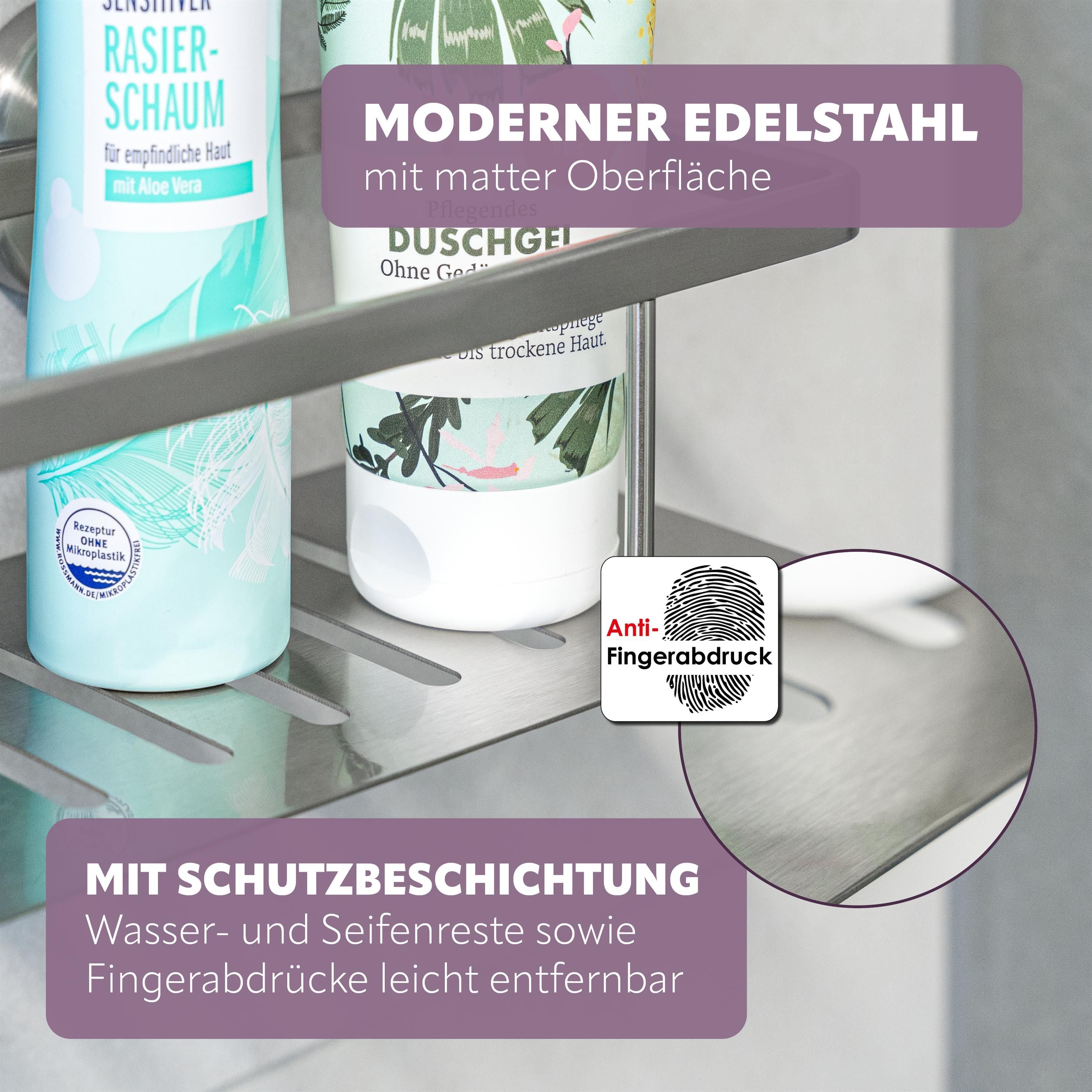 bremermann Bad-Serie PIAZZA - Duschkorb mit Klebeset, Duschablage aus Edelstahl