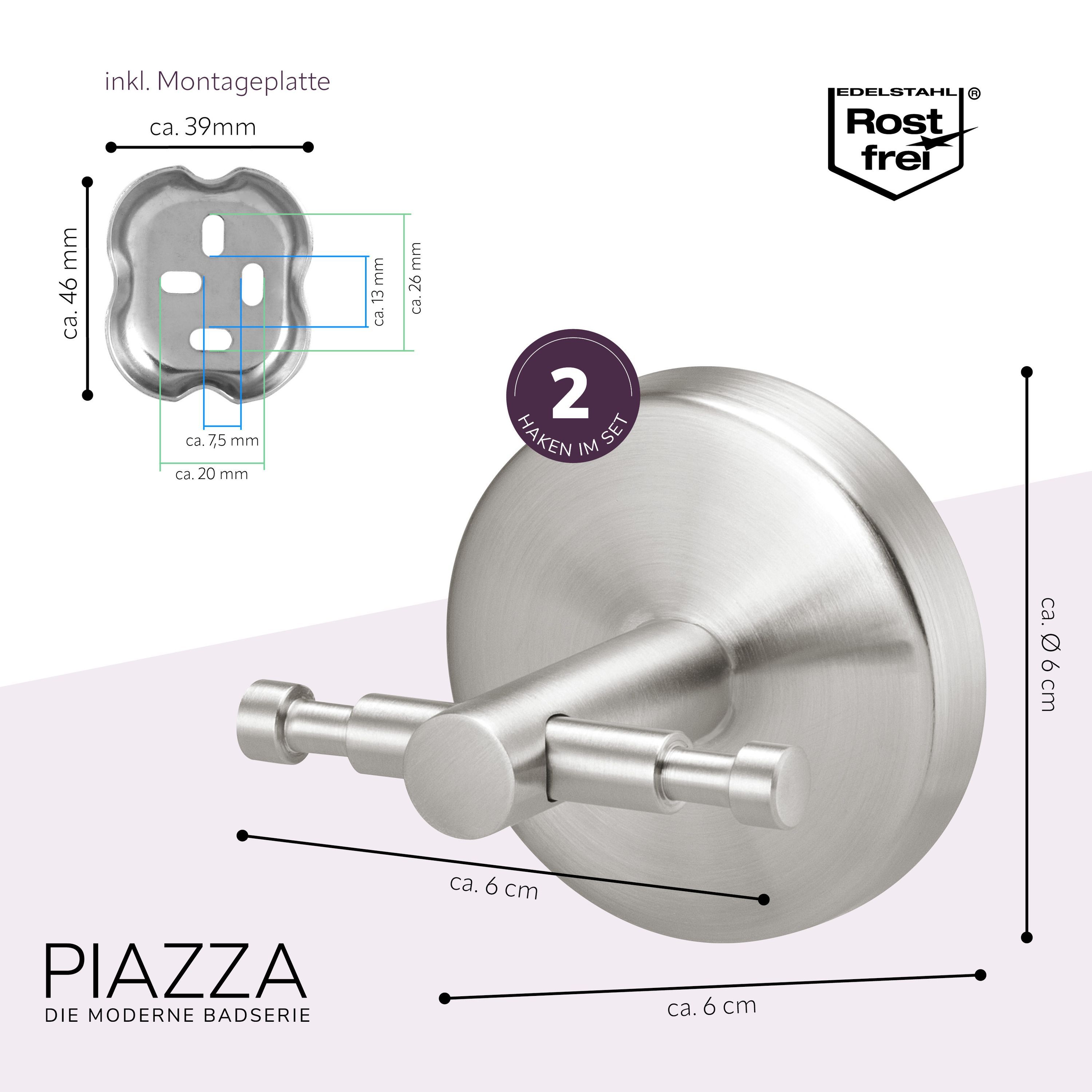 bremermann Bad-Serie PIAZZA - Handtuchhaken 2er Set, aus Edelstahl matt