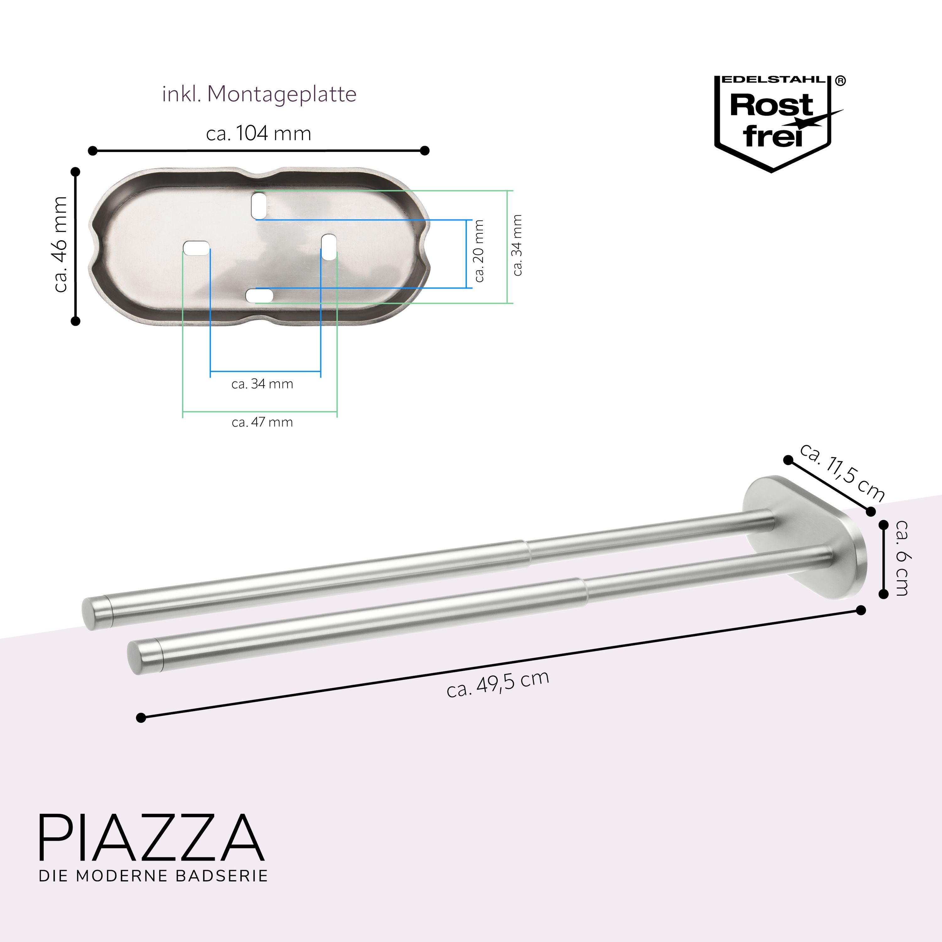 bremermann Bad-Serie PIAZZA - Handtuchhalter 2-armig, aus Edelstahl matt