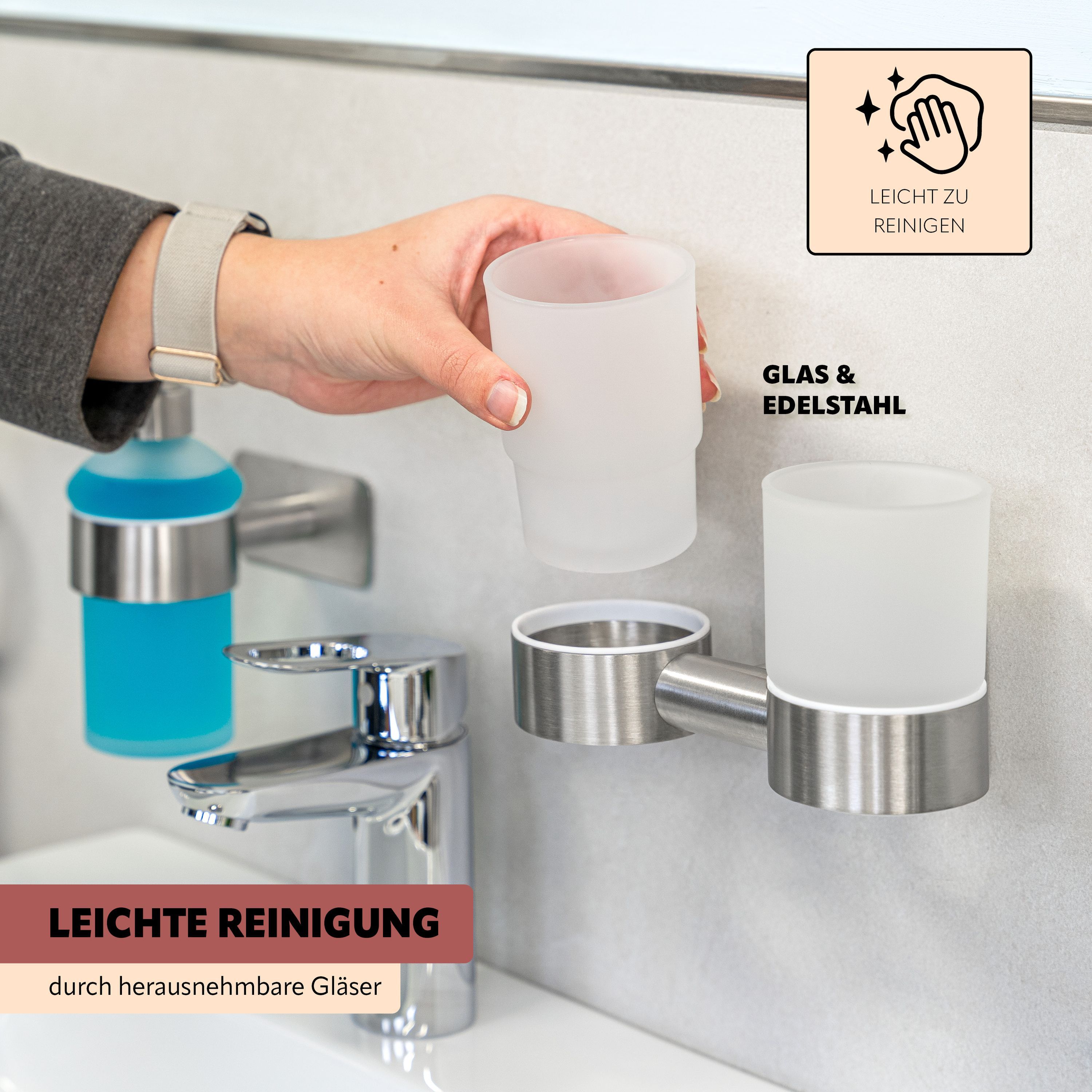 bremermann Bad-Serie PIAZZA TAPE - Doppel-Glasbecherhalter mit Klebepad