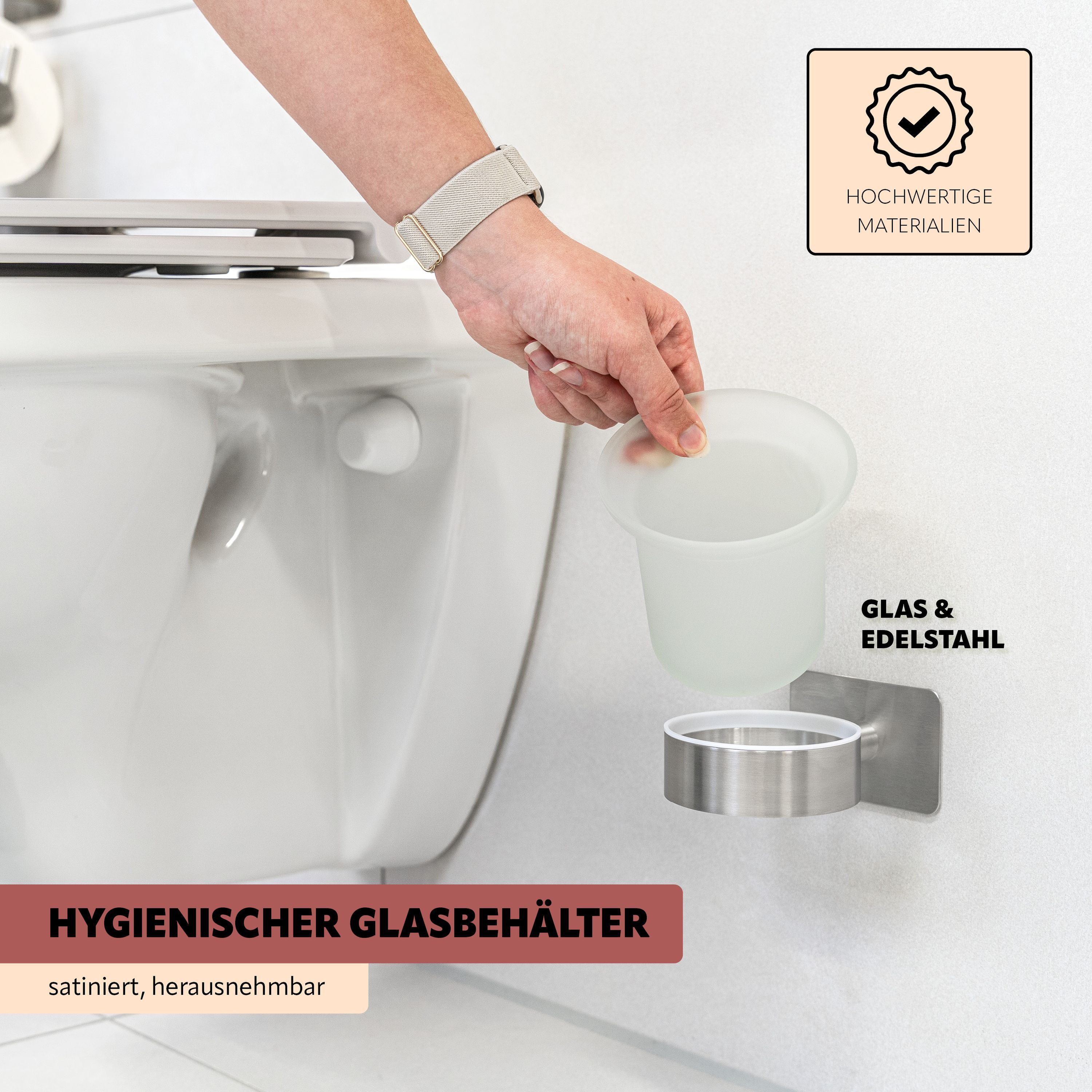 bremermann Bad-Serie PIAZZA TAPE - WC-Garnitur mit Klebepad, aus Edelstahl matt