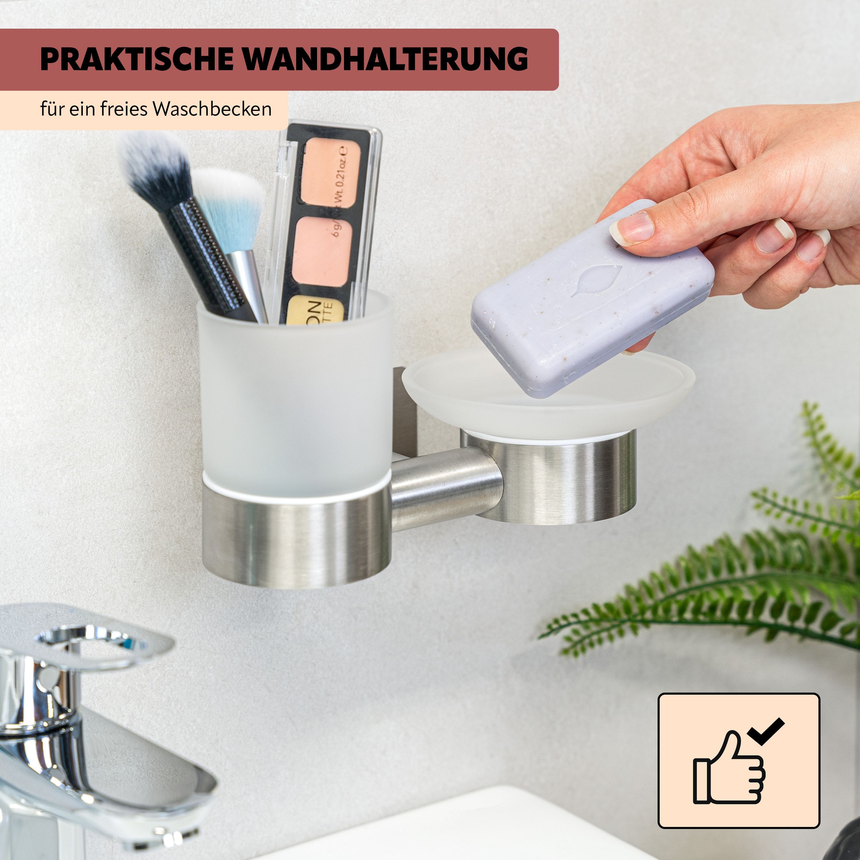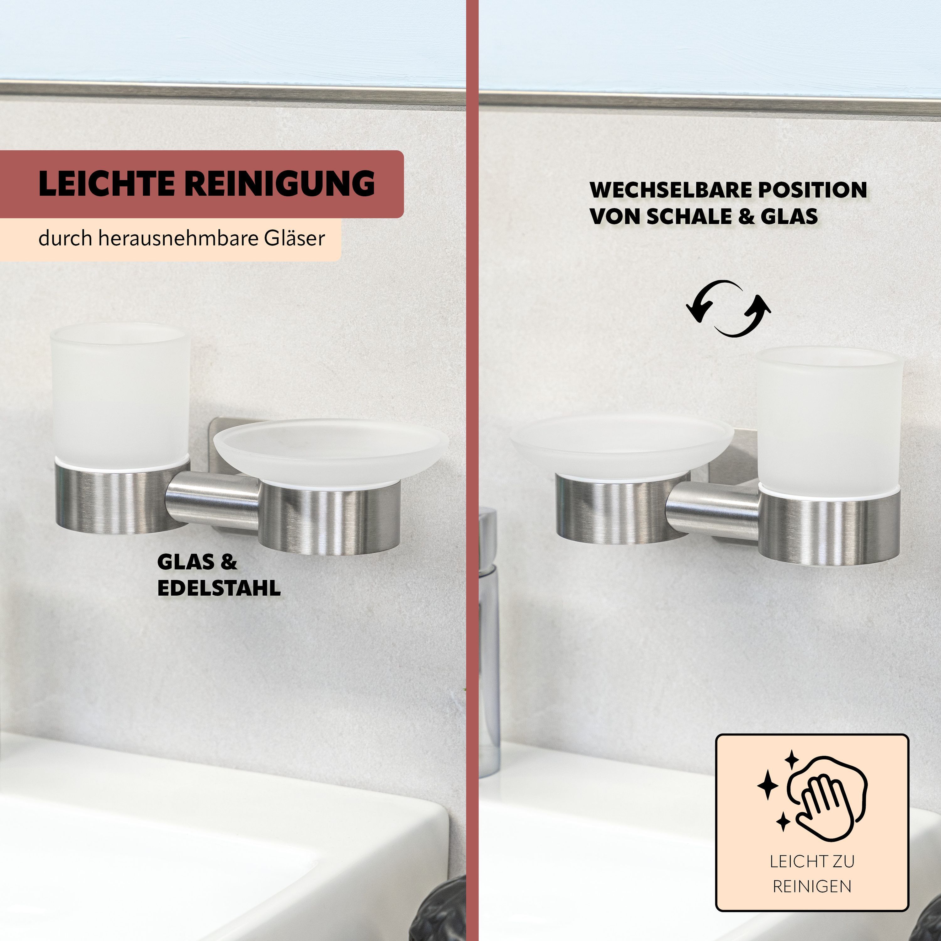 bremermann Bad-Serie PIAZZA TAPE - Zahnputzbecher und Seifenschale mit Klebepad