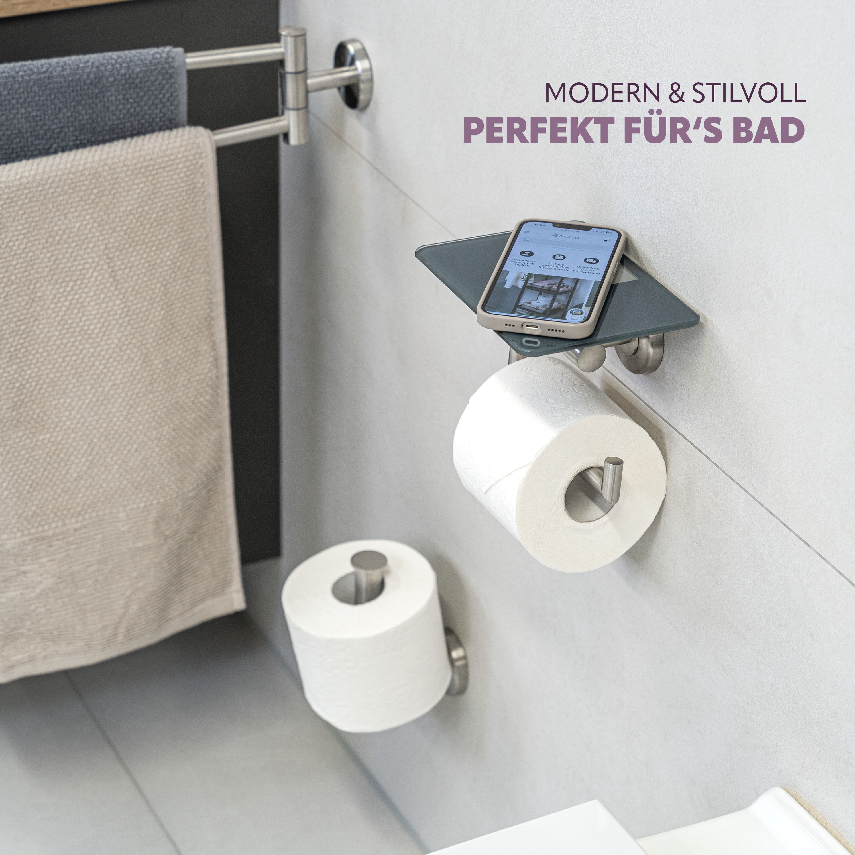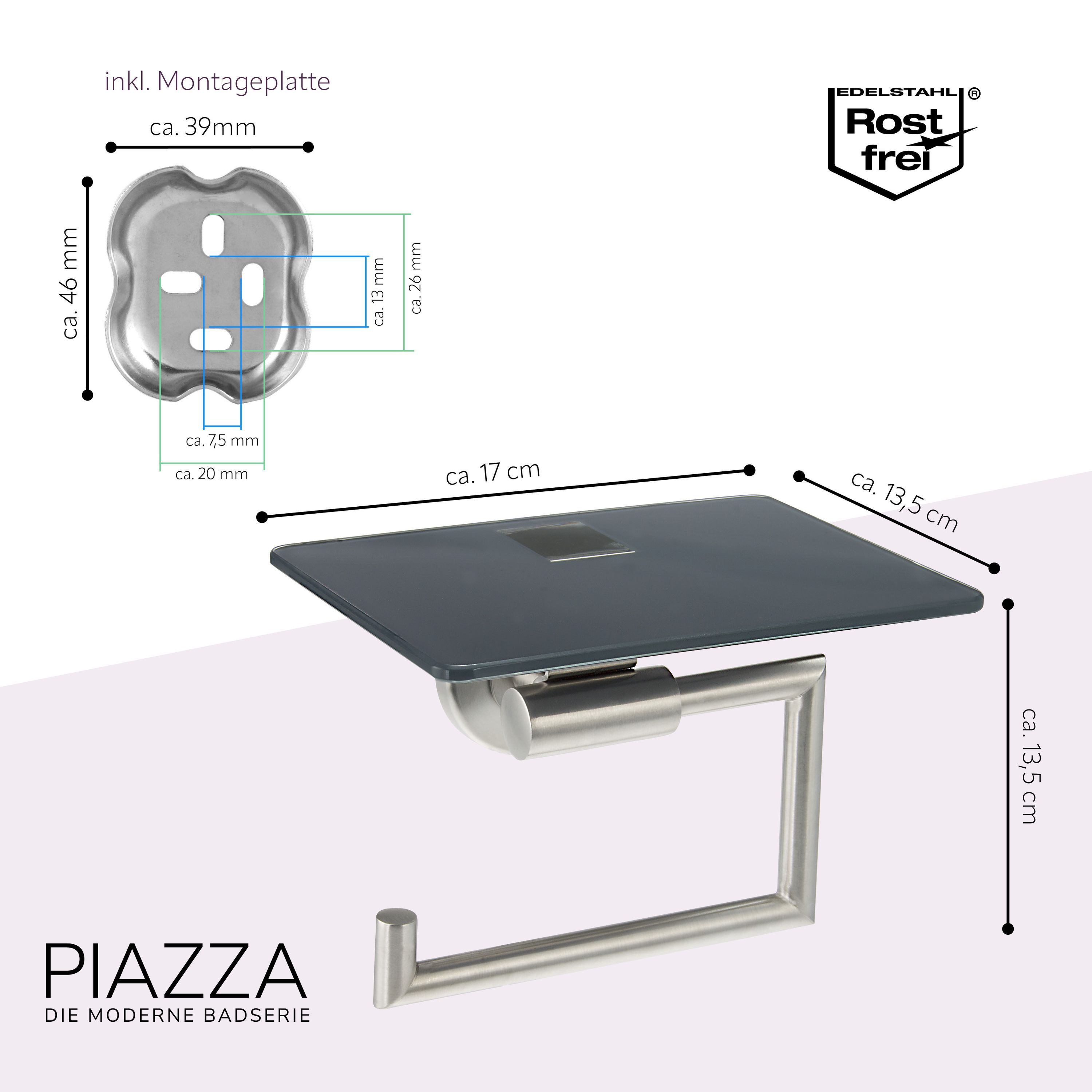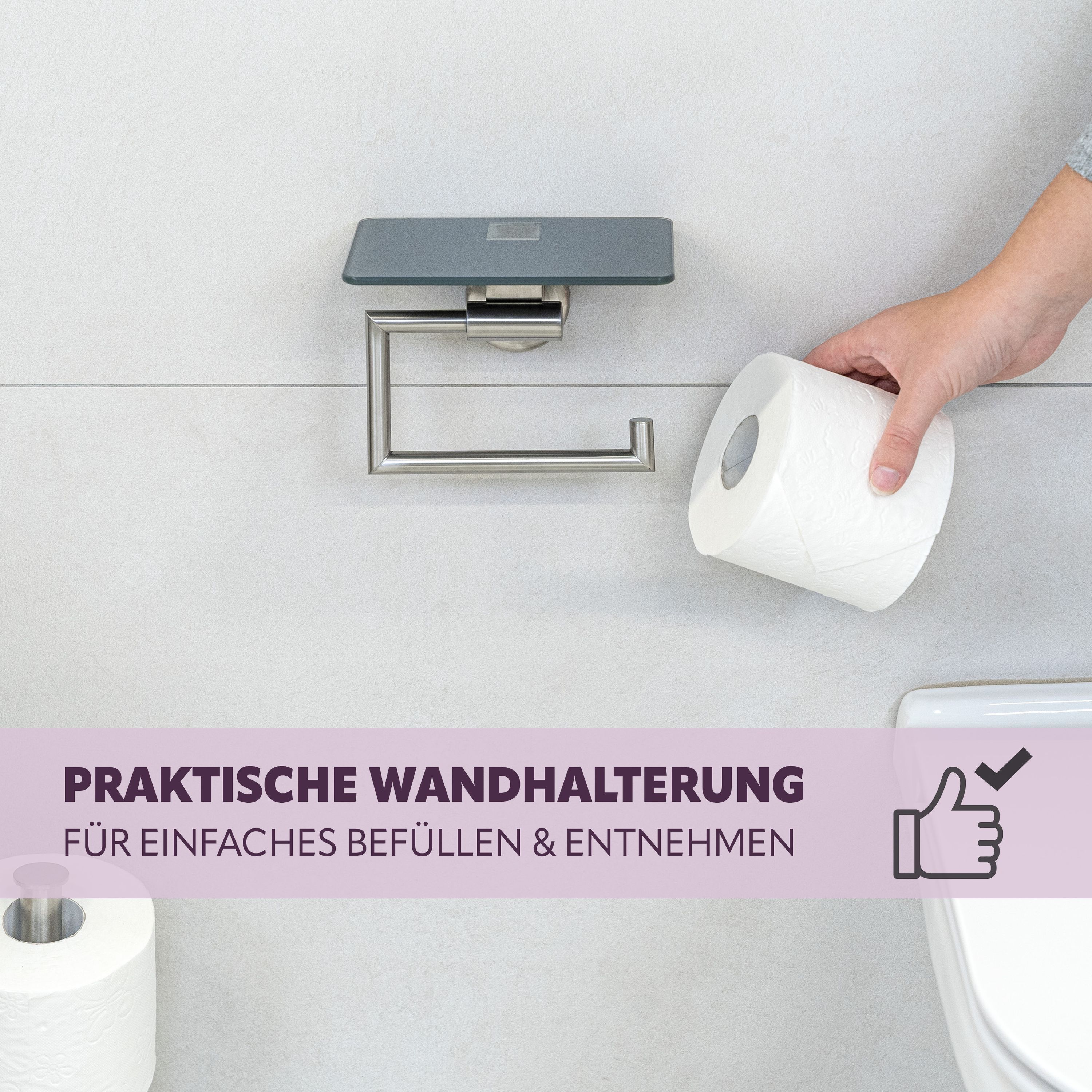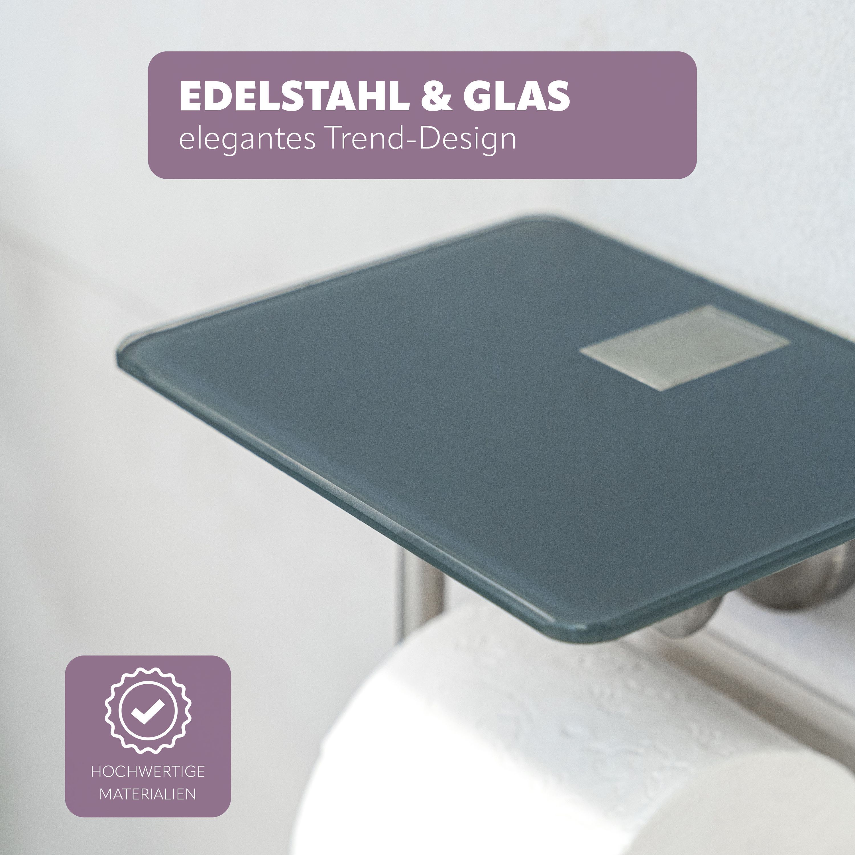 bremermann Bad-Serie PIAZZA - Toilettenpapierhalter mit Glasablage und Edelstahl