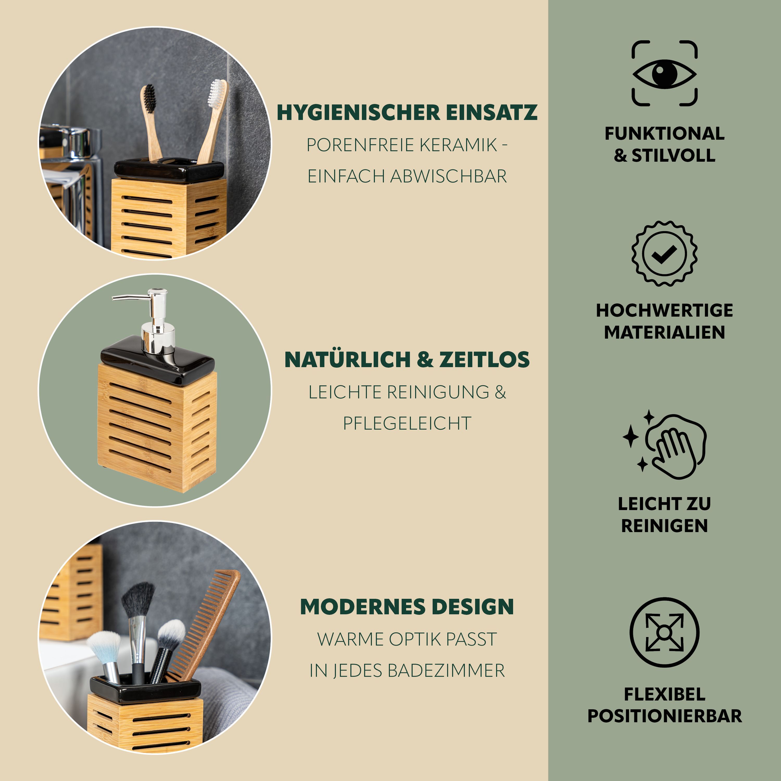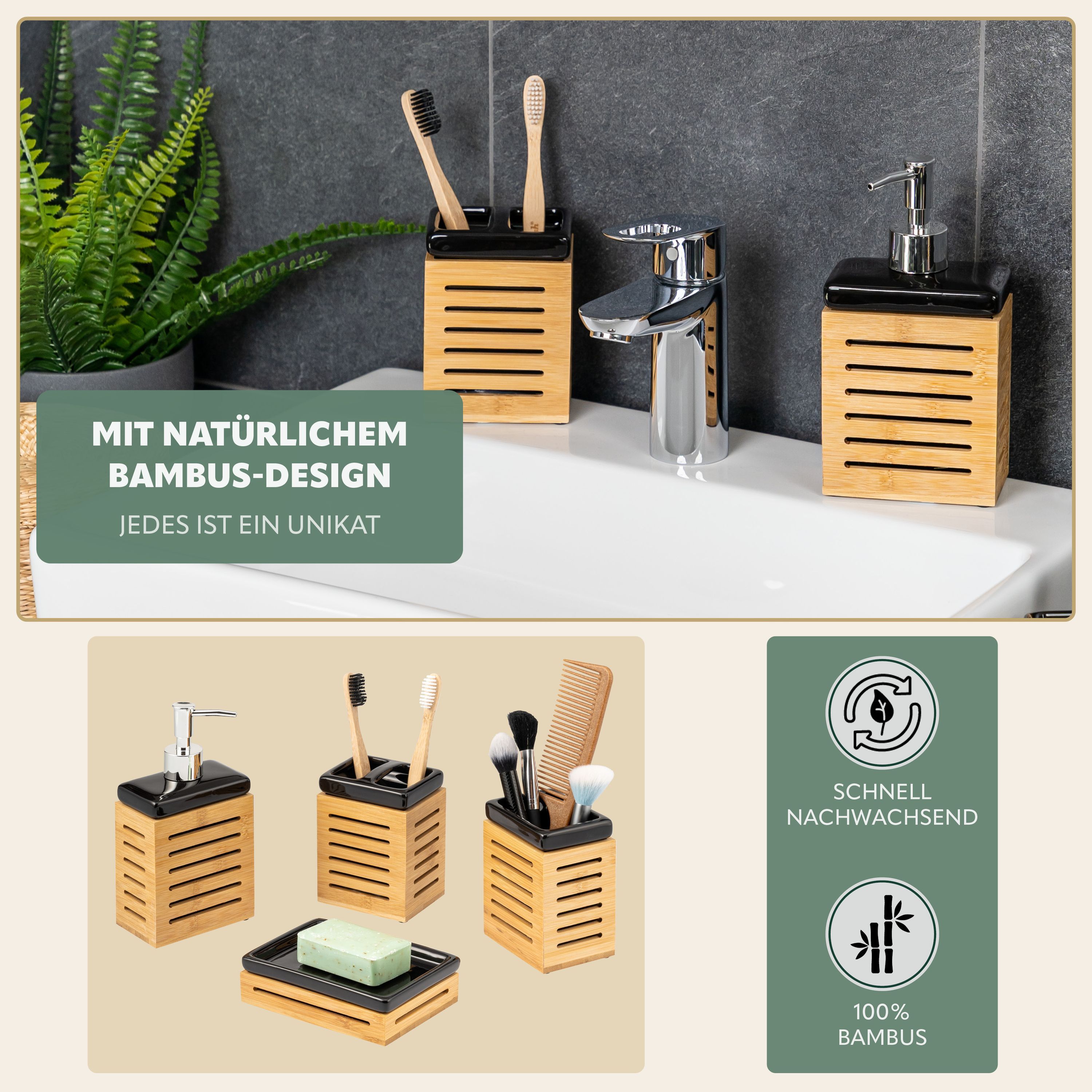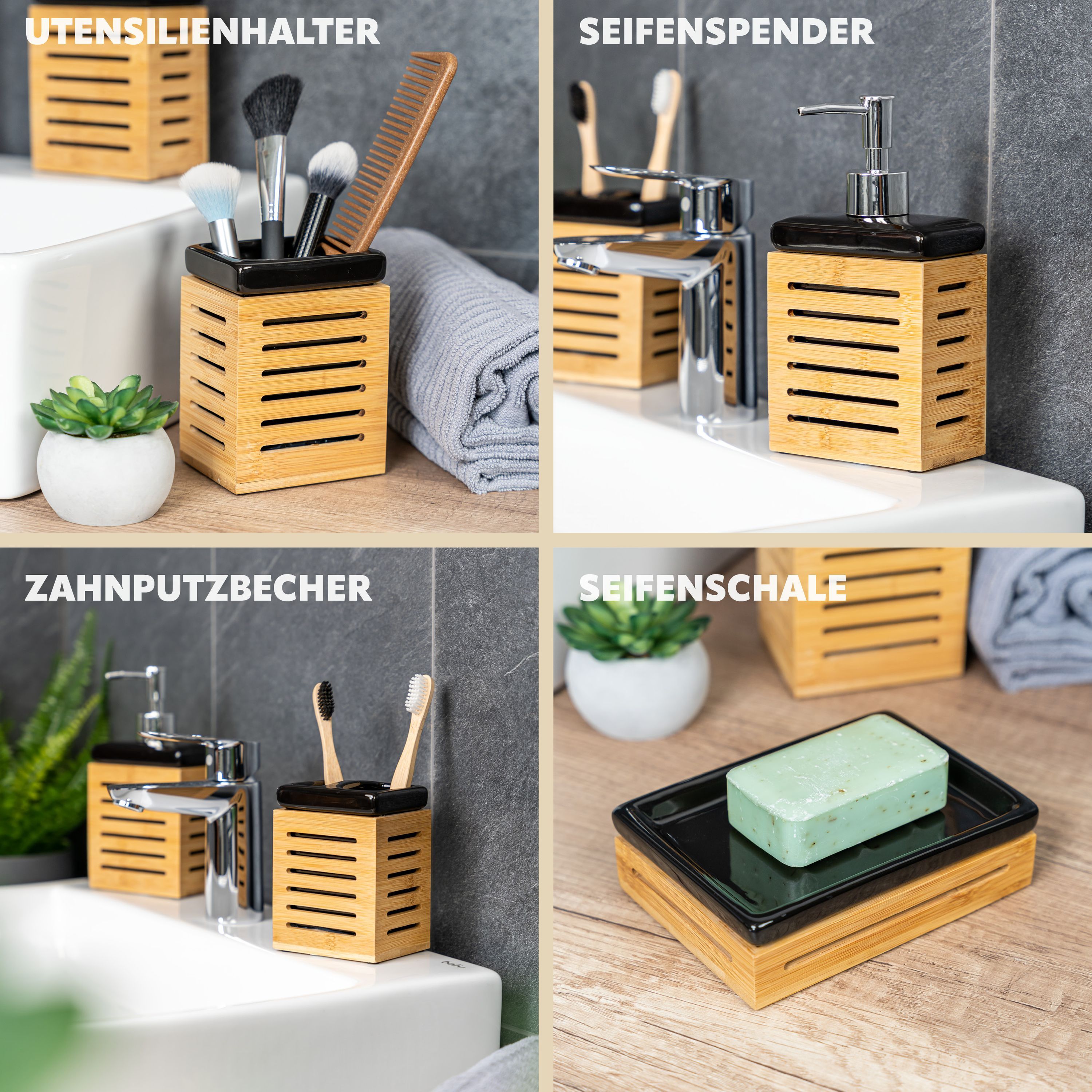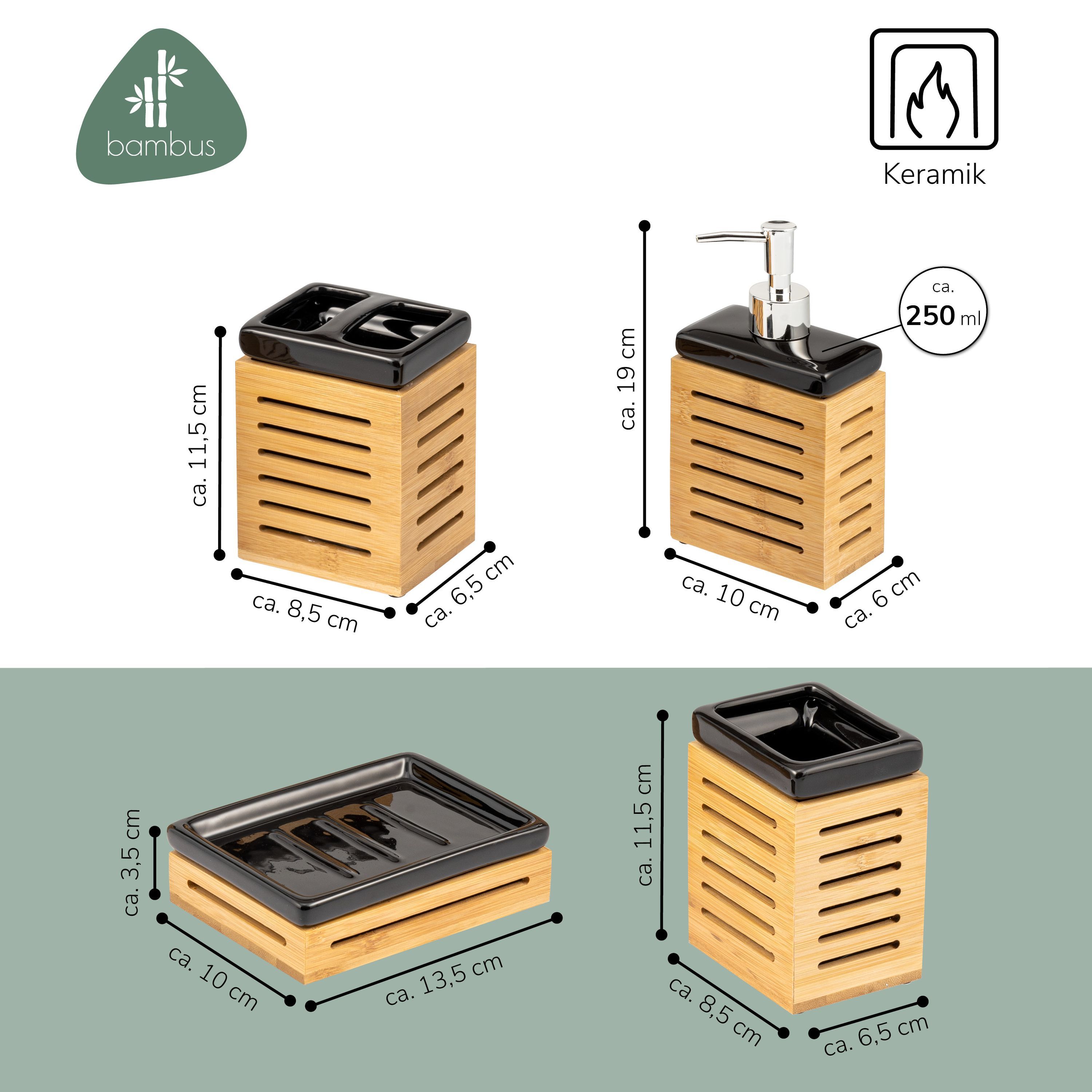 bremermann Badezimmer-Set 4-tlg., Bambus, Keramik, schwarz, Badezimmer-Zubehör