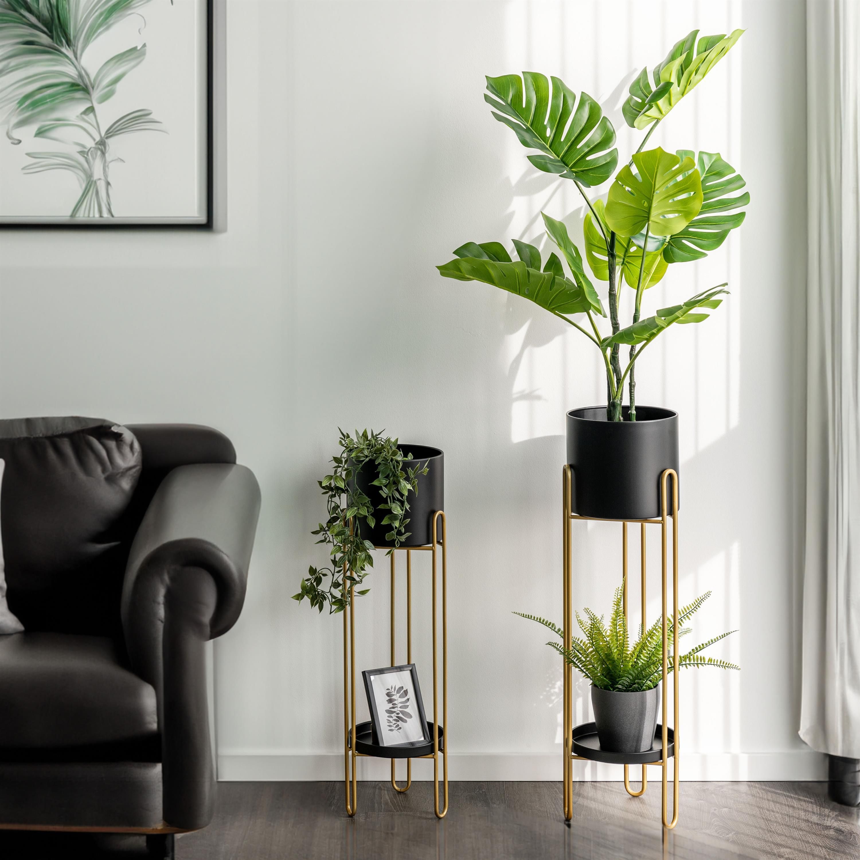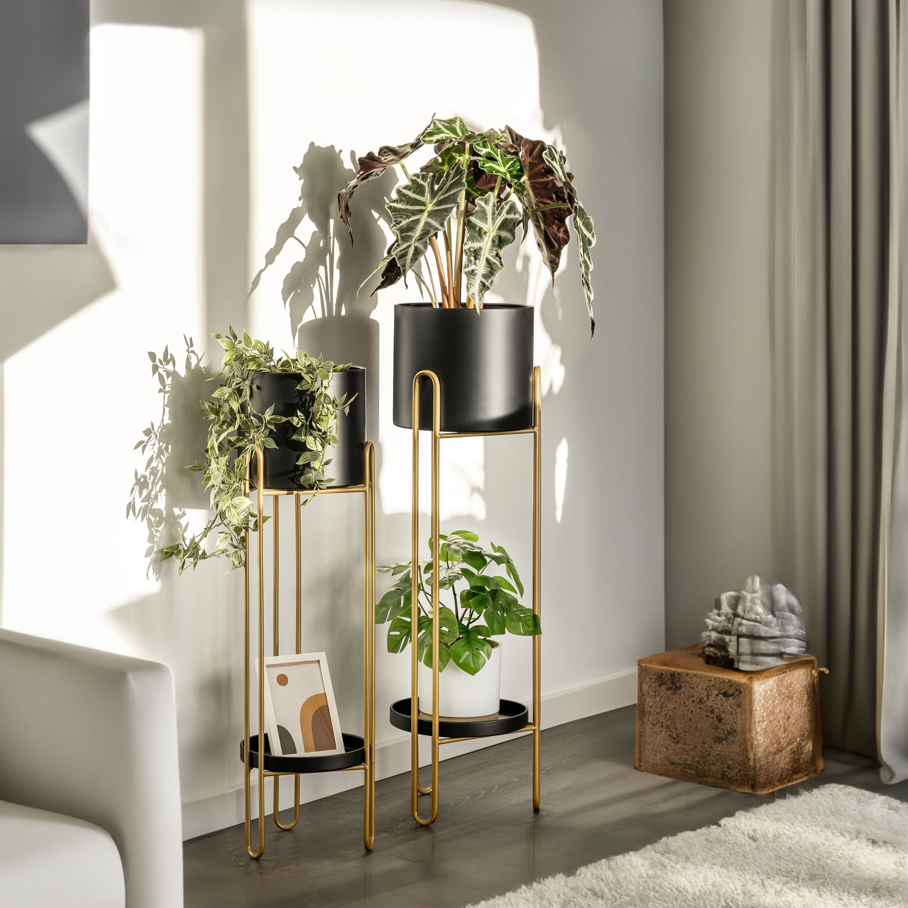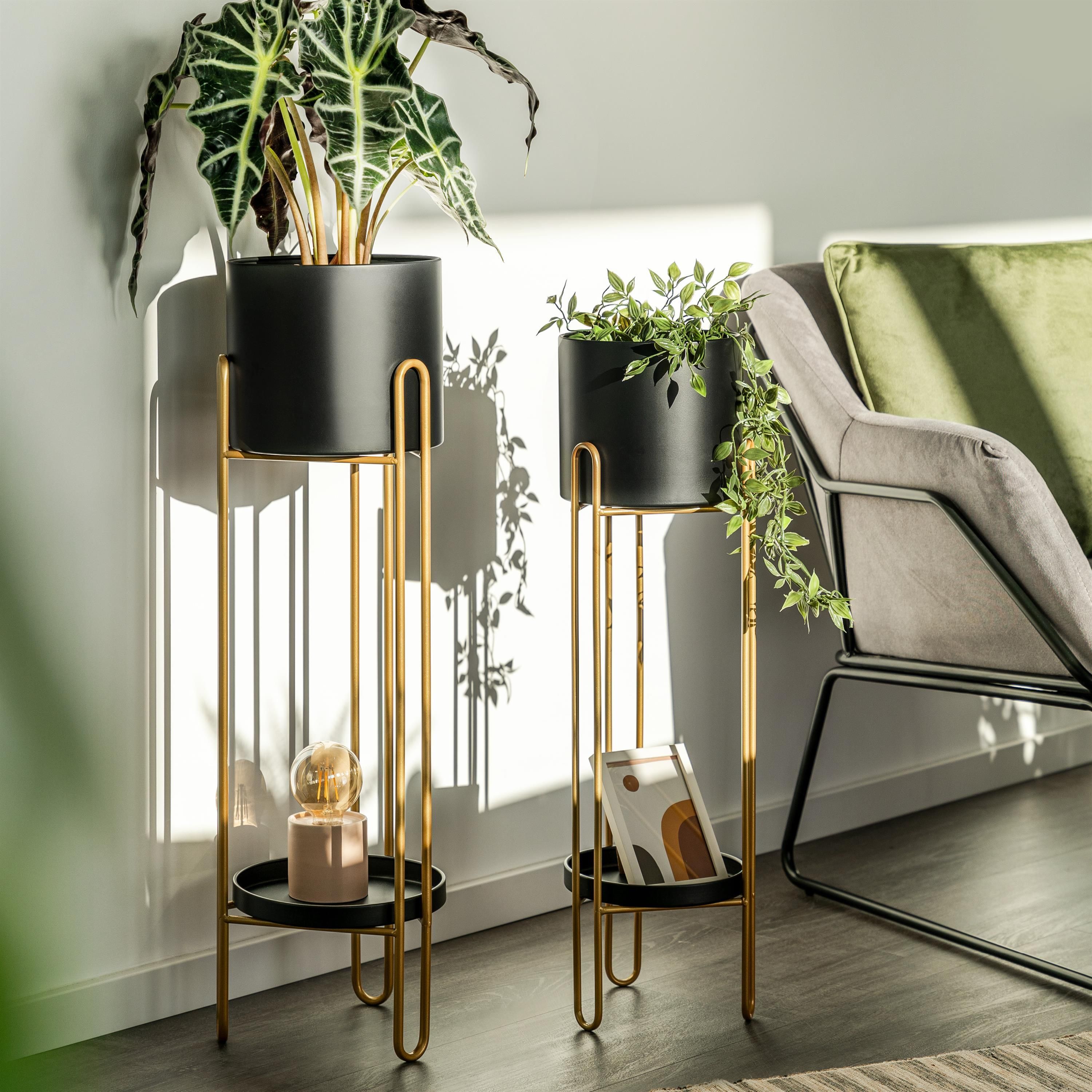 bremermann Blumenhocker 2er-Set, Metall-Blumenständer, Blumensäule schwarz/gold
