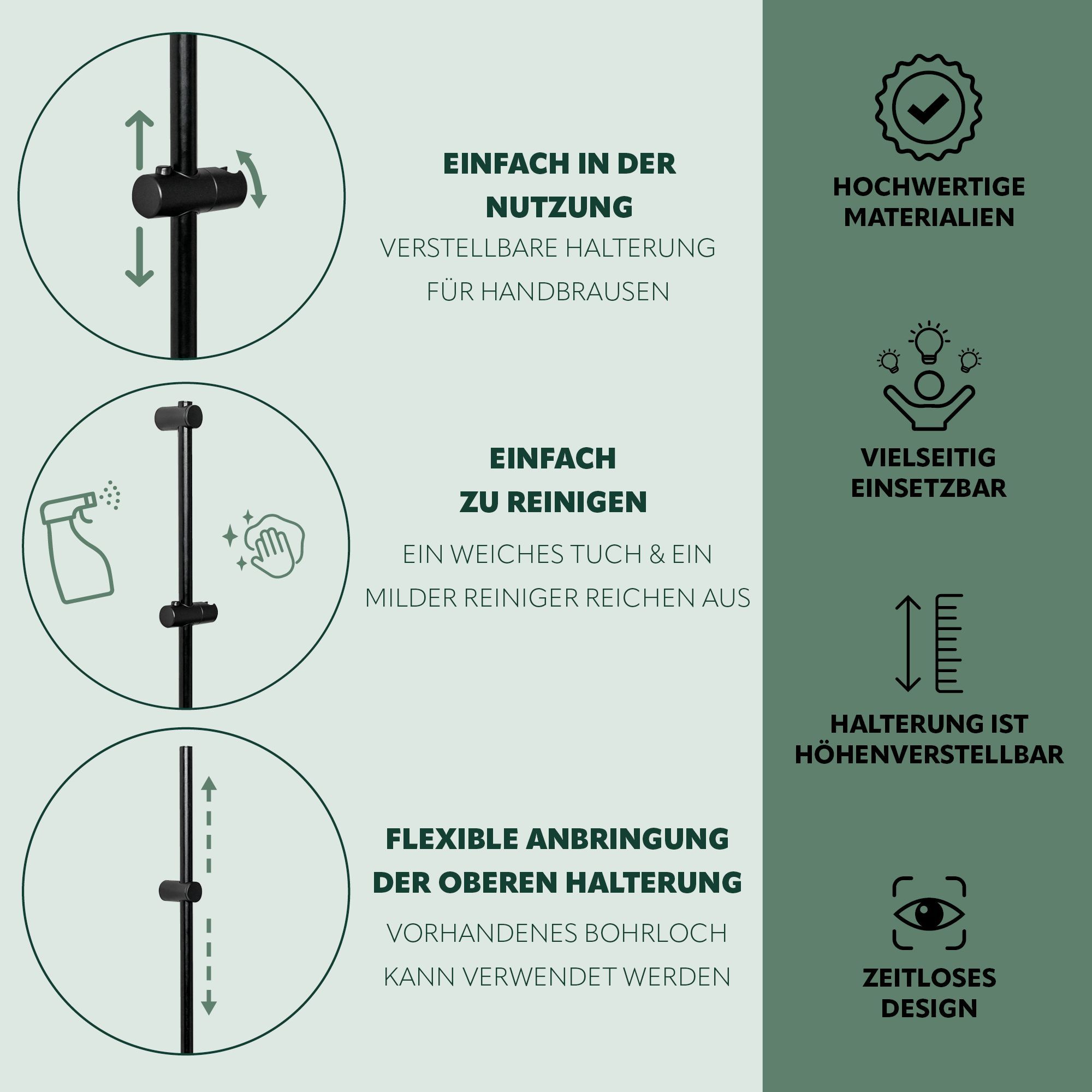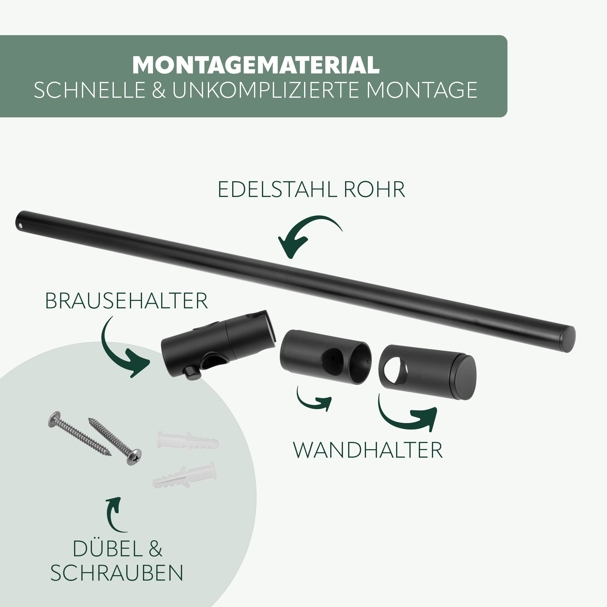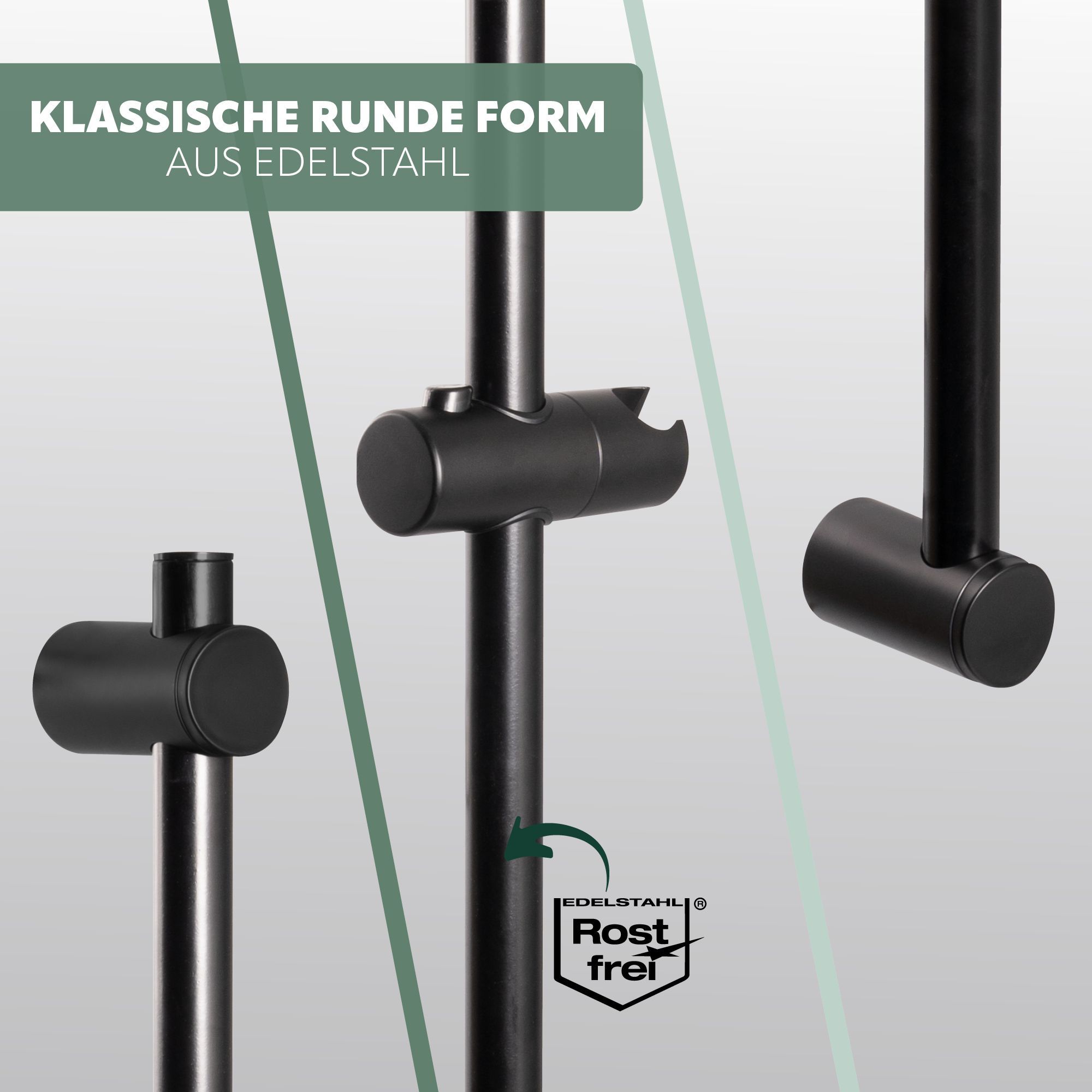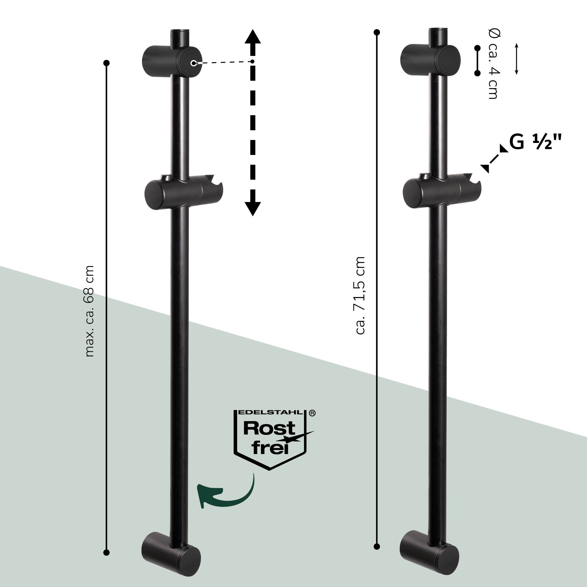 bremermann Brausestange Edelstahl 71,5 cm – inkl. Konus-Brausegleiter, schwarz