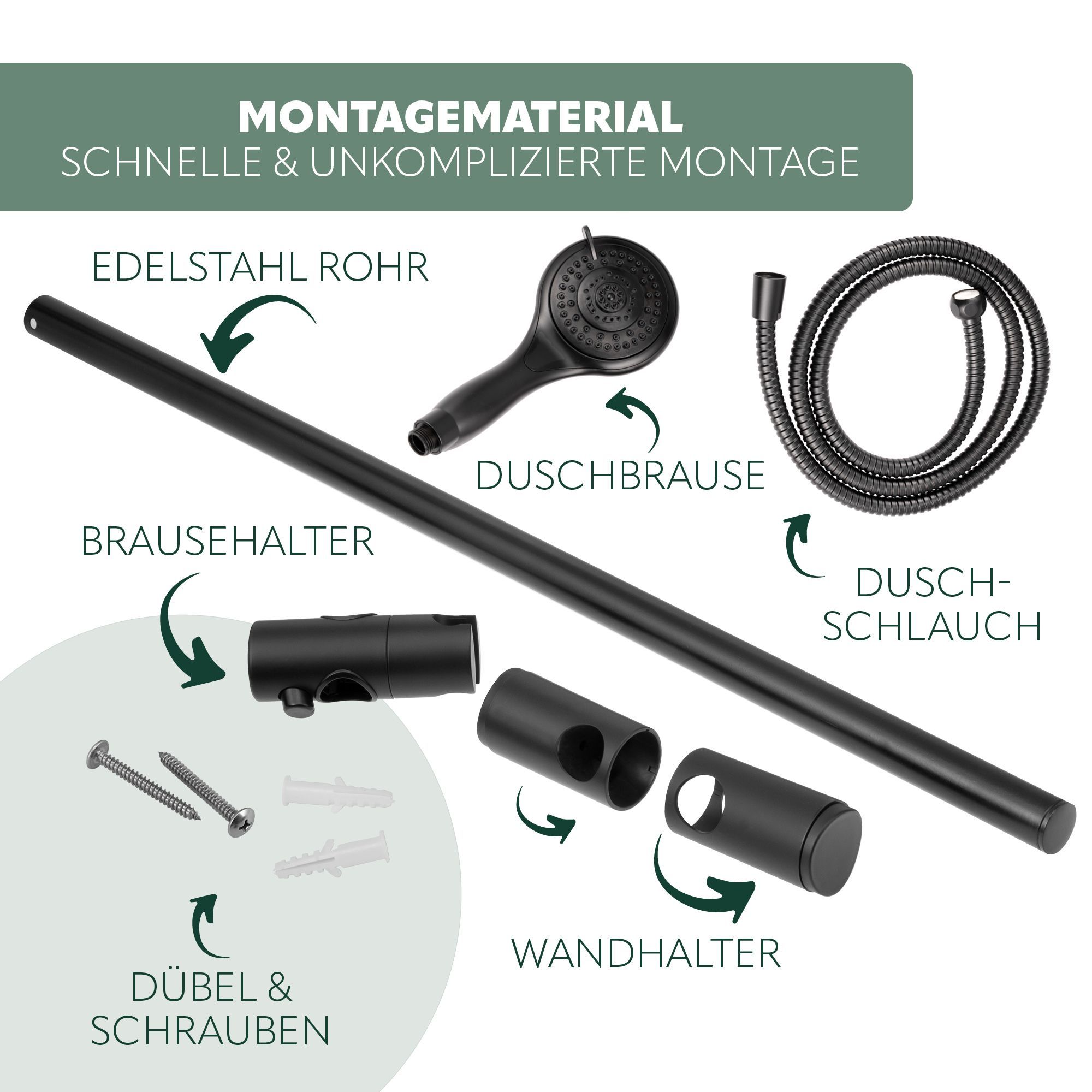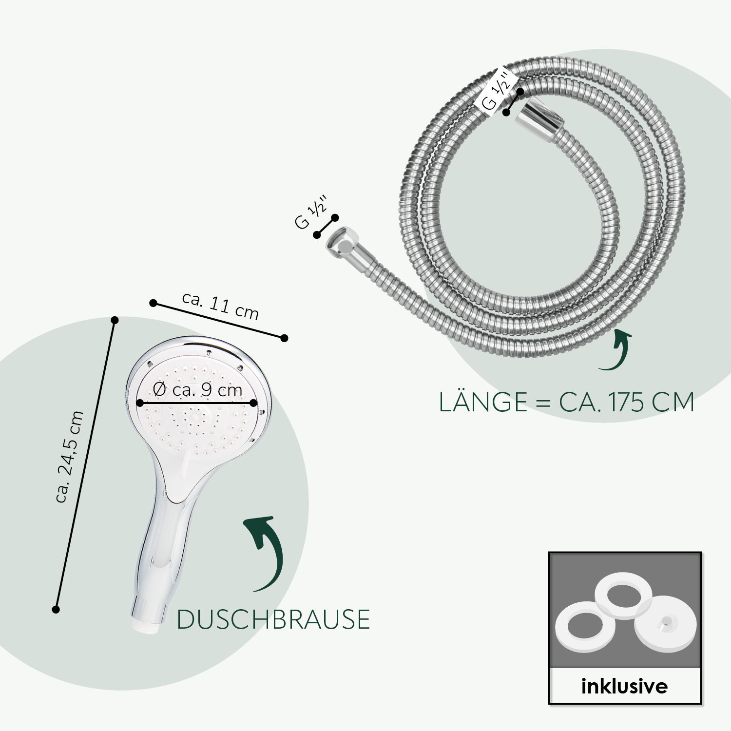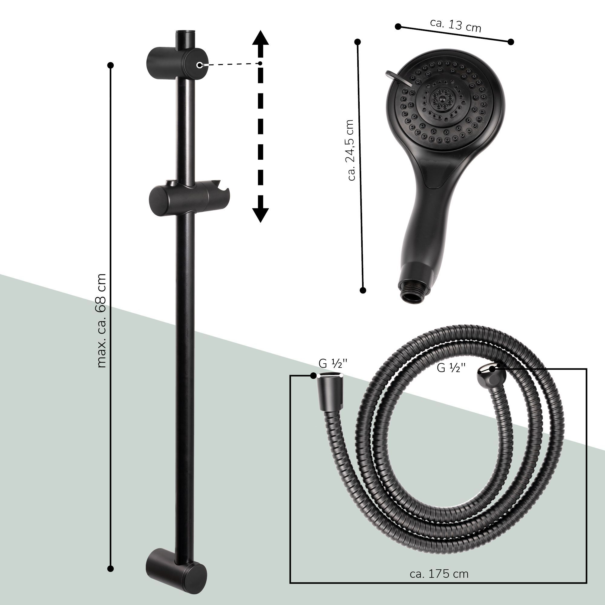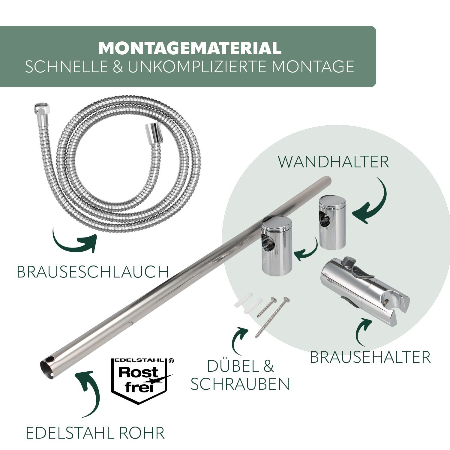 bremermann Brausestangenset, inkl. Brause, Edelstahl Brauseschlauch 1,75 m
