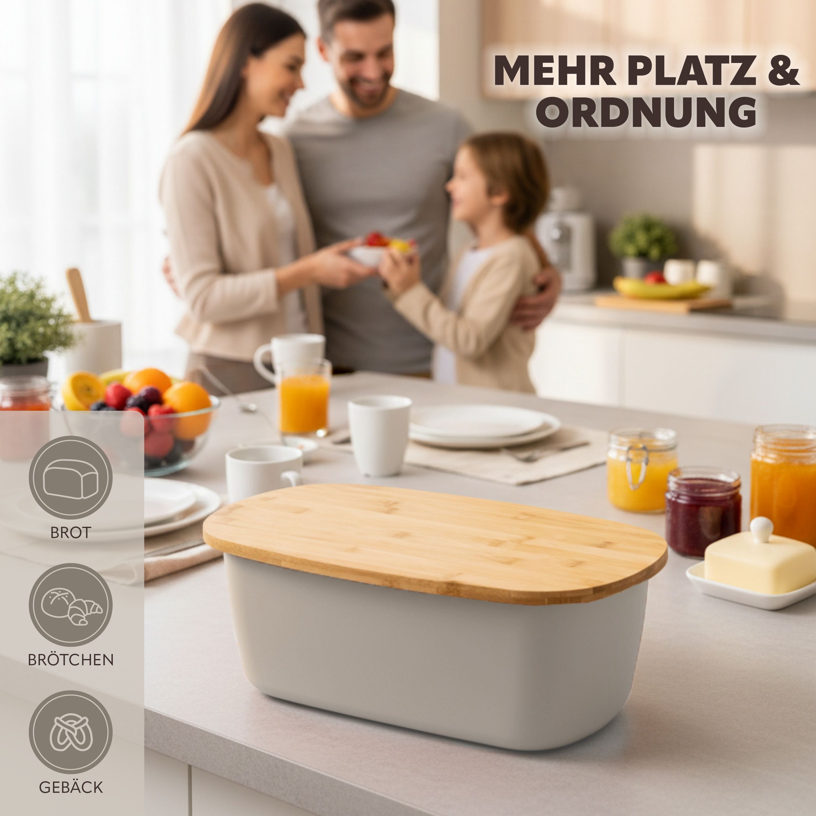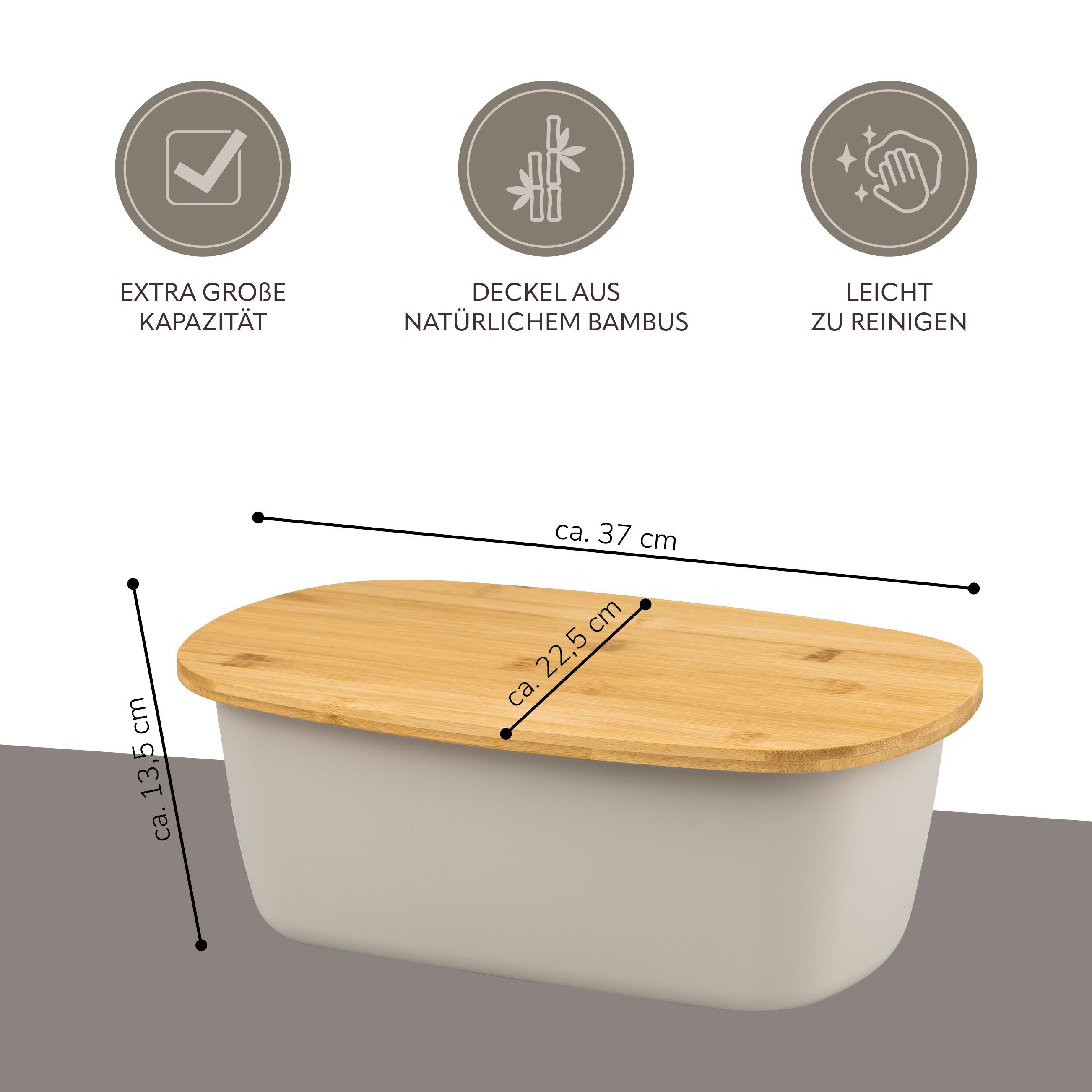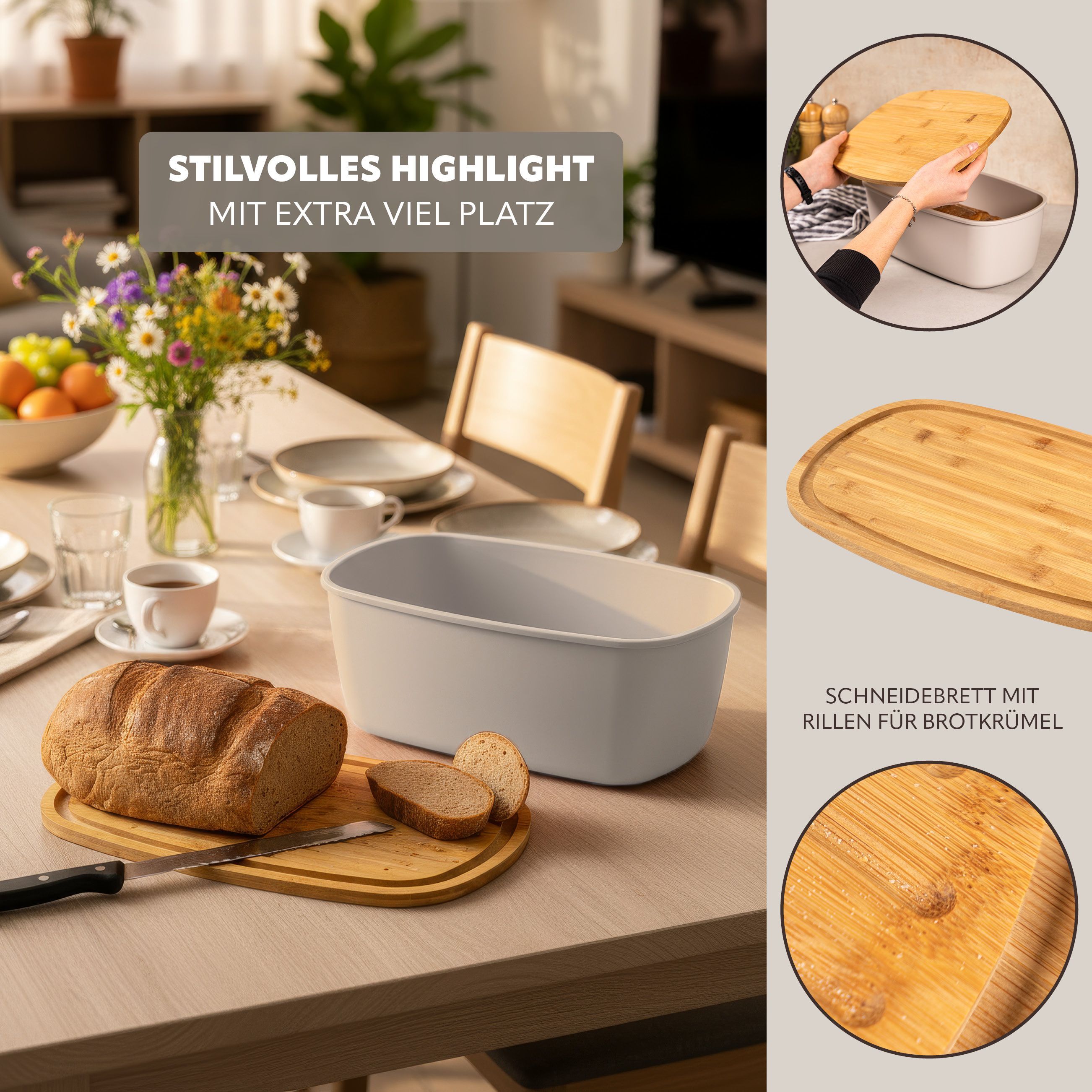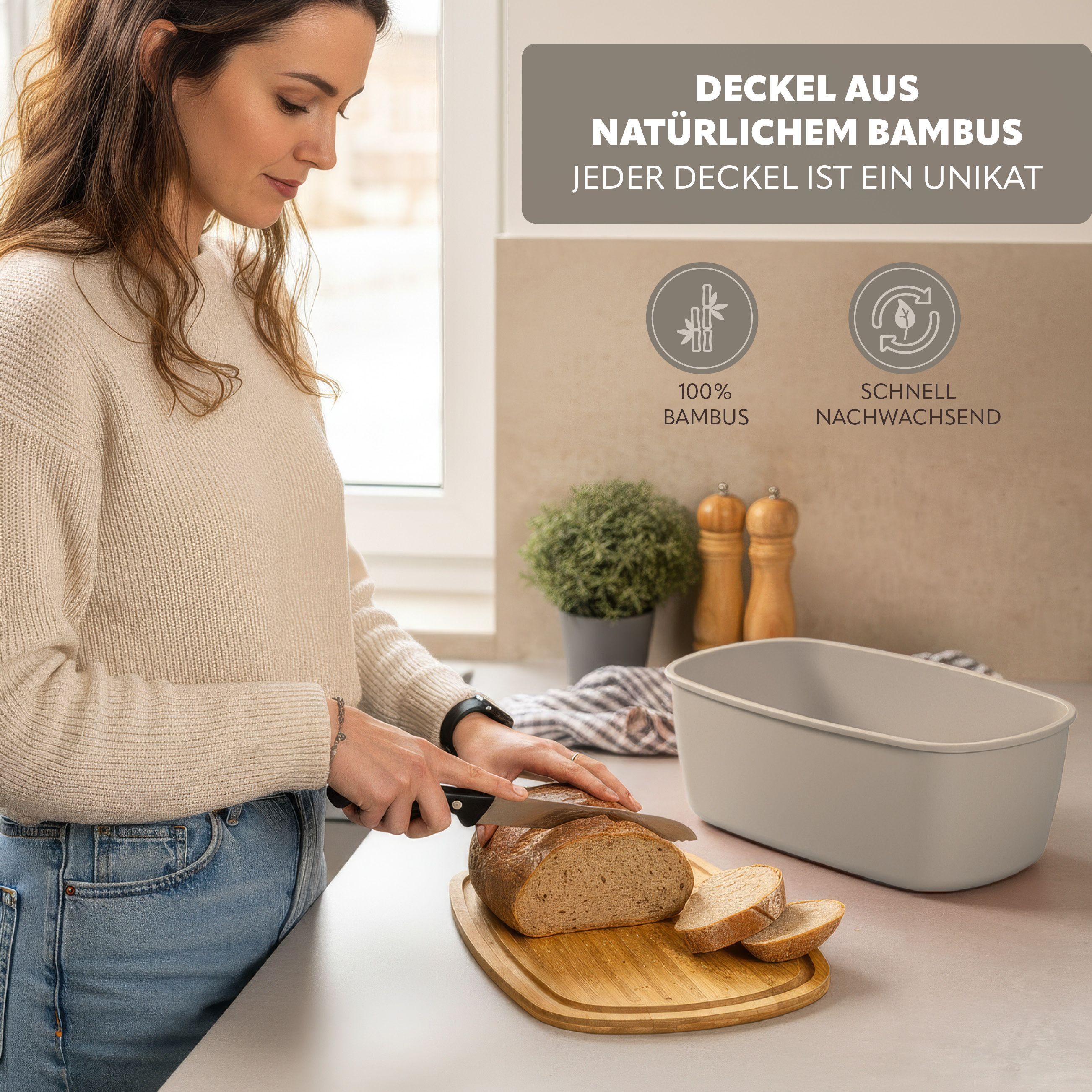 bremermann Brotkasten mit Bambus-Deckel, Brotbox | Schneidebrett, Brottopf, grau