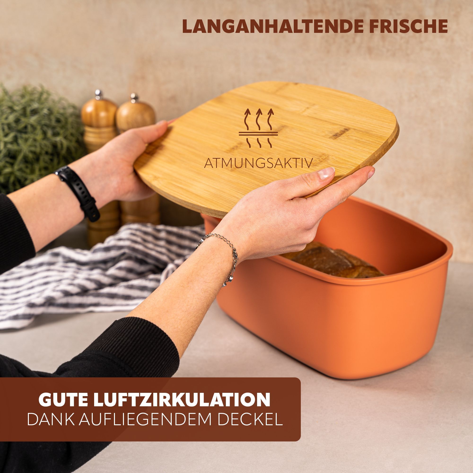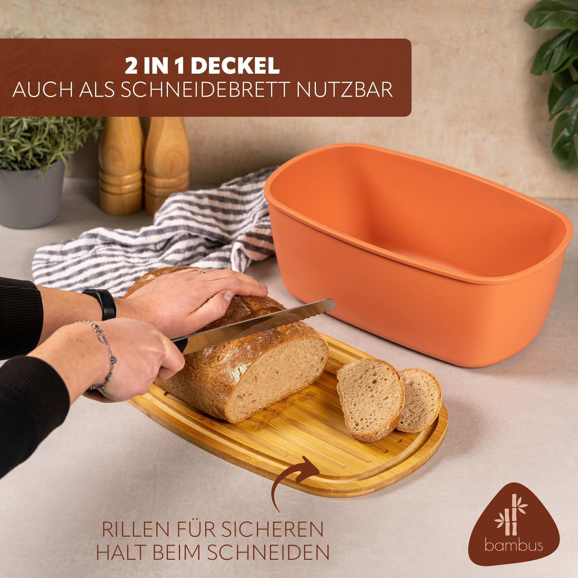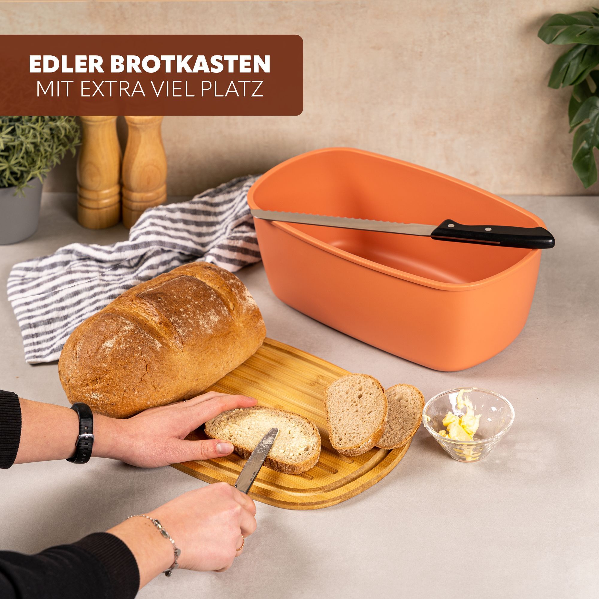bremermann Brotkasten mit Bambus-Deckel, Schneidebrett, Brottopf, rotbraun