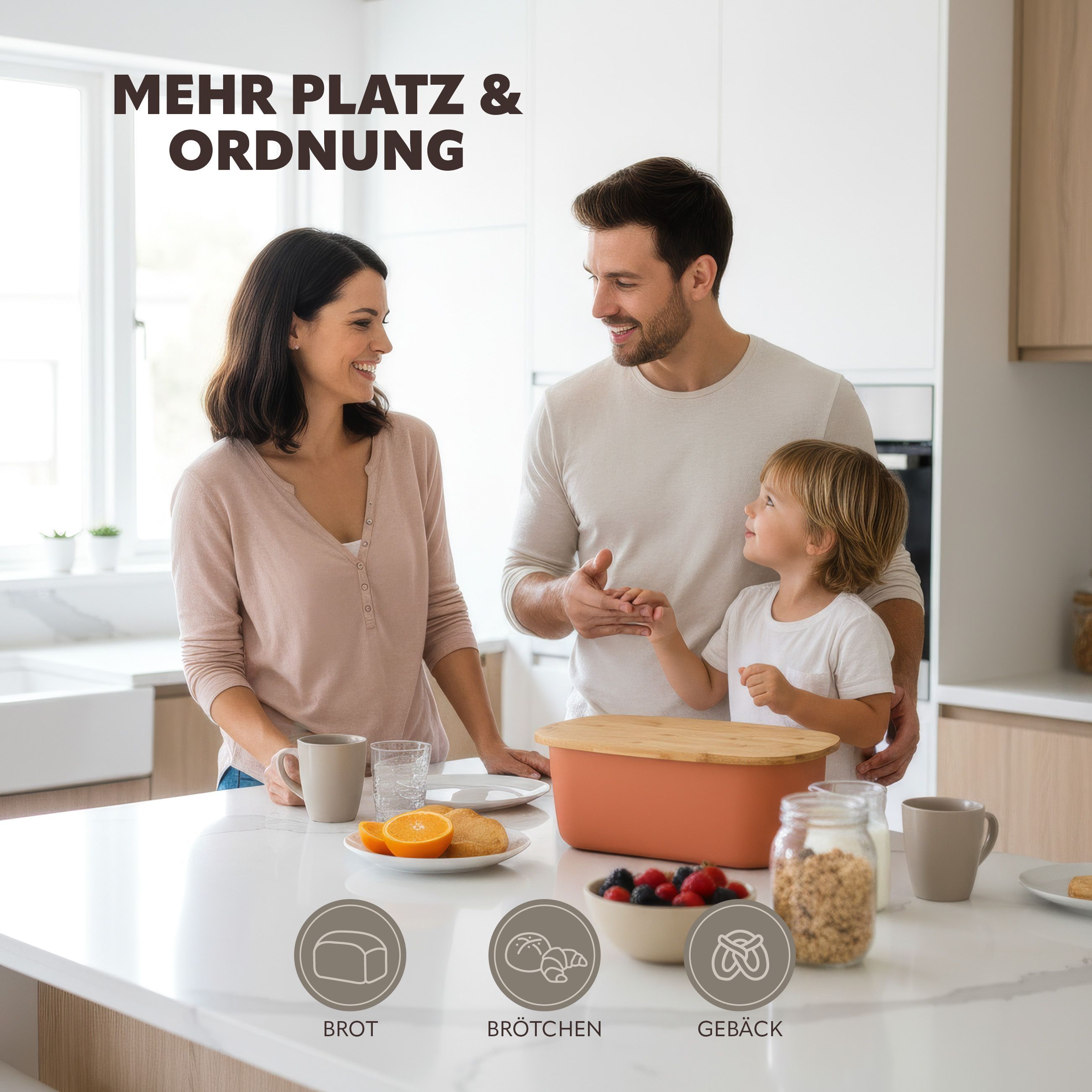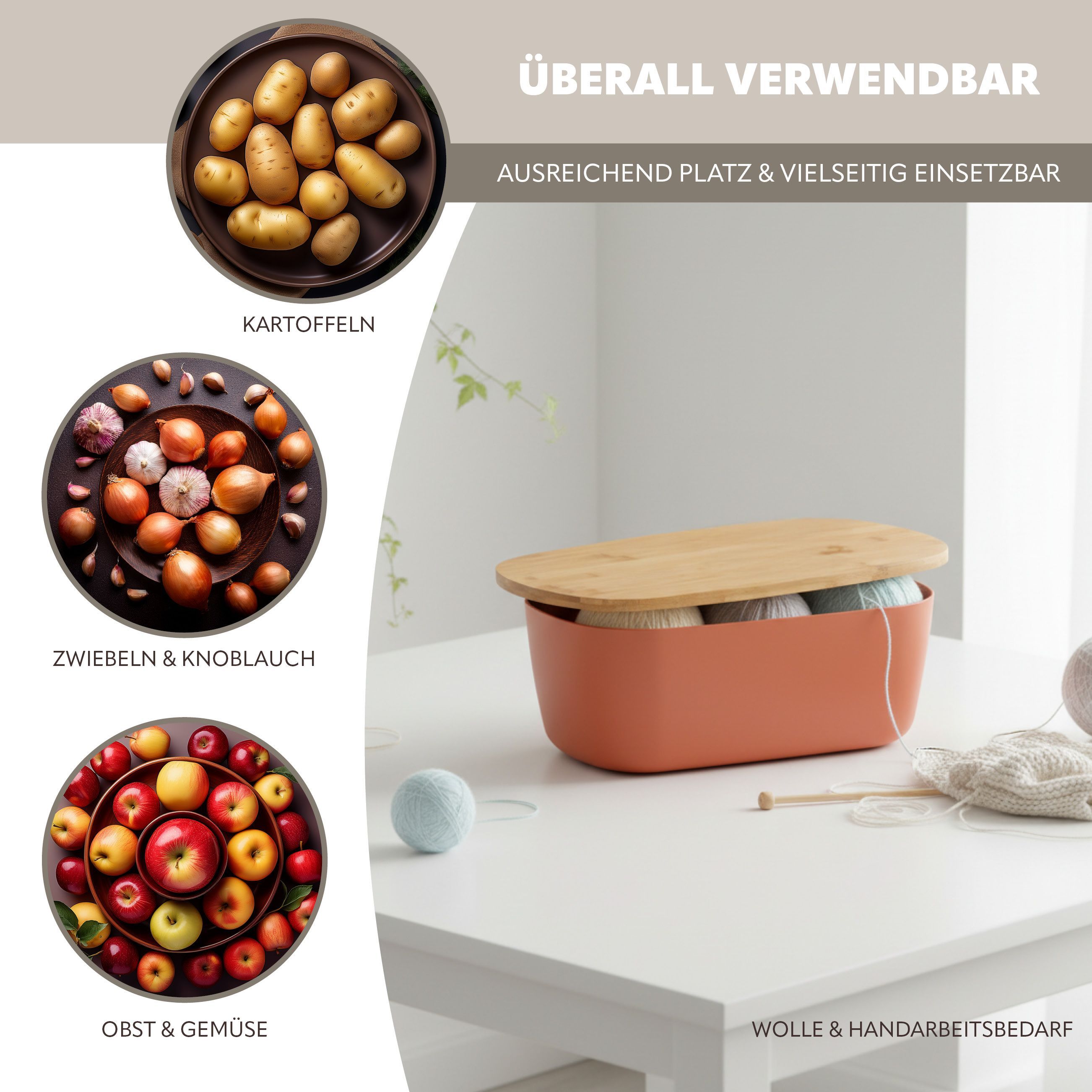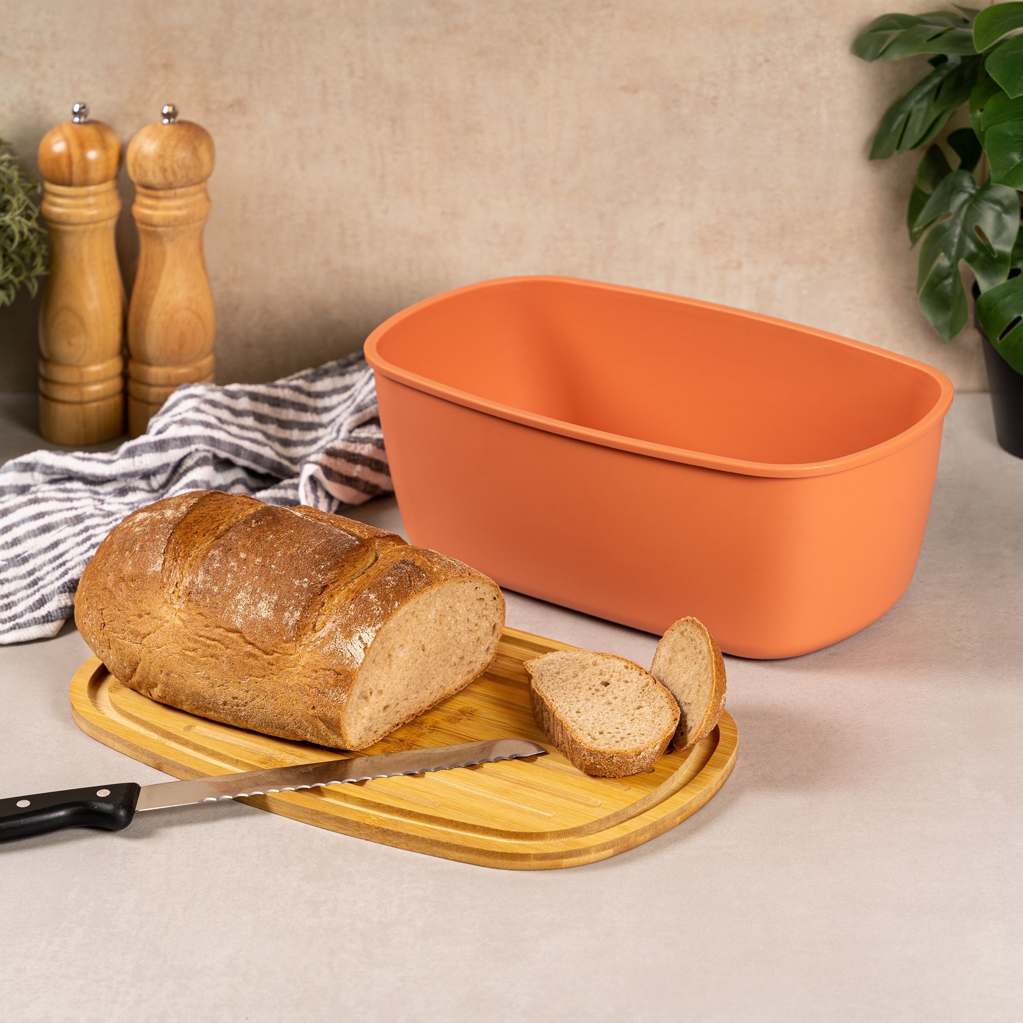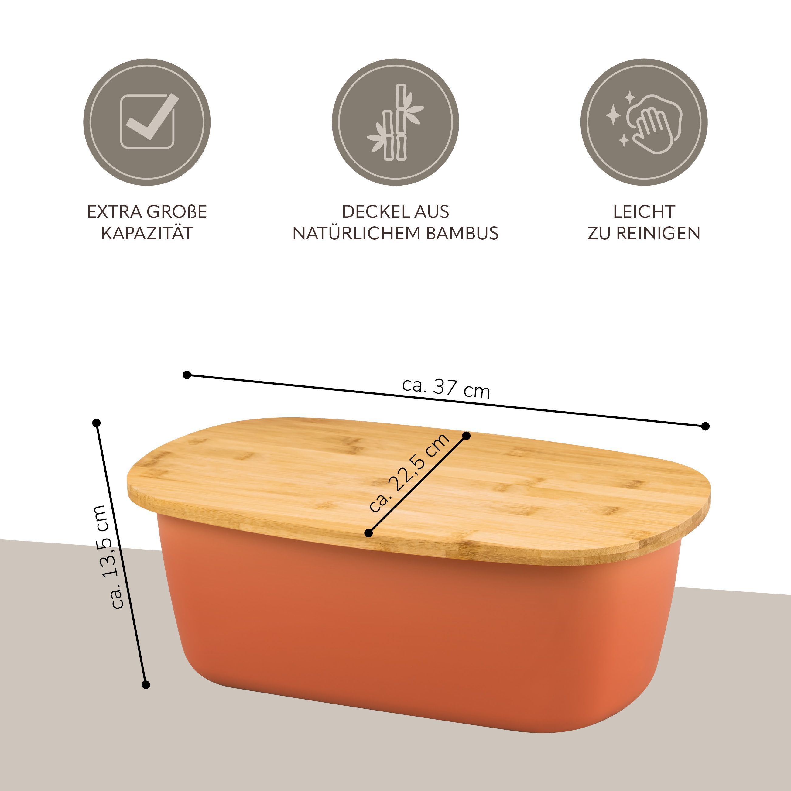 bremermann Brotkasten mit Bambus-Deckel, Schneidebrett, Brottopf, rotbraun