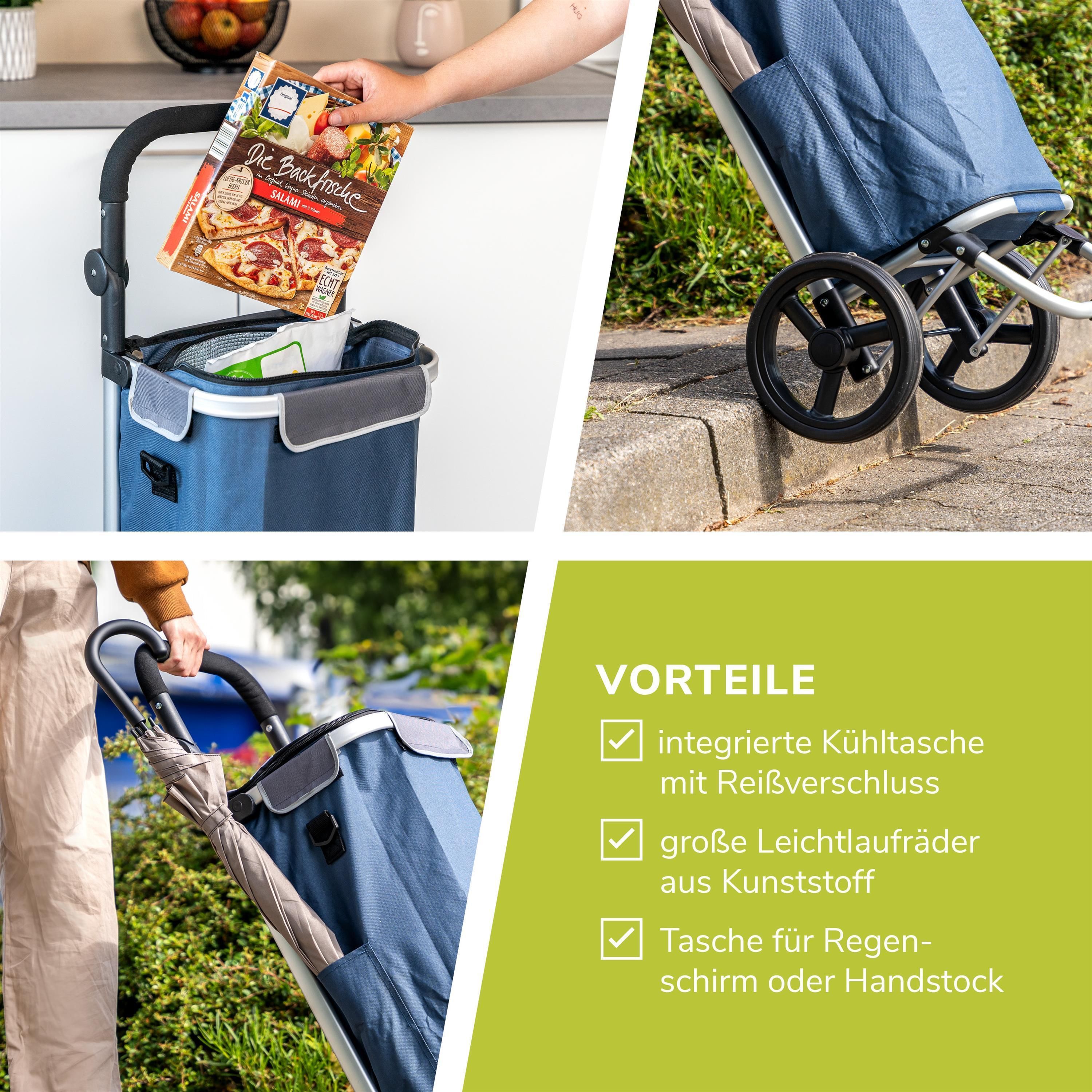 bremermann Einkaufstrolley JEEBEL, Einkaufswagen, Griff verstellbar, Tasche blau