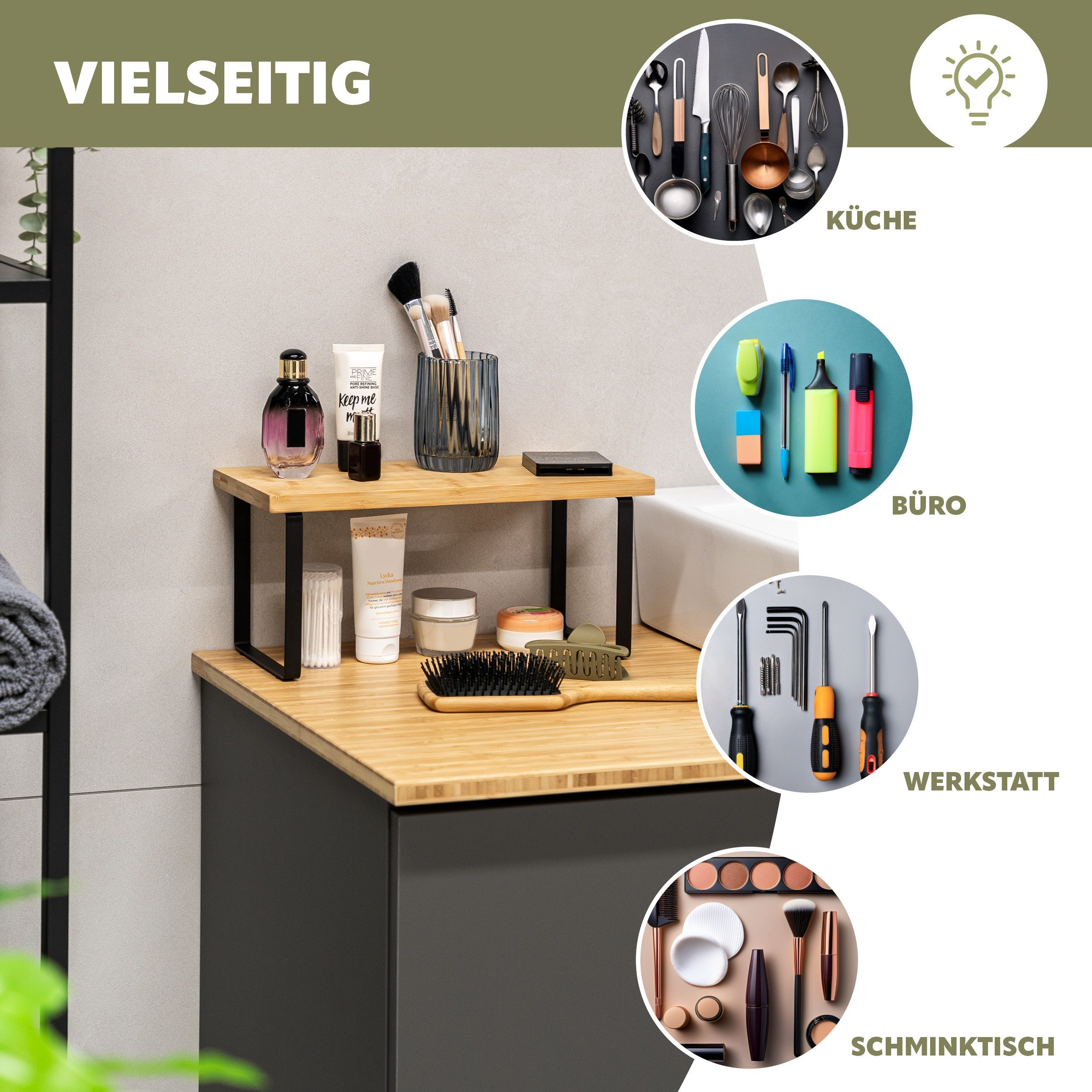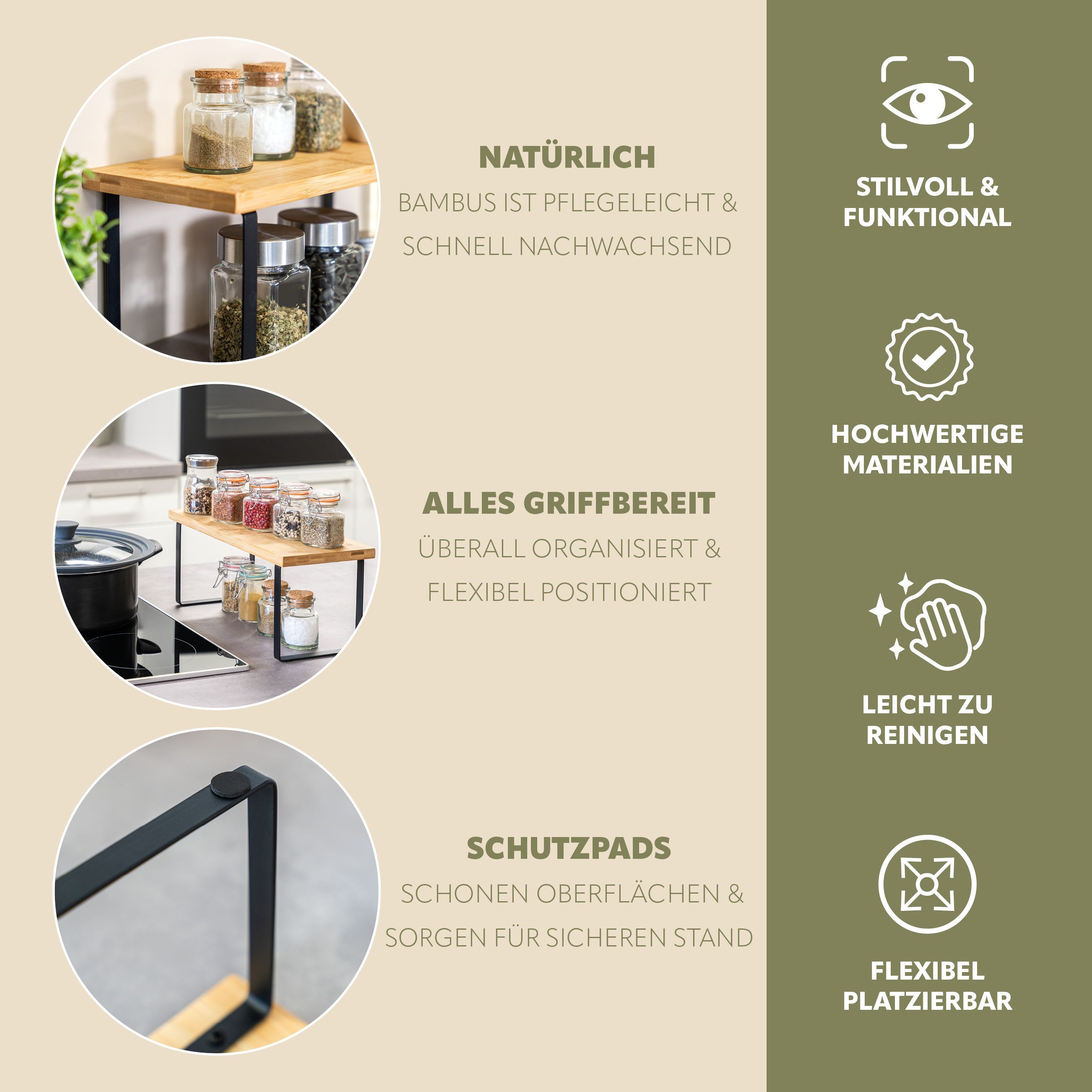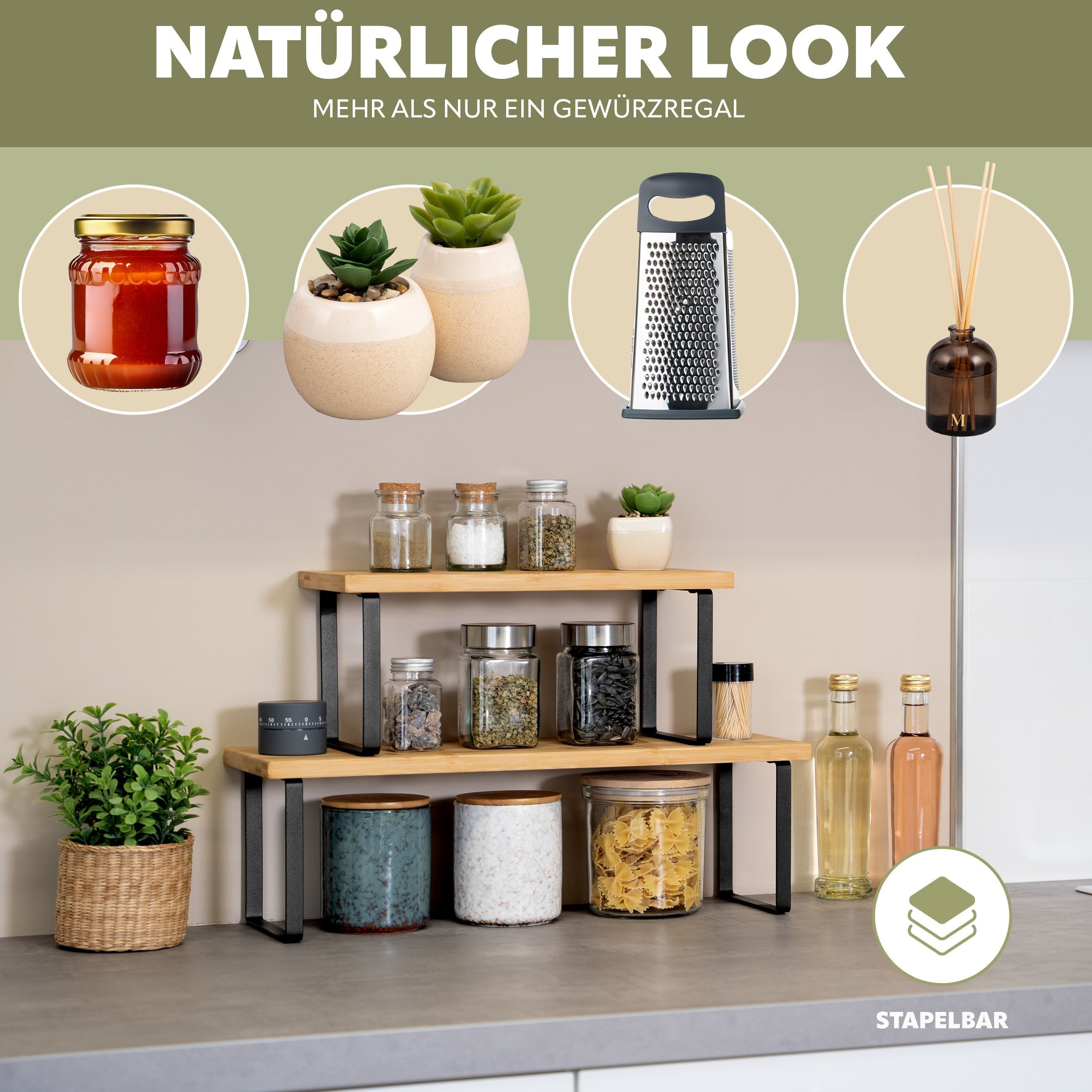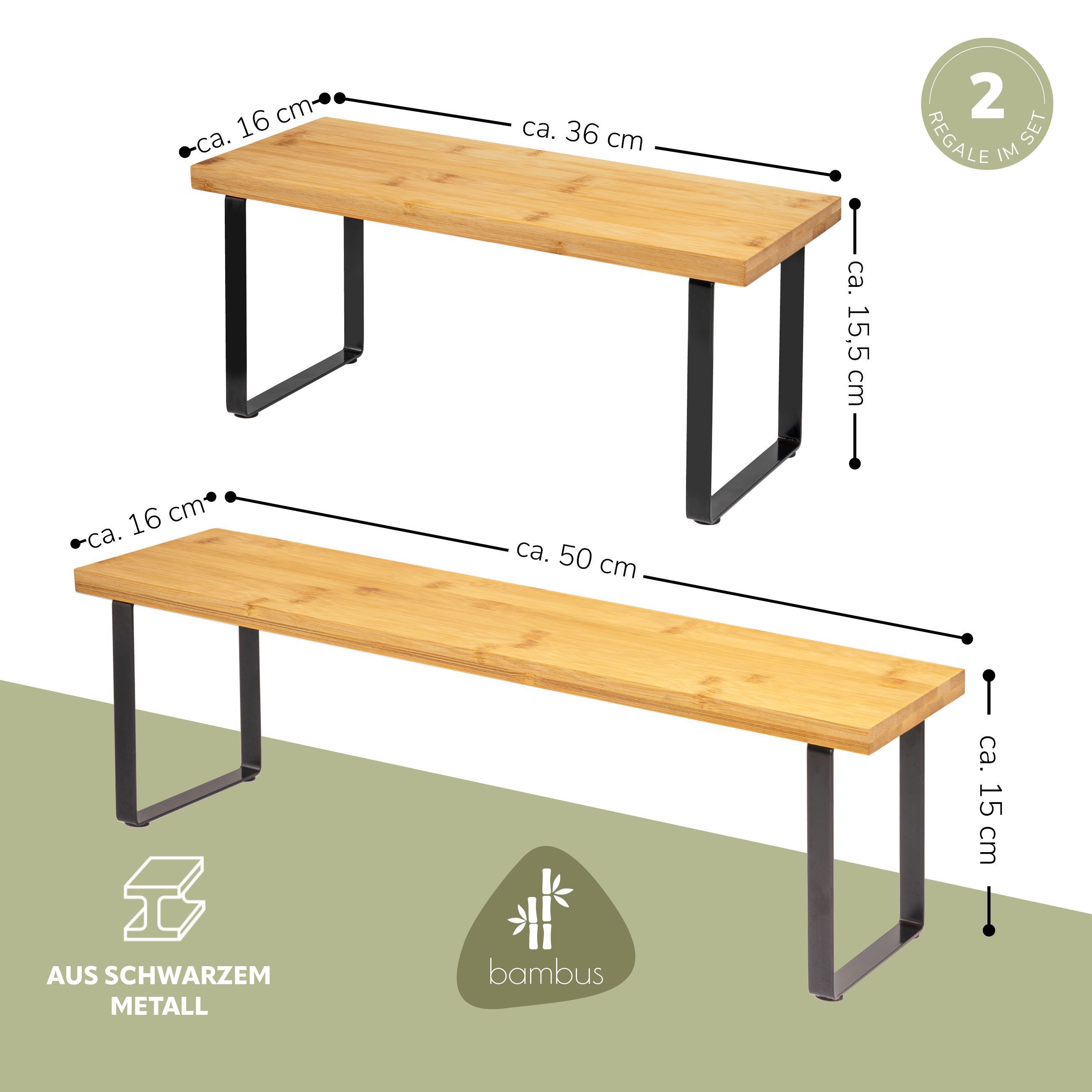 bremermann Gewürzregale 2er Set, Küchenregale aus Bambus und Metall, ca. 36 & 50 cm b
